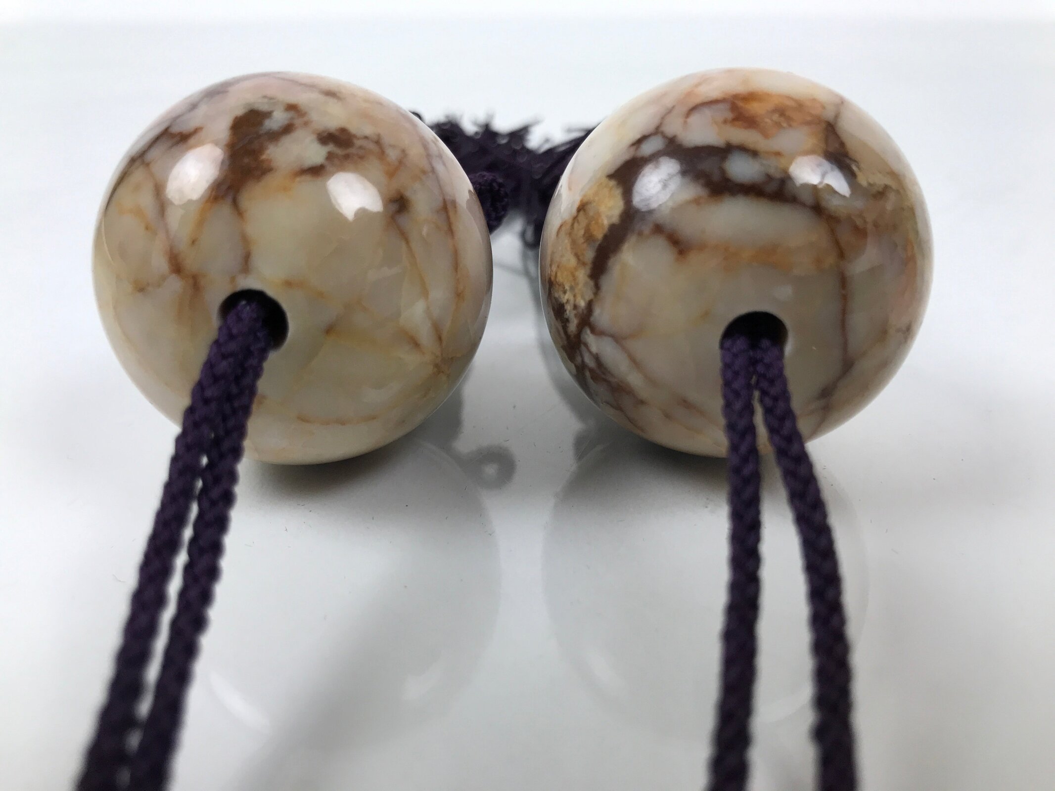 January 24, 2026Japanese Marble Stone Hanging Scroll Weights Fuchin Kakejiku Purple Tassel FC370