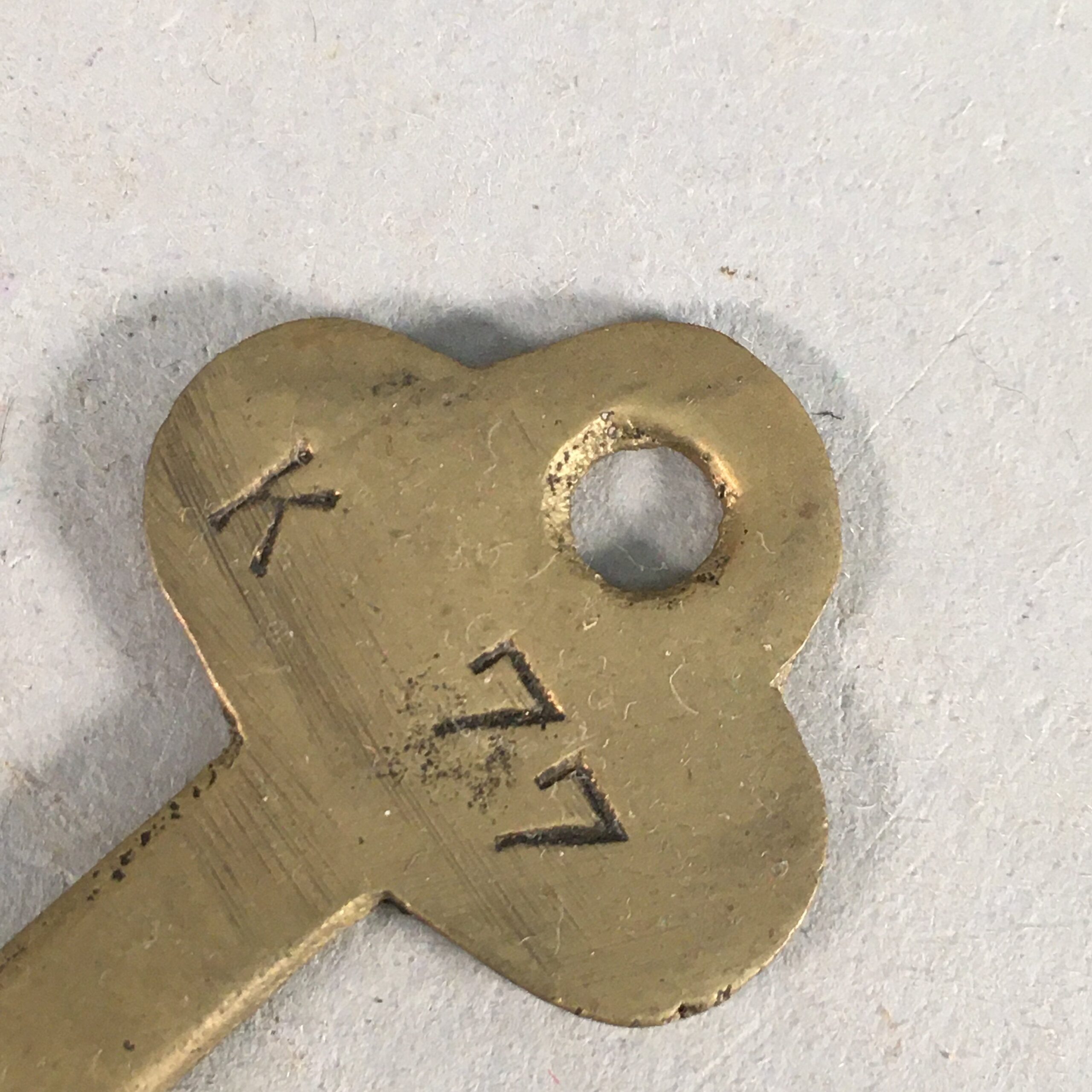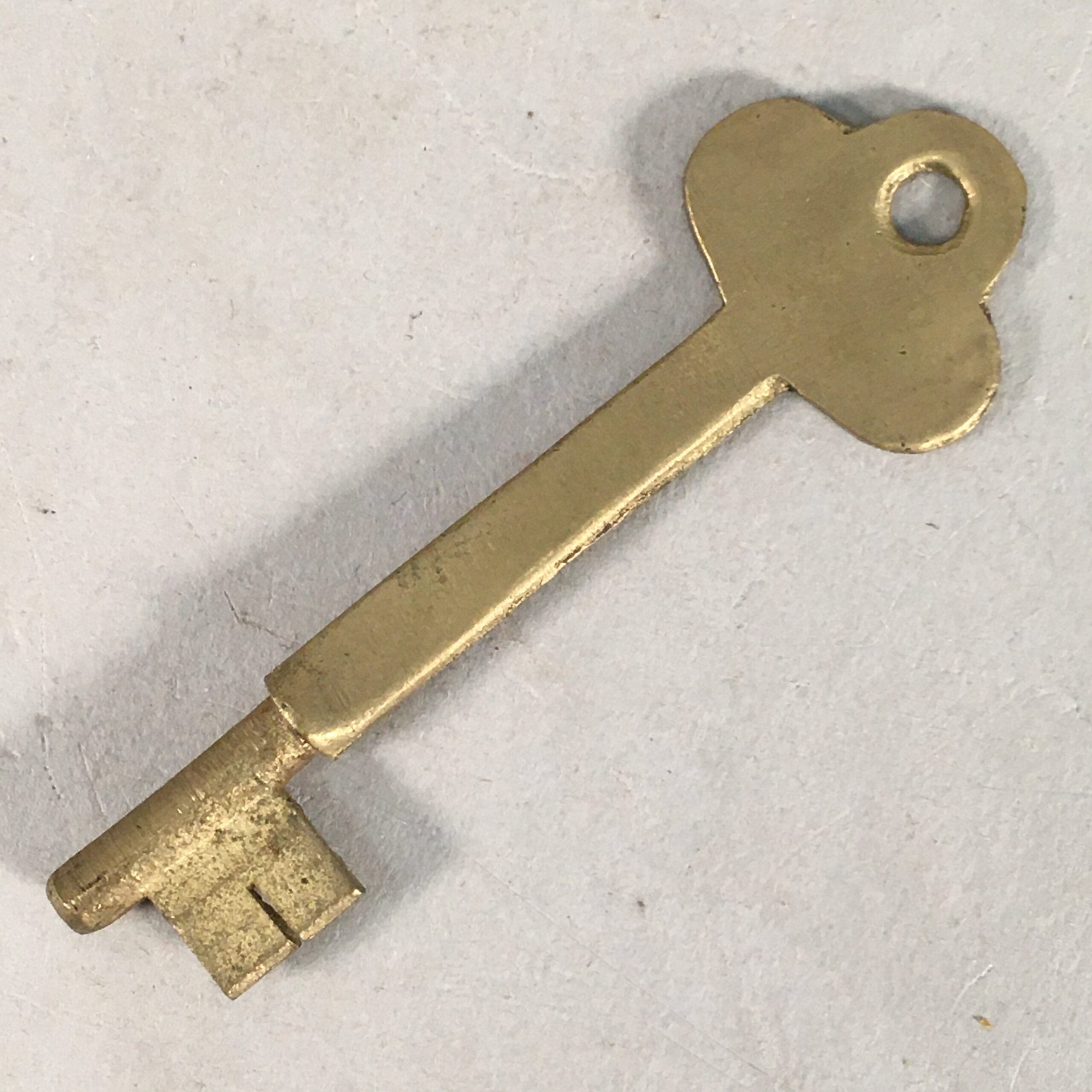 Japanese Metal Key Vtg C1930 Brass Gold 3 leaves JK23