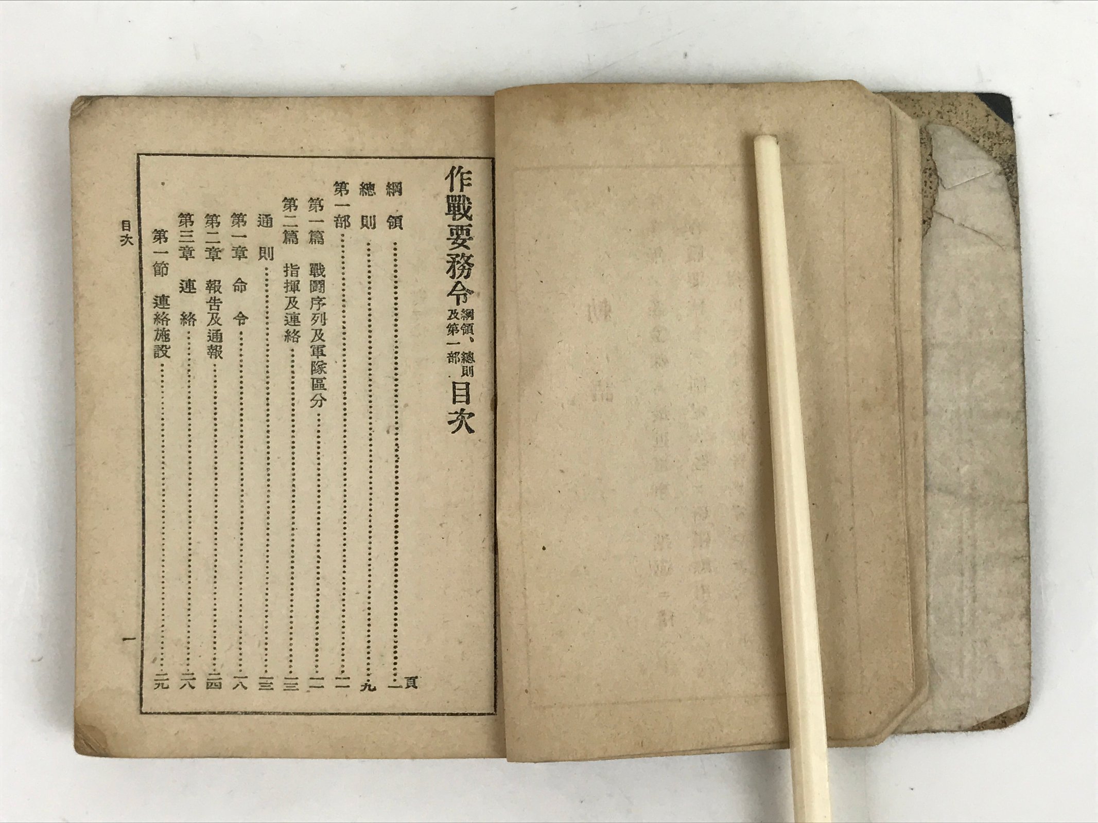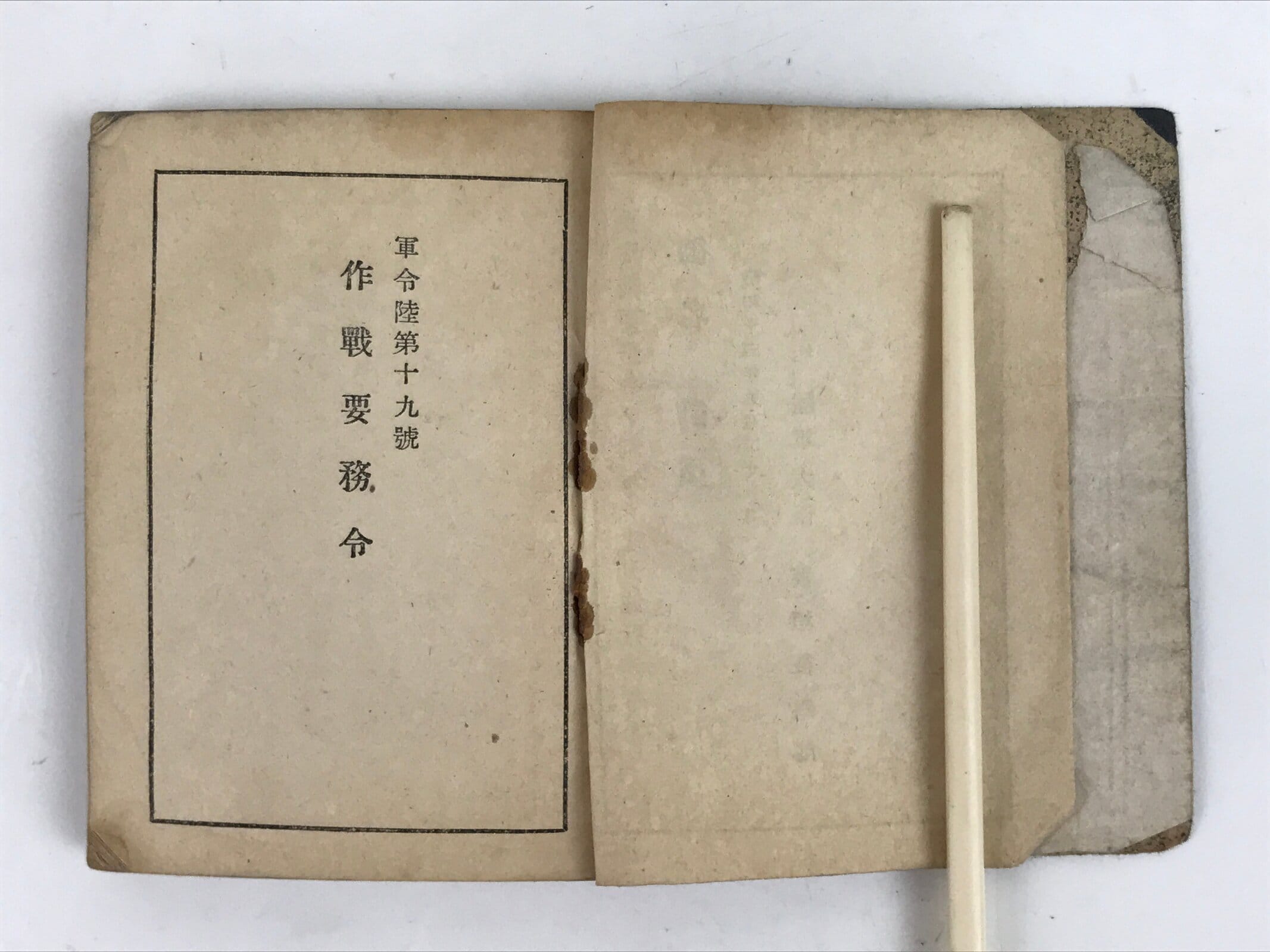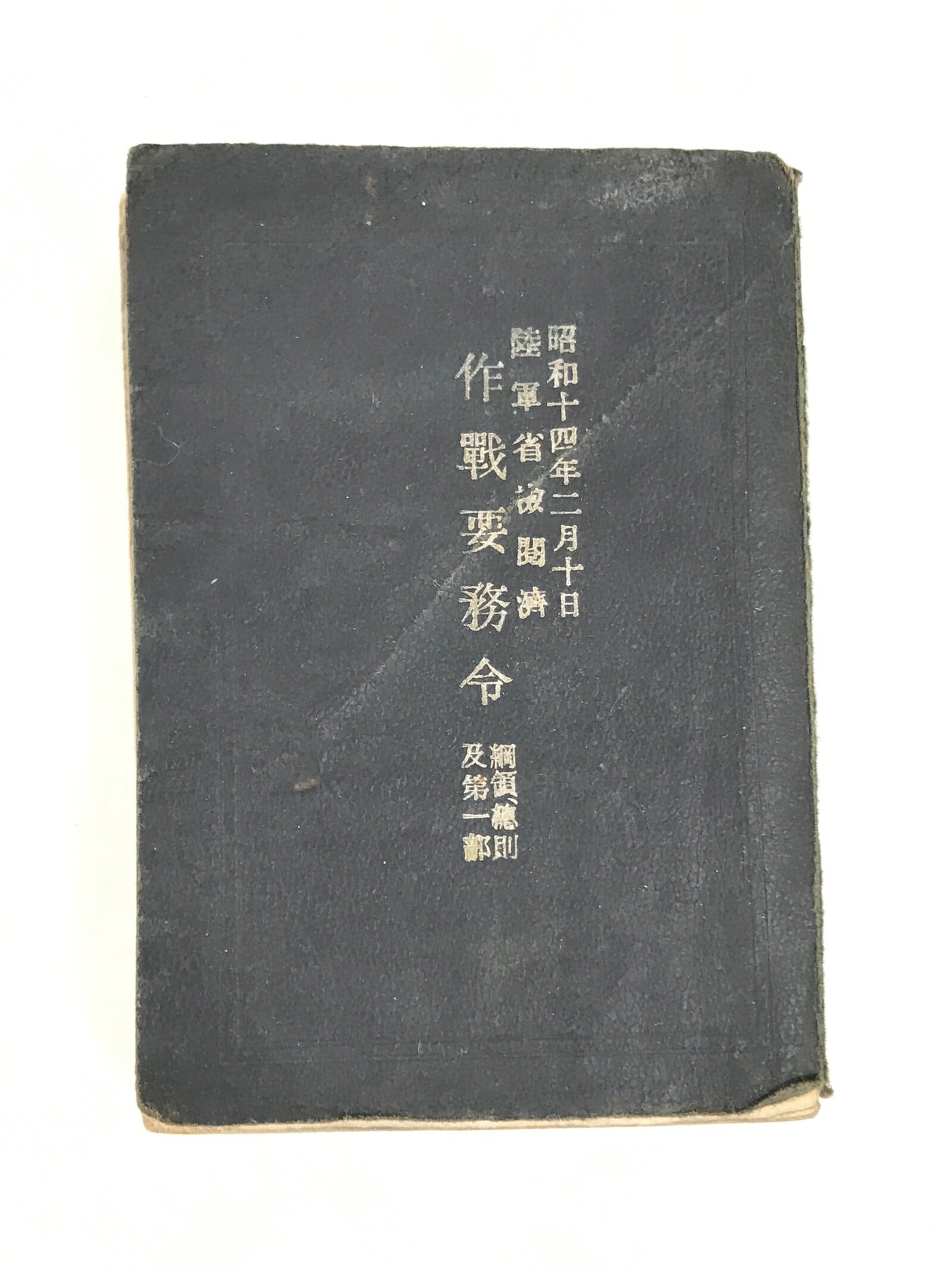 This vintage Imperial Japanese Army manual about war tactics and strategy has a compact size. It is made of paper and has a black cover. It is from 1939 (Showa 14).