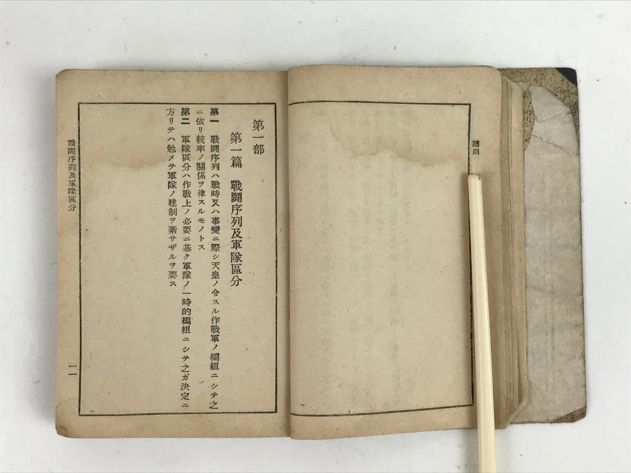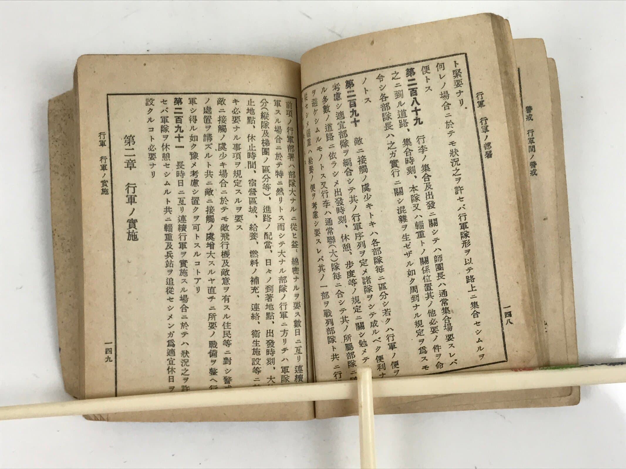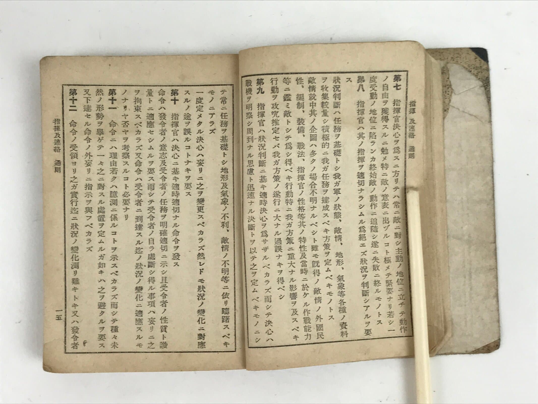 This vintage Imperial Japanese Army manual about war tactics and strategy has a compact size. It is made of paper and has a black cover. It is from 1939 (Showa 14).