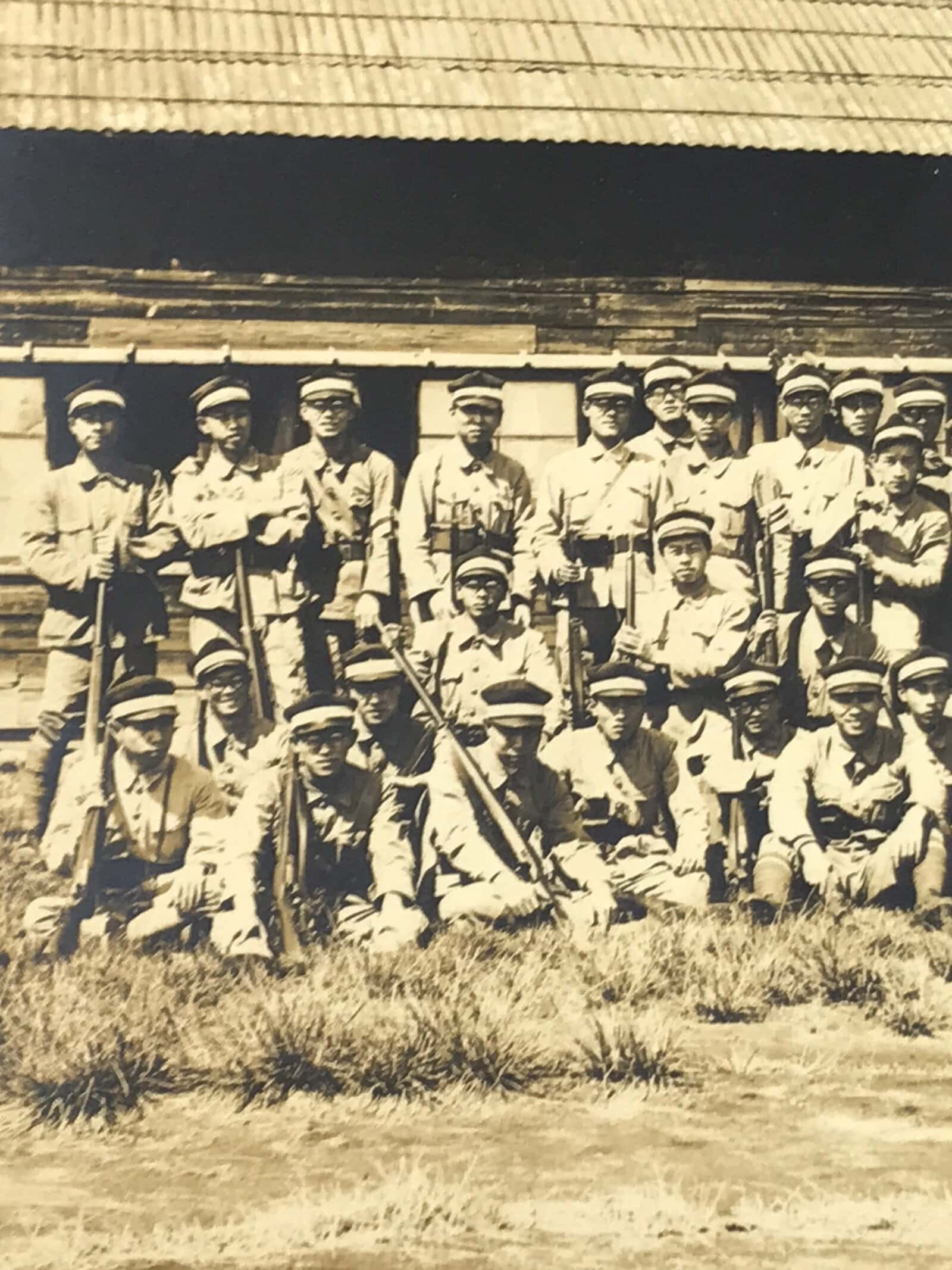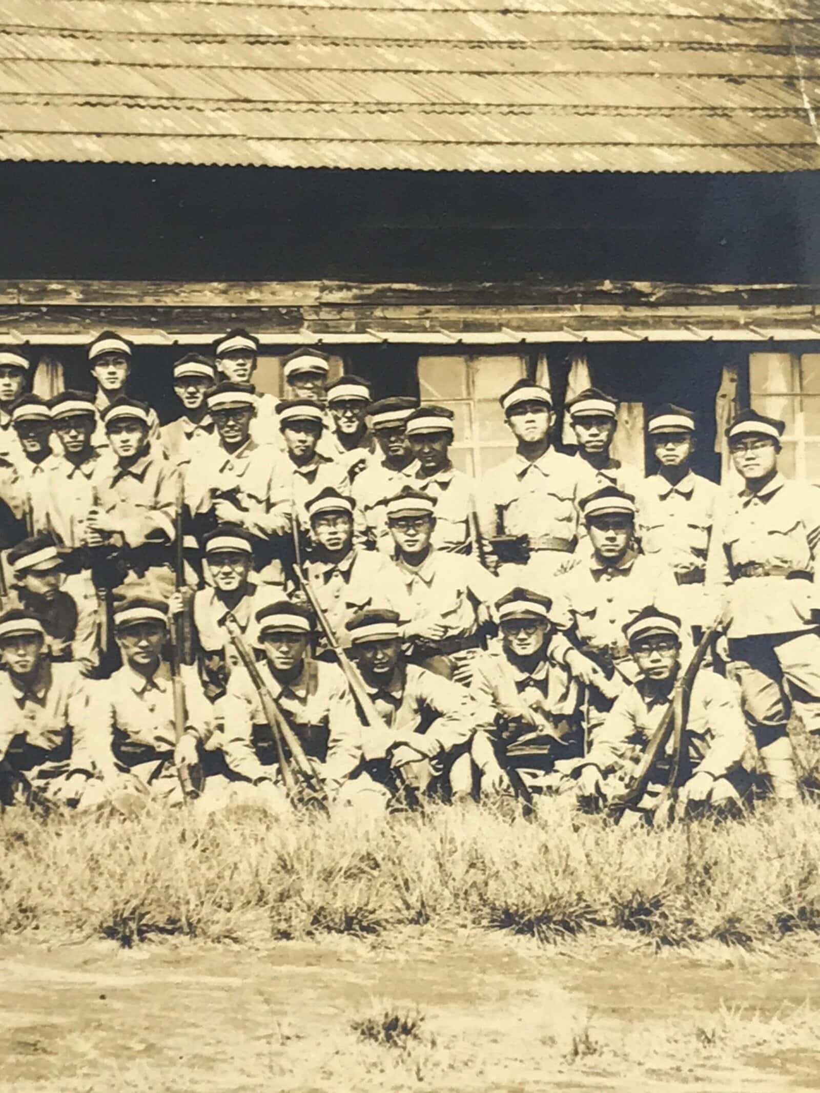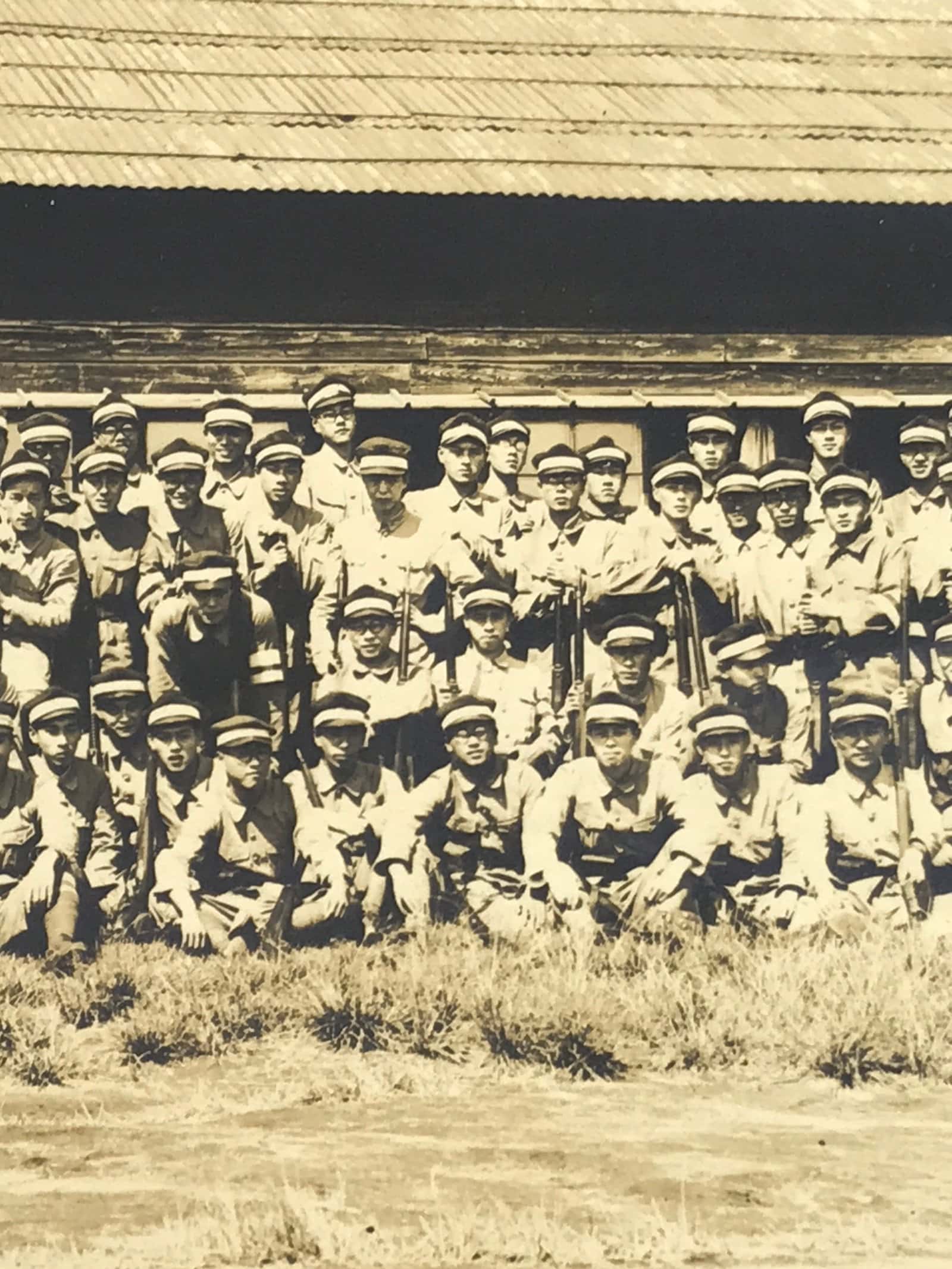This is an original vintage Showa sepia tone photograph of a group of students during military education. In the lead-up to WWII, the Japanese government added military training/drills/fieldwork/volunteering/patriotic messaging to schools. It’s often around this time that teen students would wear military-style uniforms instead of the typical black jacket uniform. Upon graduation, they were often expected or required to enlist.