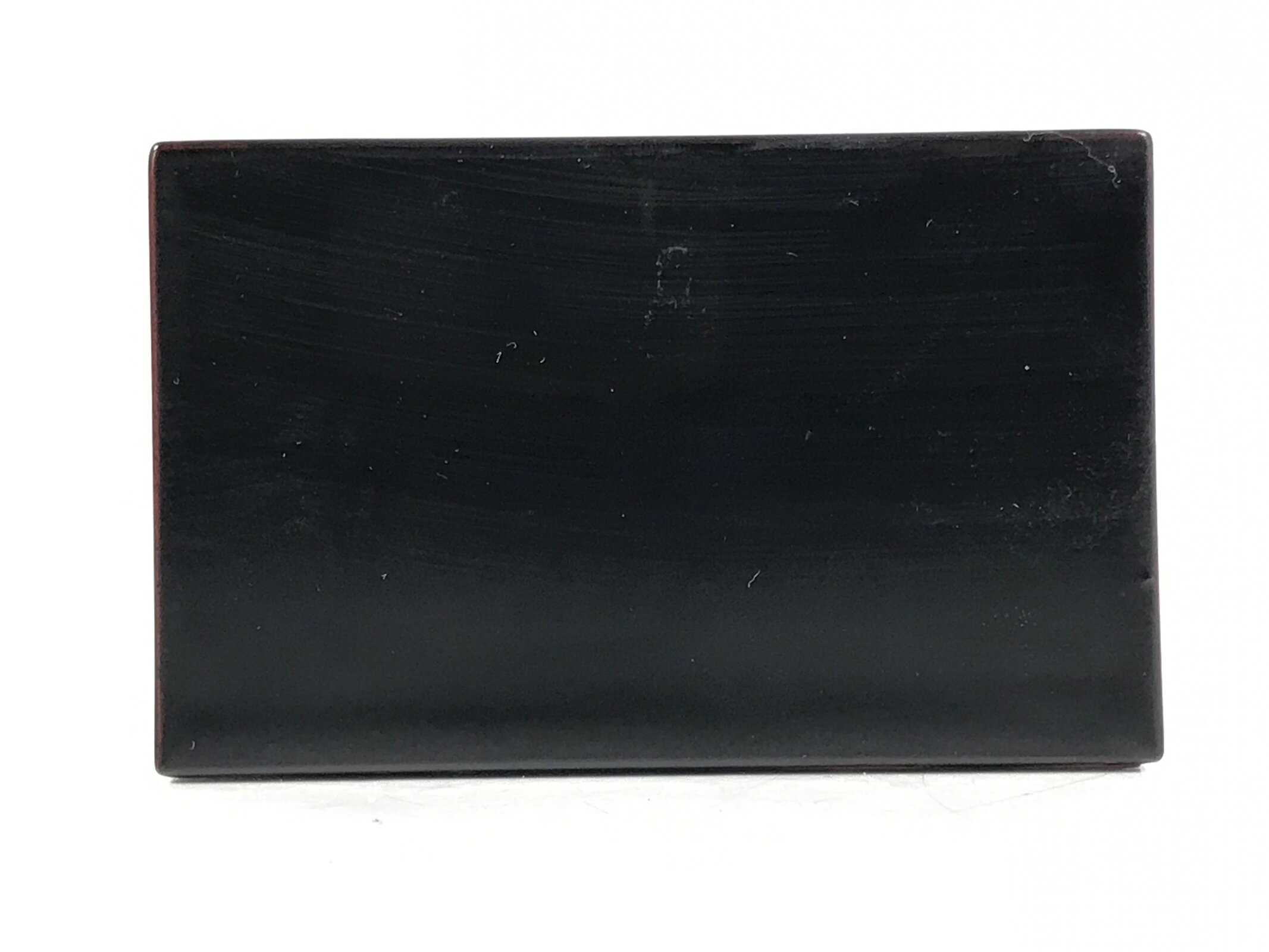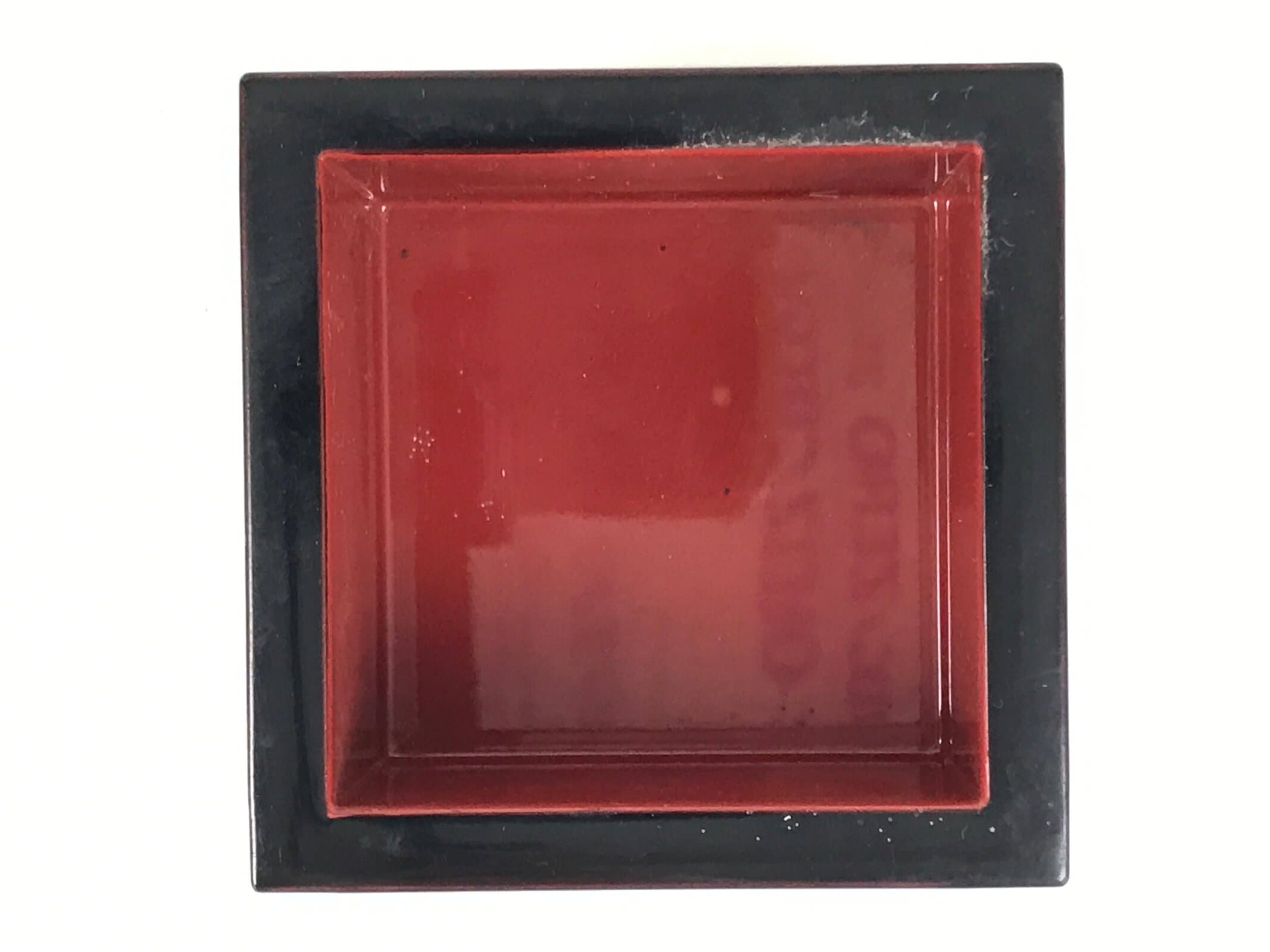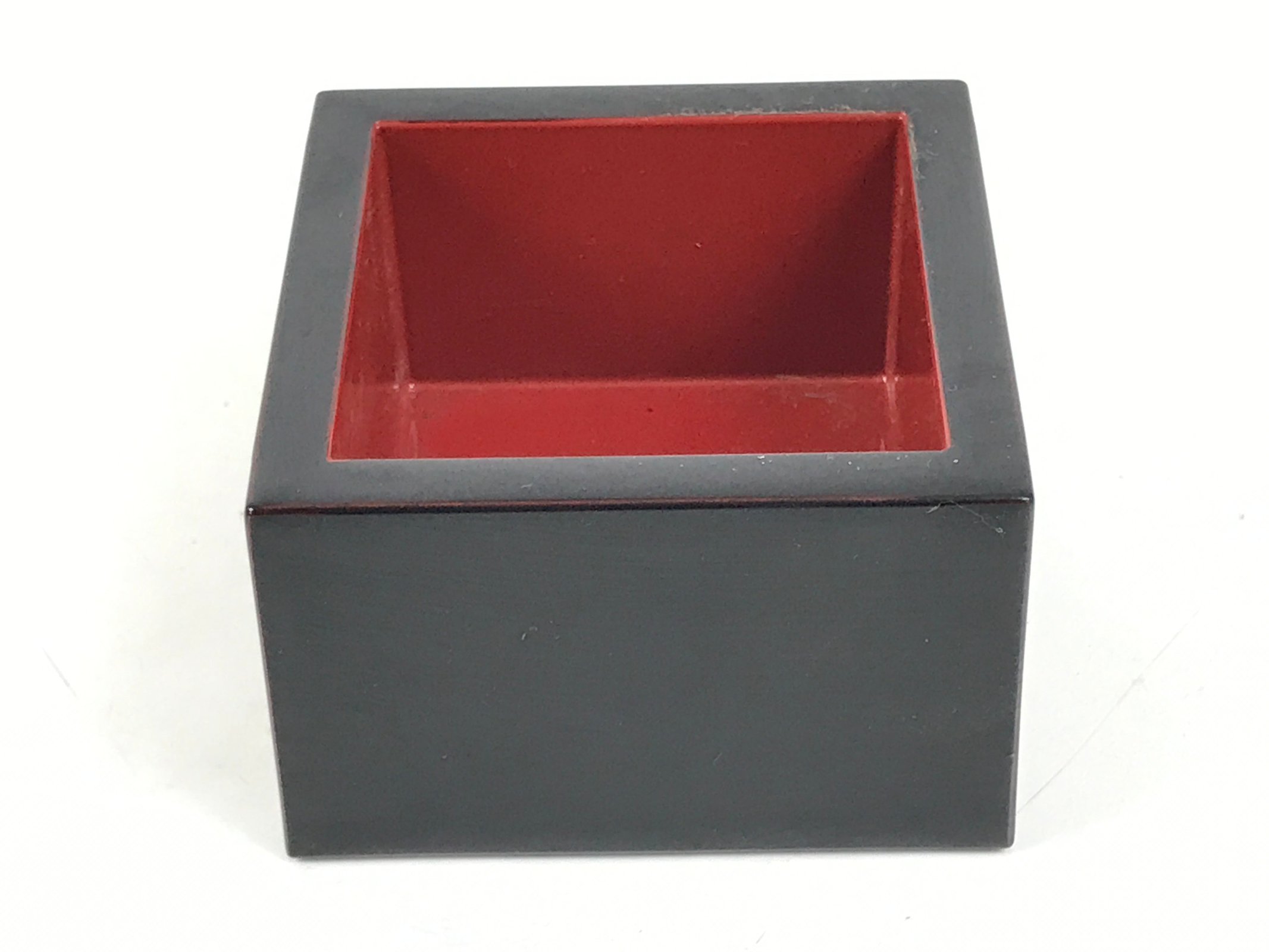 This is a vintage Japanese miniature traditional Japanese measuring cup, masu. It is black outside and red inside. It can be used for drinking sake.