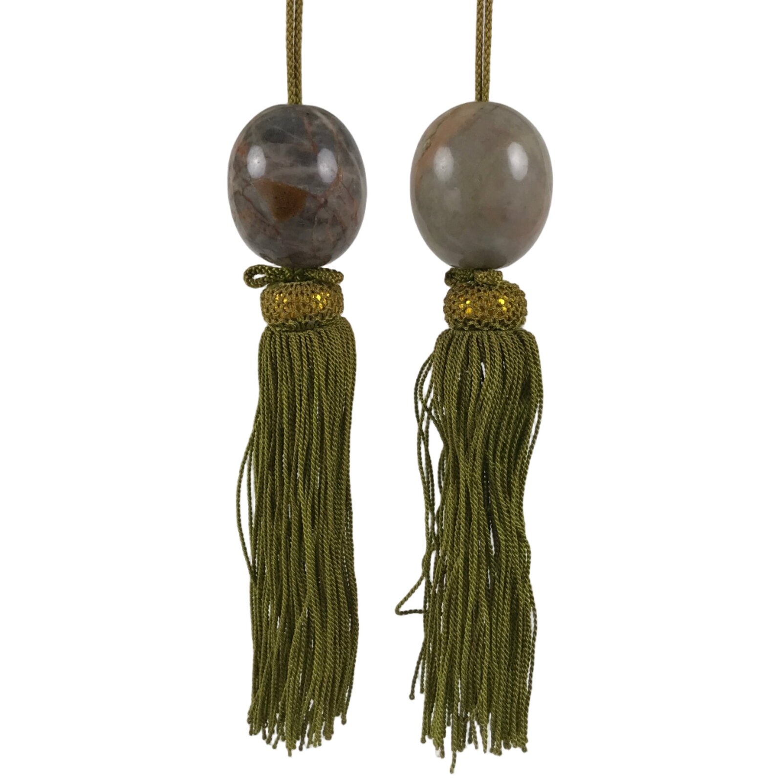 Japanese Quartz Stone Hanging Scroll Weights Fuchin Kakejiku Brown Tassel FC372