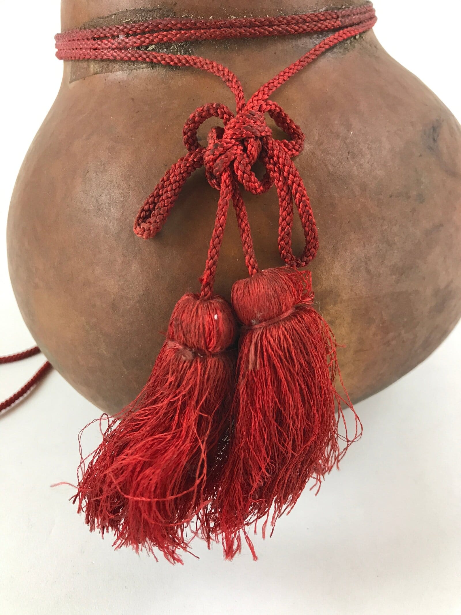 - Good condition considering its age. Wear and tear due to age. Old adhesive around widest neck of gourd holding cord on. Please see the photos.