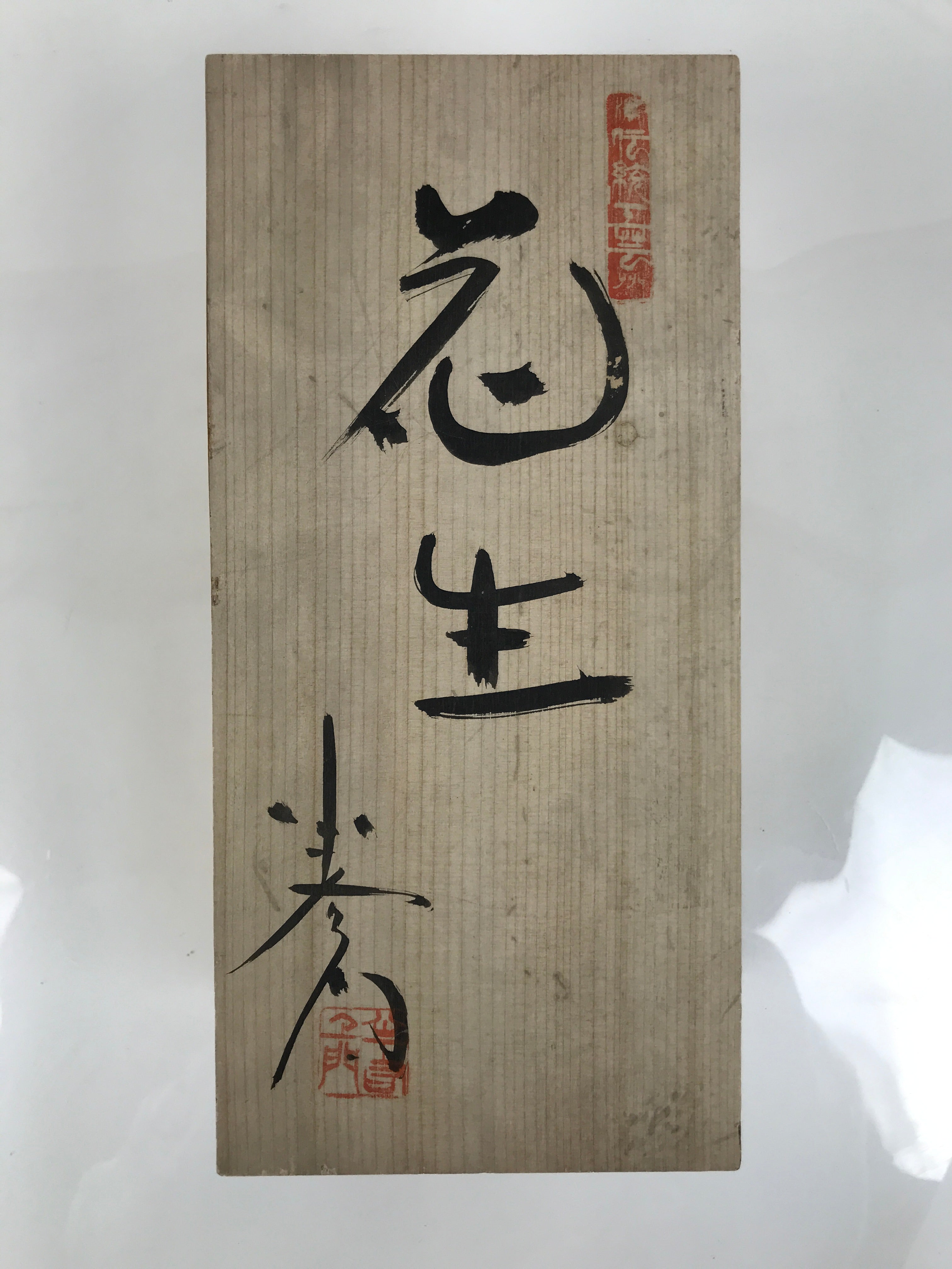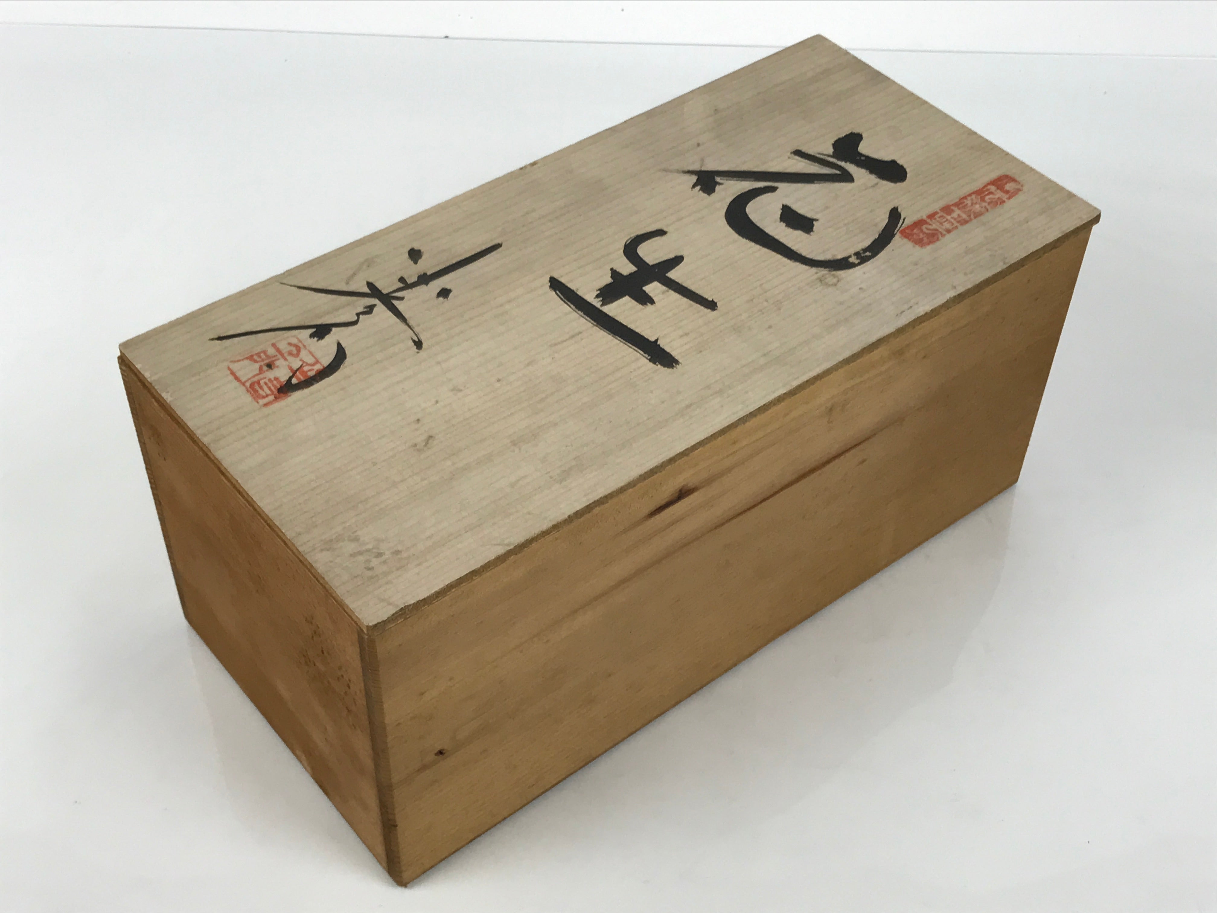 - Some kanji on the box: 伝統工芸 dento kogei (traditional craft), 花入 hanaire (flower vase), 半右衛門 hanemon (potter’s name)