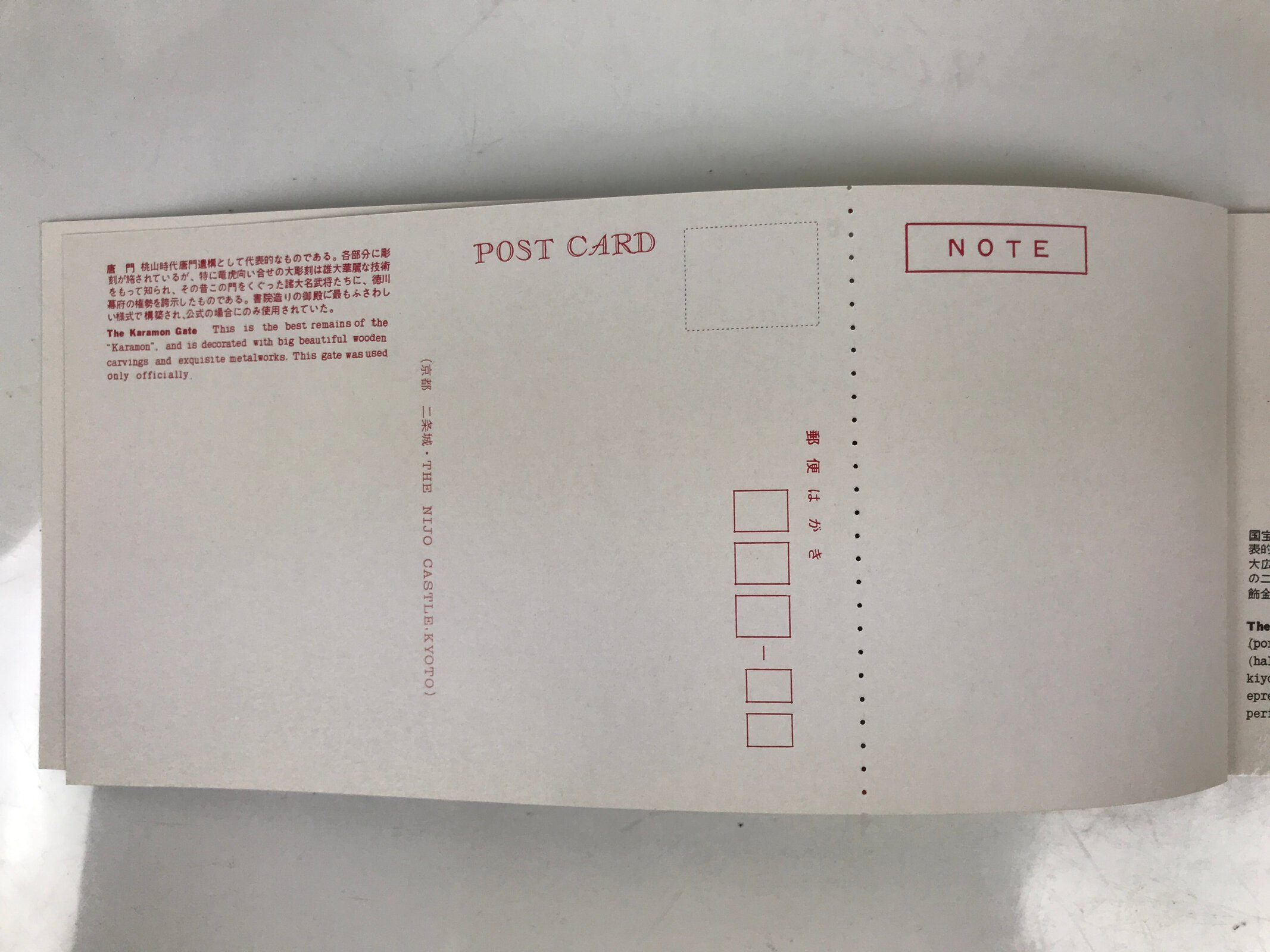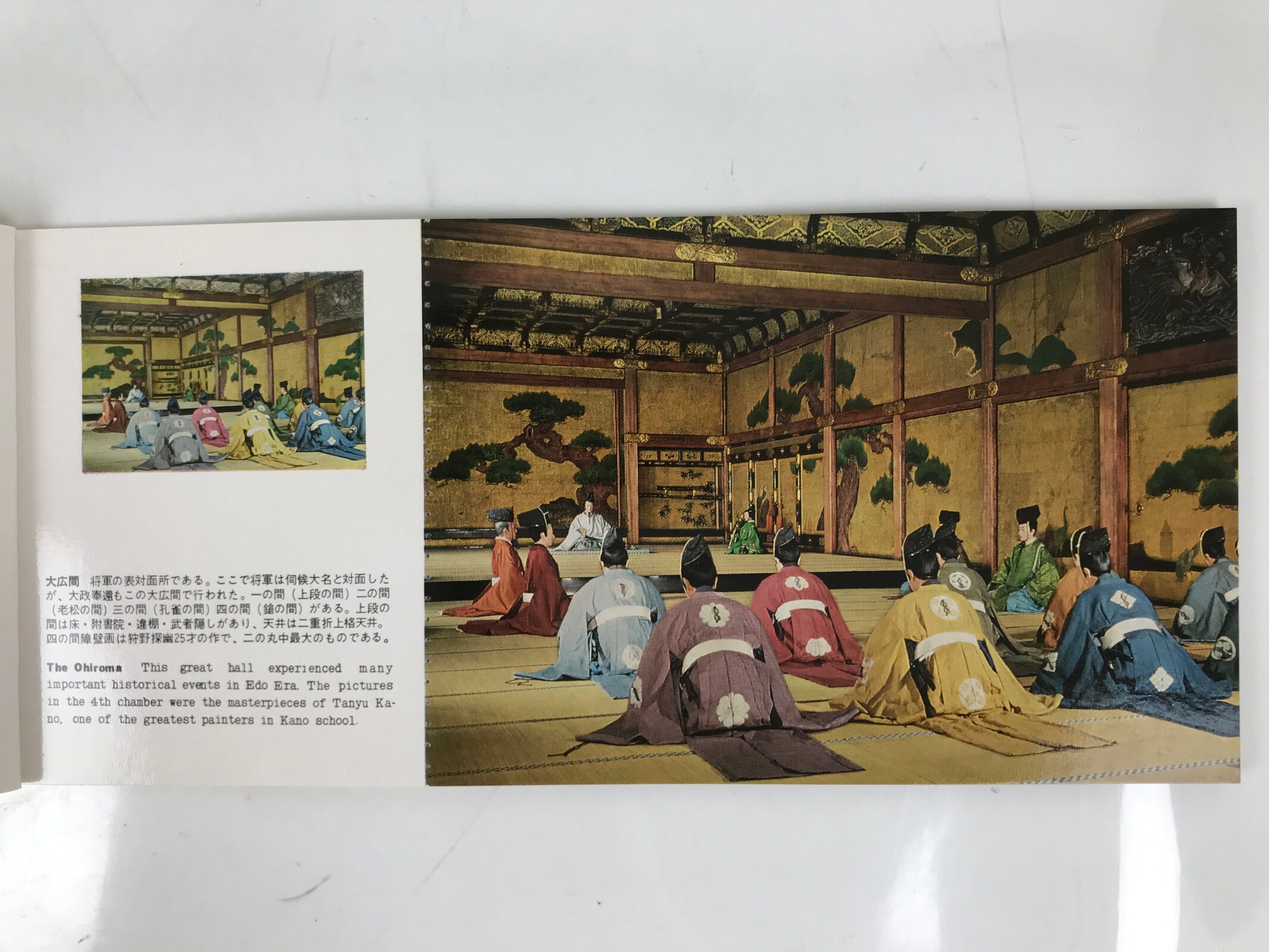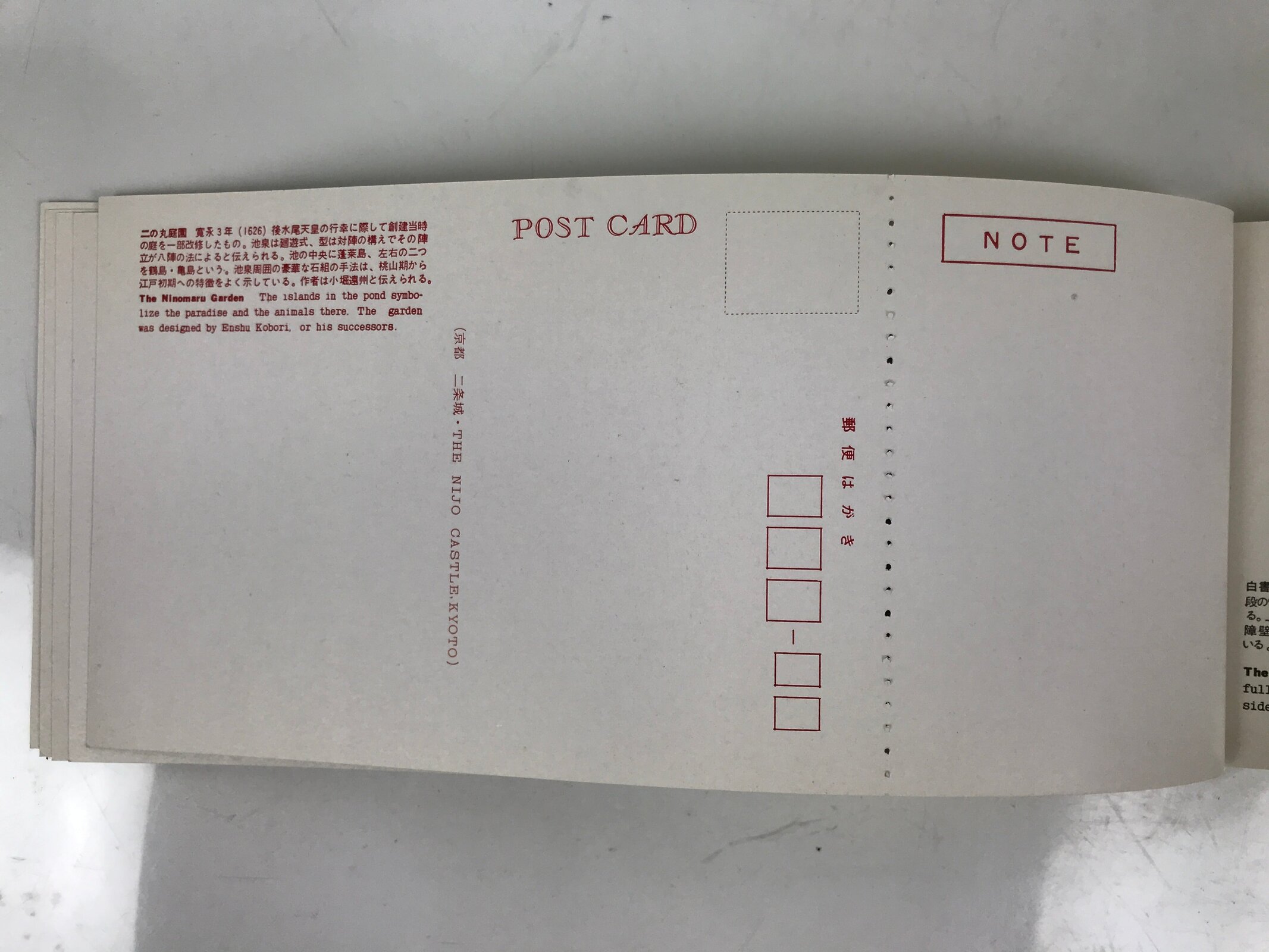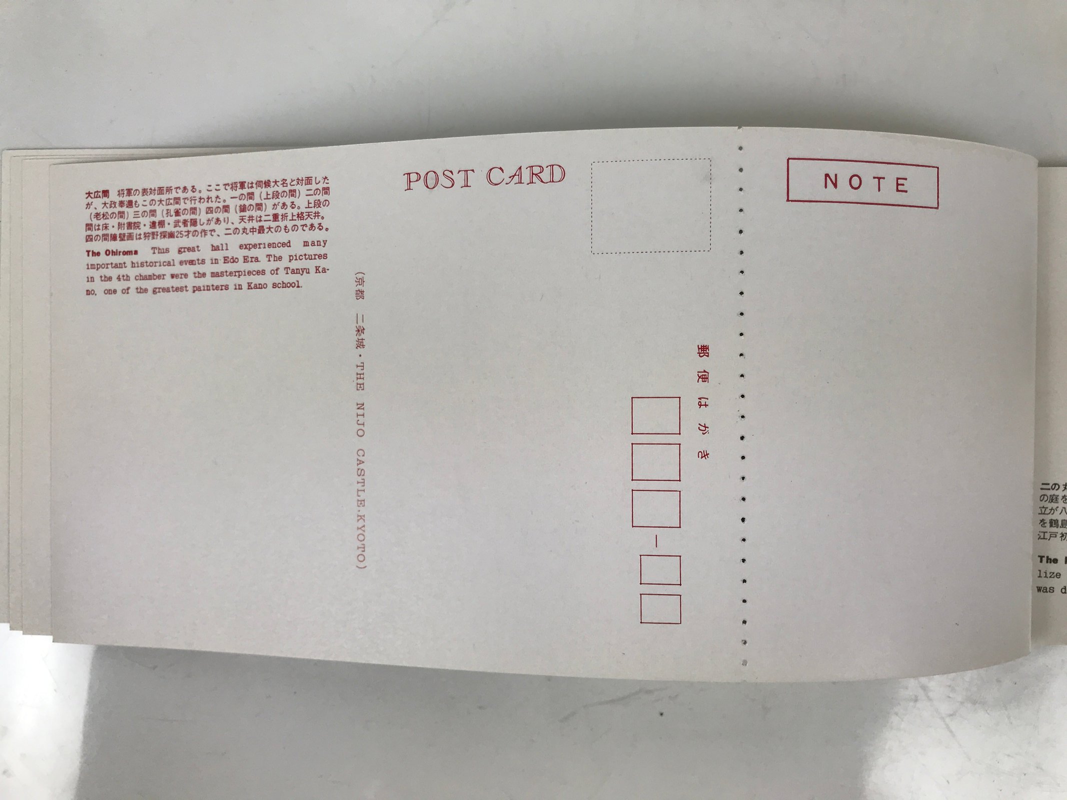 This vintage Japanese postcard book features 7 full-color postcards of the Nijo Castle (Kyoto). The backs of each card provide explanations in Japanese and English.