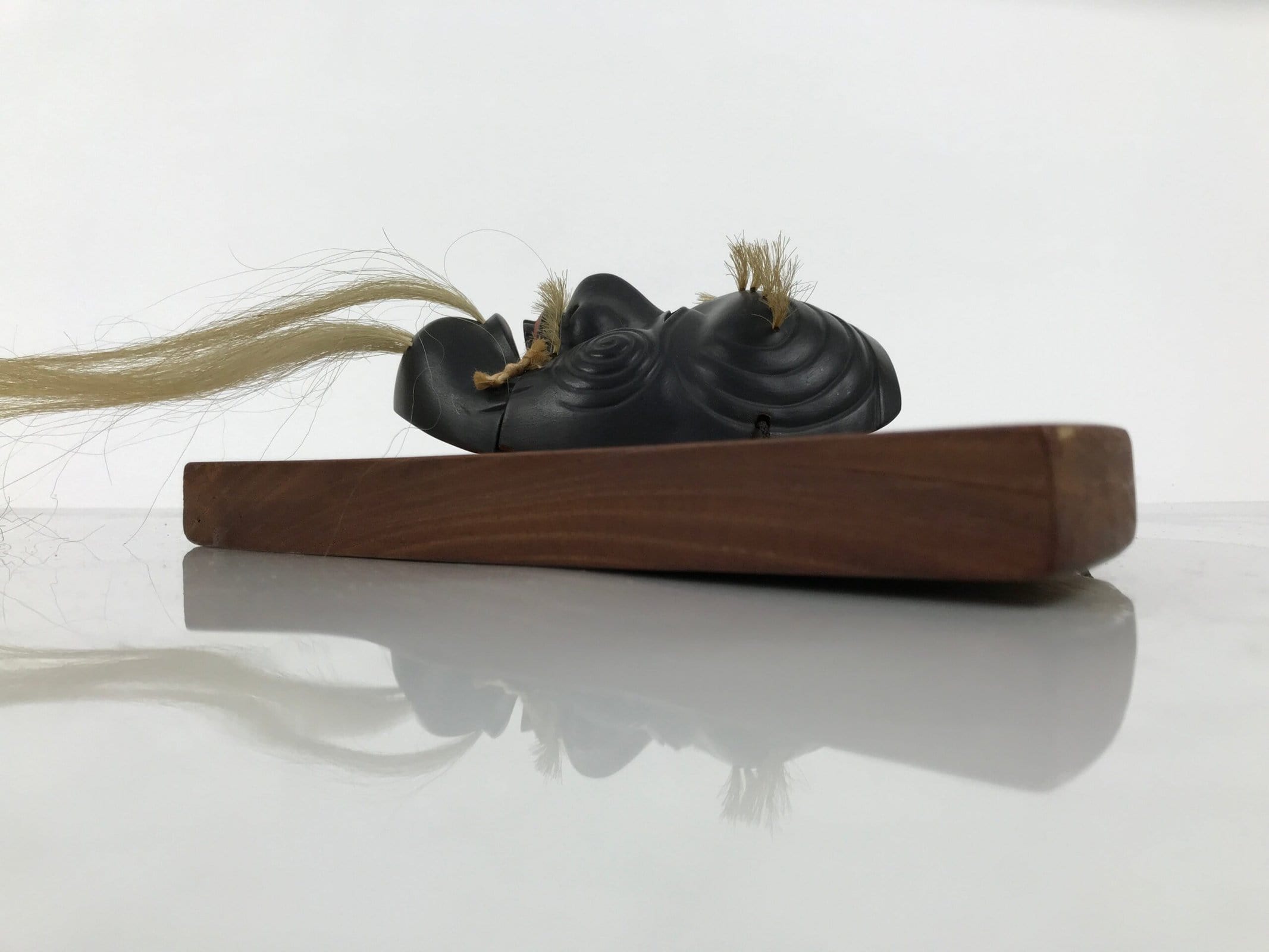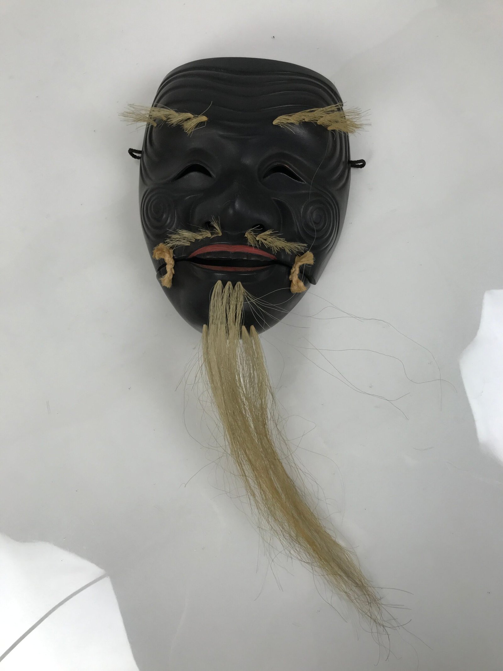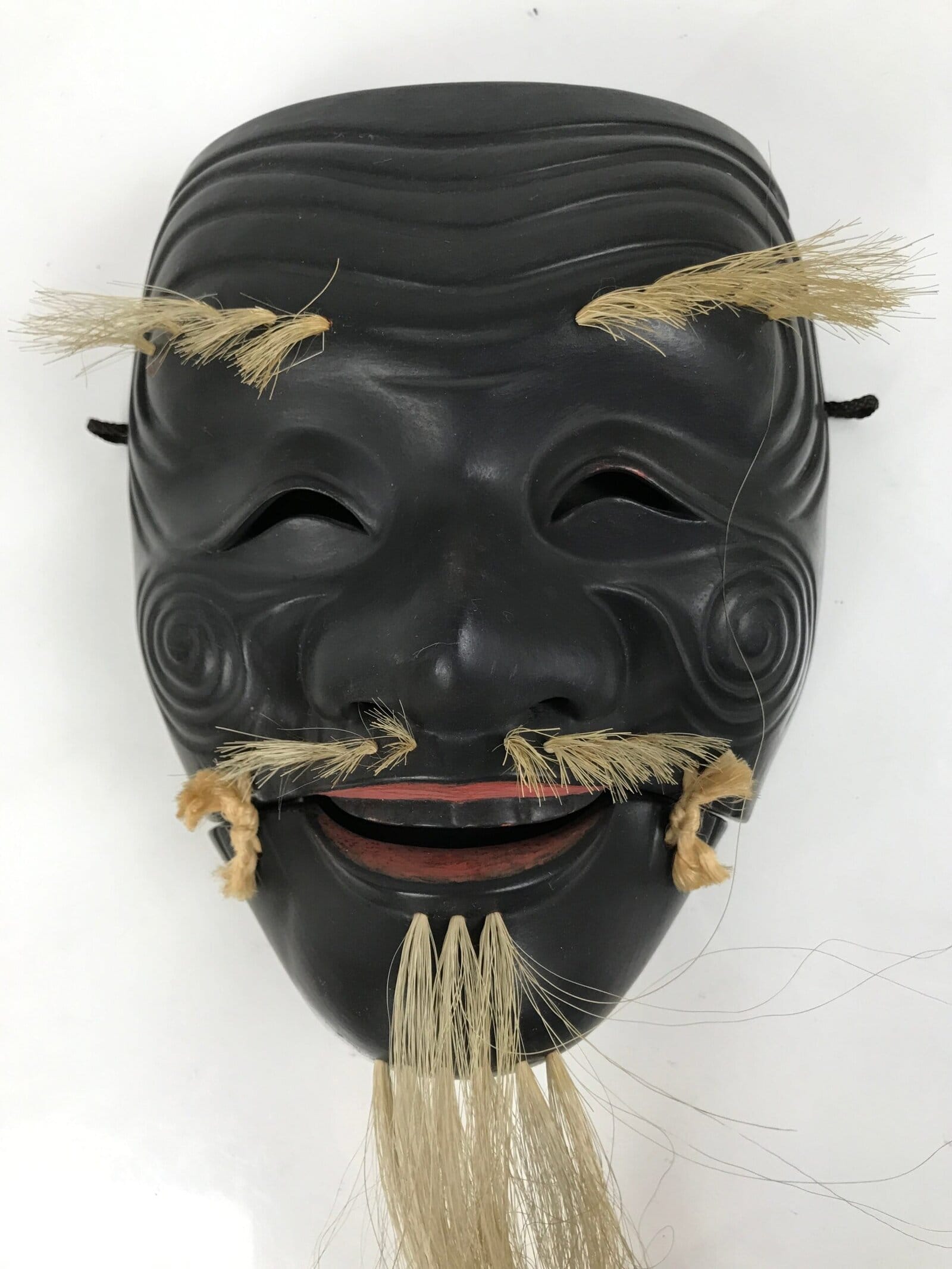 February 24, 2026Japanese Wood Noh Mask Okina Old Man Vtg Nohmen Kokushiki-Jo Black Display OM107