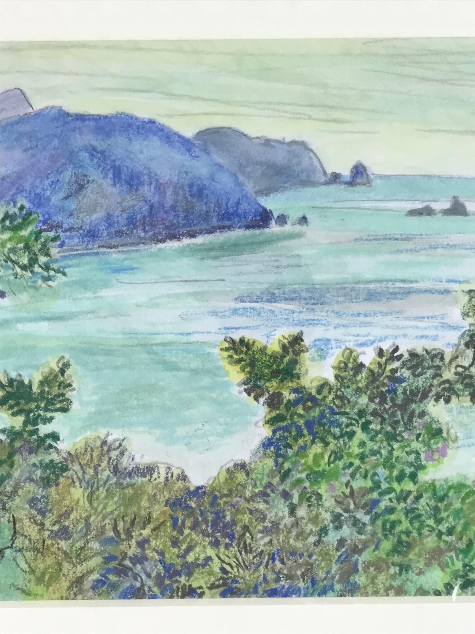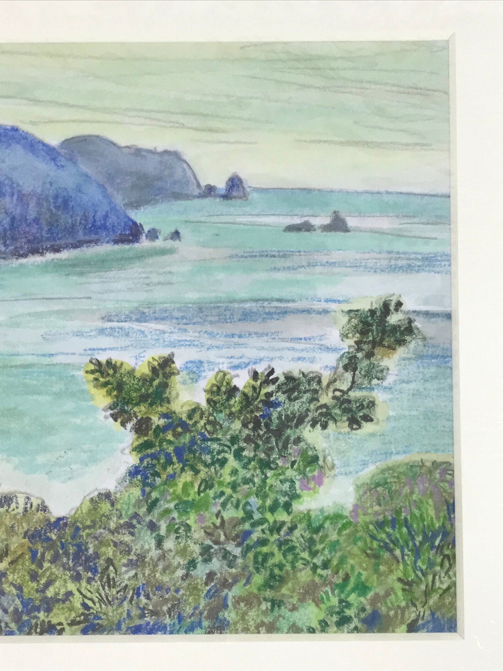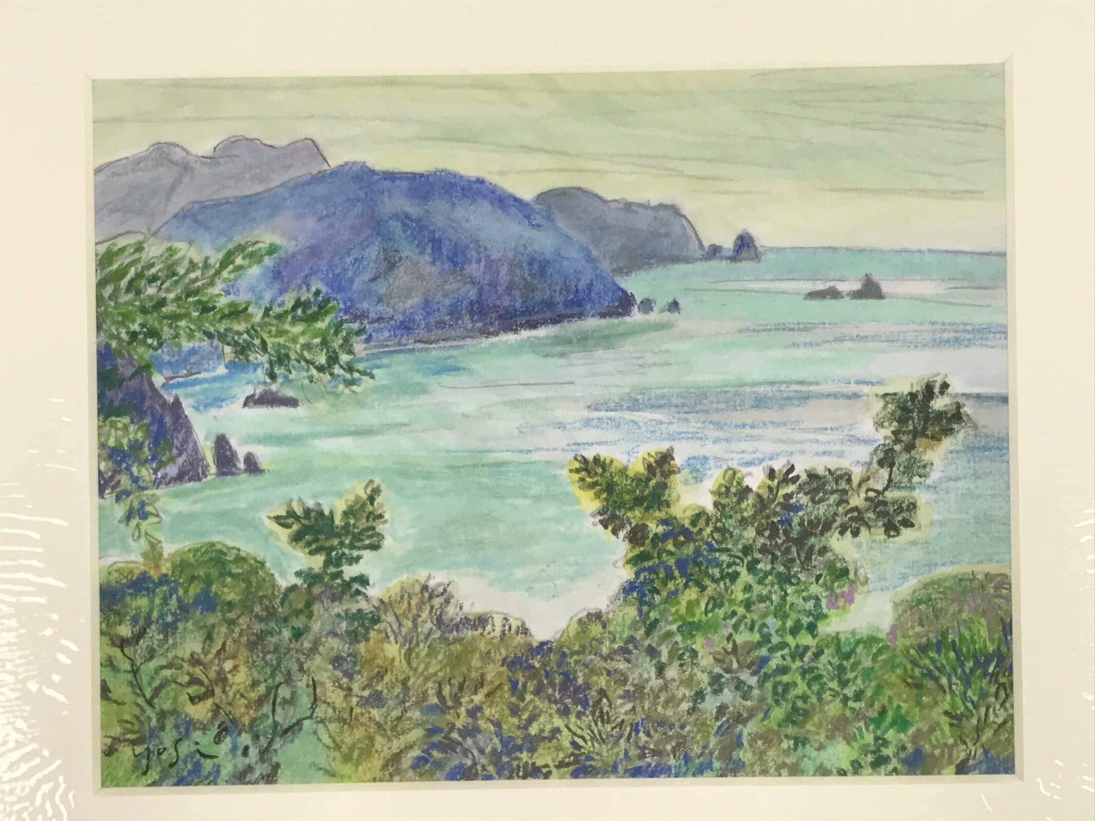 January 23, 2026Japanese Lush Ocean Coastline Pastel Drawing Art Signed Yoshihiro Hagino FL337