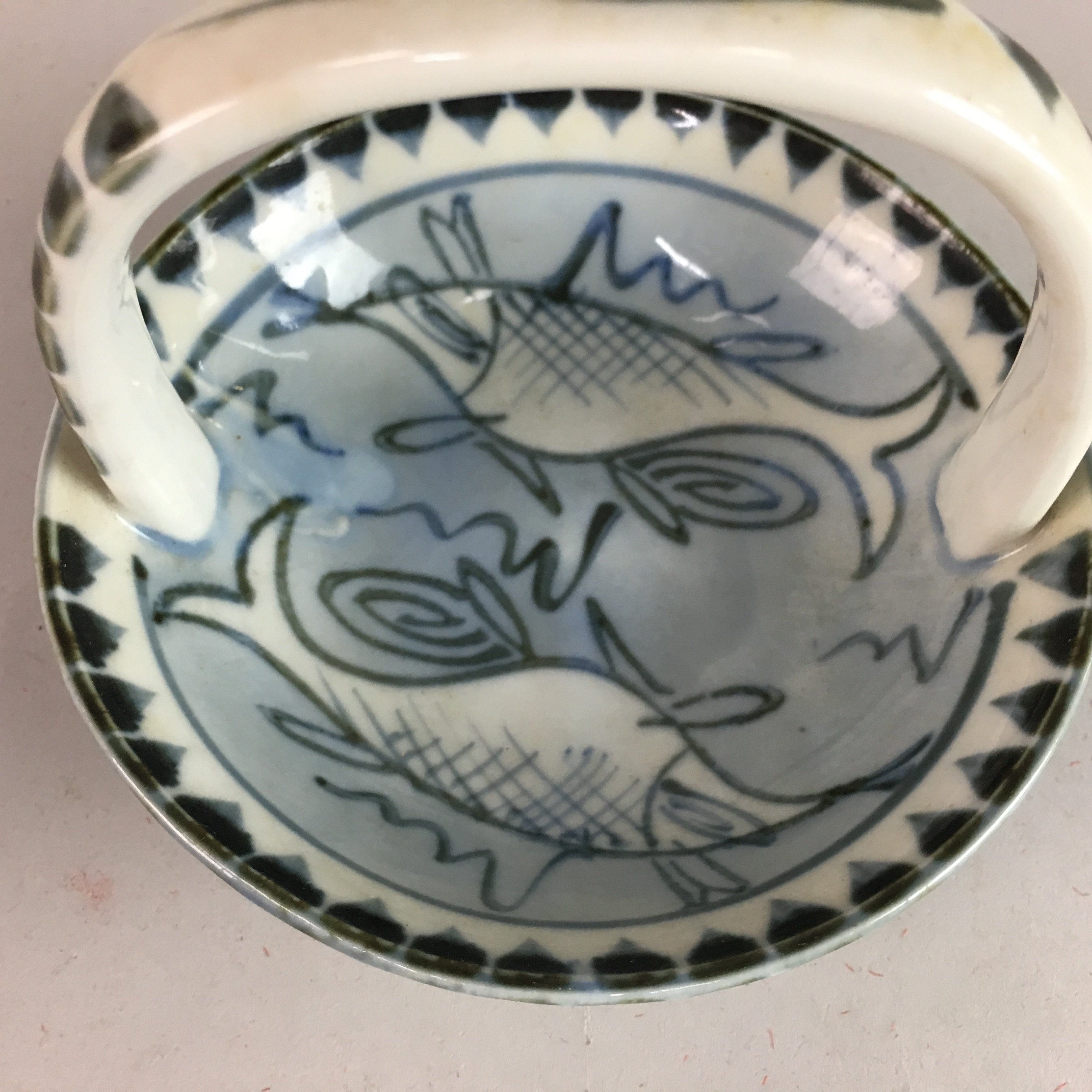 January 17, 2026Japanese Porcelain Handled Small Bowl Vtg Fish Design Tachikichi Sometsuke PT585