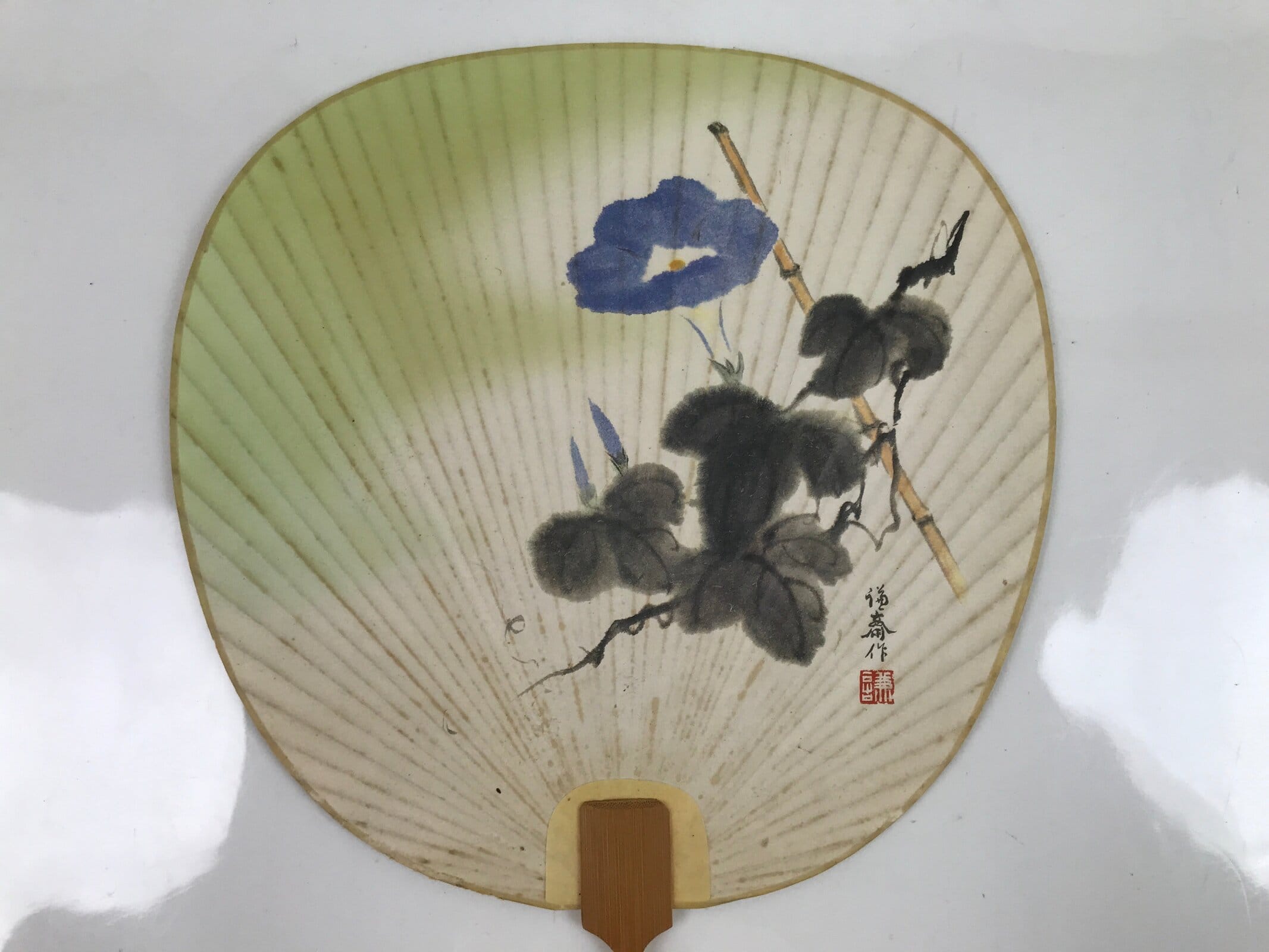 January 23, 2026Japanese Paper Fan Uchiwa Vtg Wooden Handle Morning Glories Asagao Blue U170