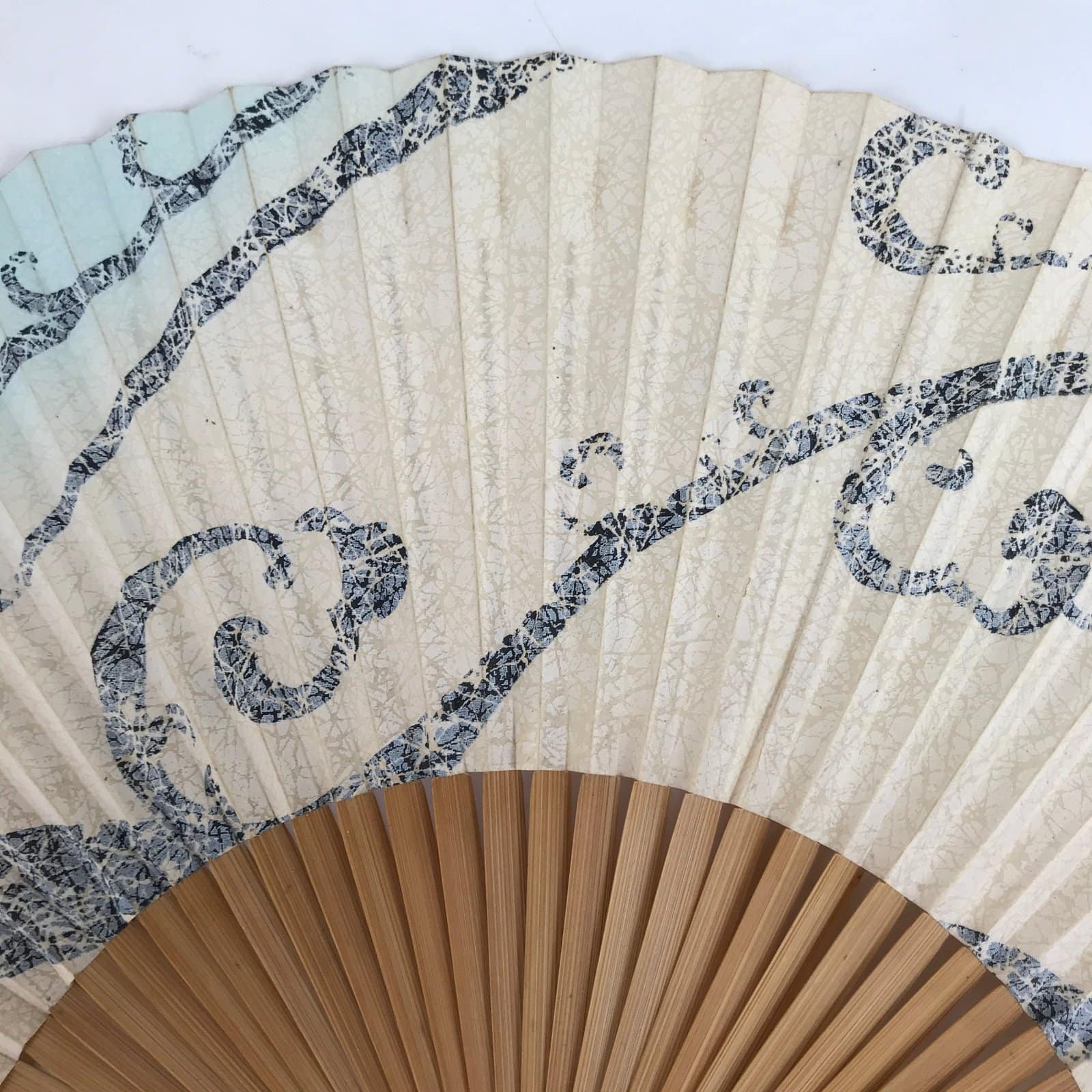 January 23, 2026Japanese Paper Folding Fan Sensu Vtg Bamboo Frame Blue Vines Ogaki Bank 4D847