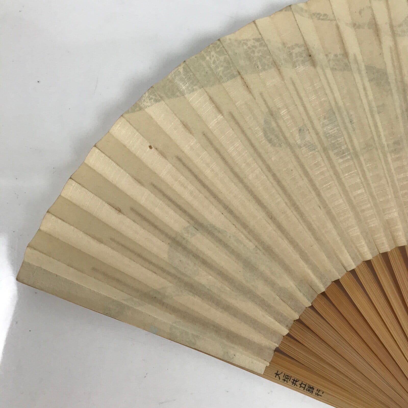 Japanese Paper Folding Fan Sensu Vtg Bamboo Frame Pottery Vases Yanmar 4D846