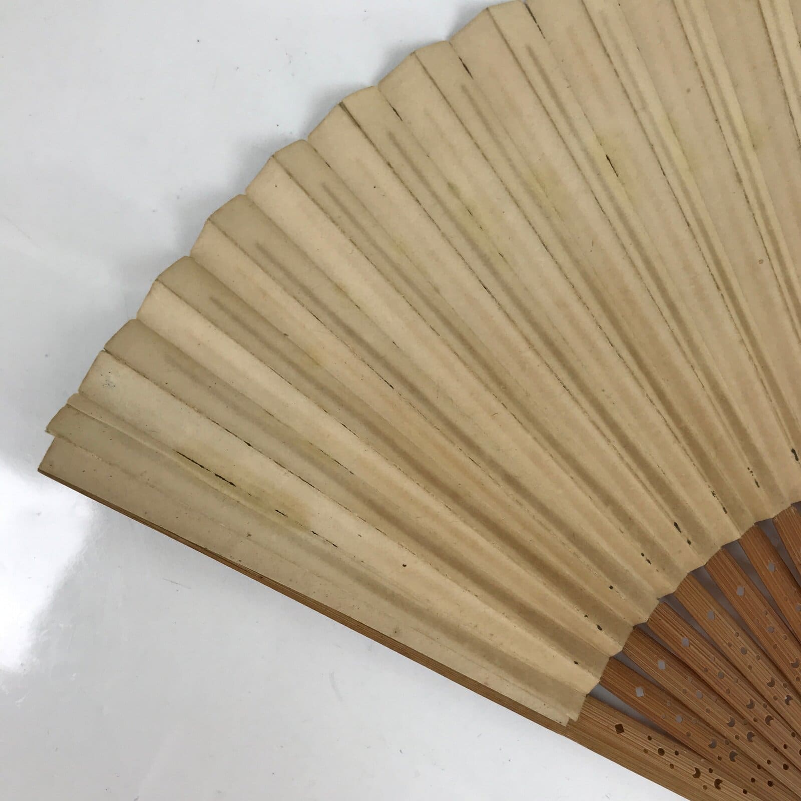 Japanese Paper Folding Fan Sensu Vtg Bamboo Frame Small Simple Blank White 4D850