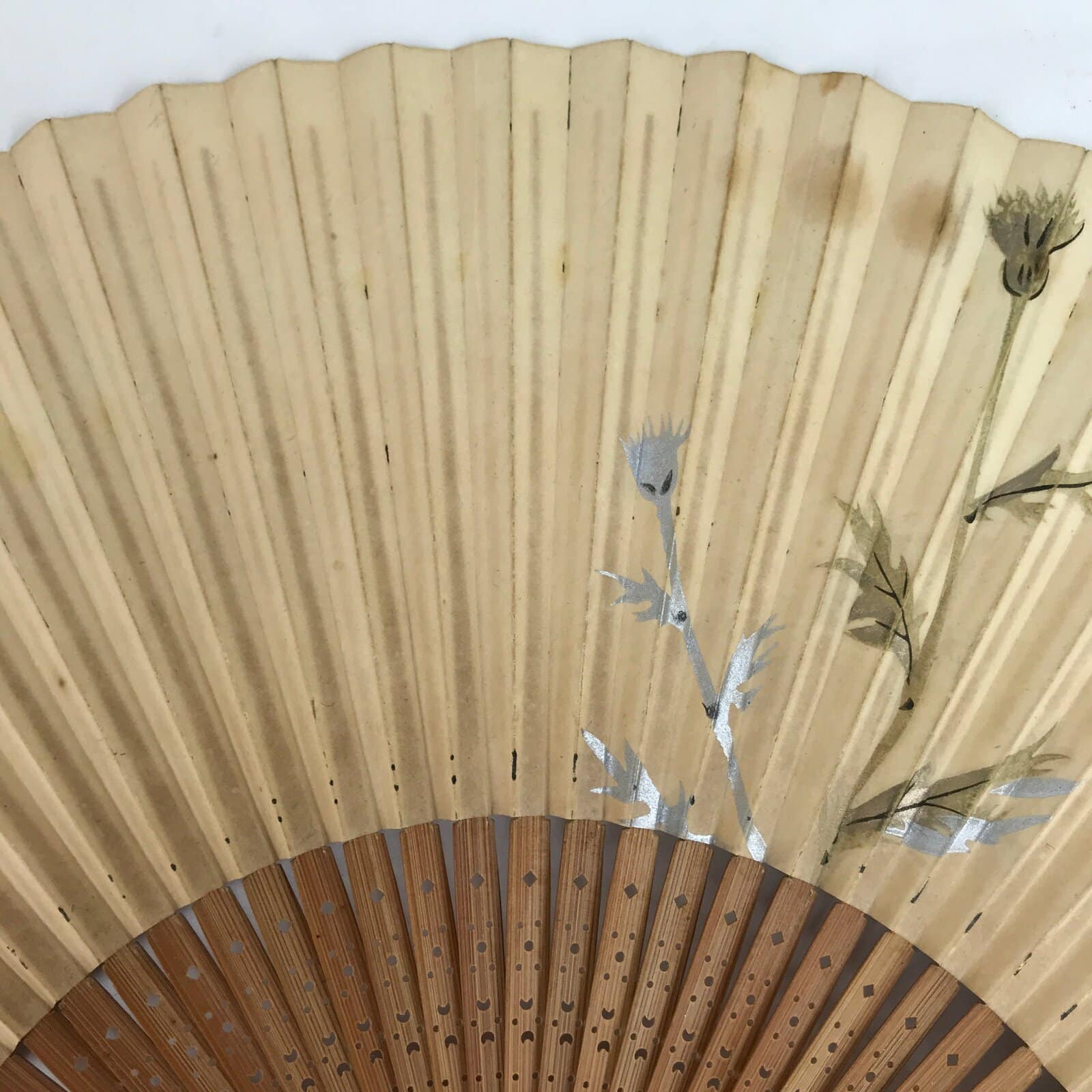 January 23, 2026Japanese Paper Folding Fan Sensu Vtg Bamboo Frame Flowers Silver Flag 4D849