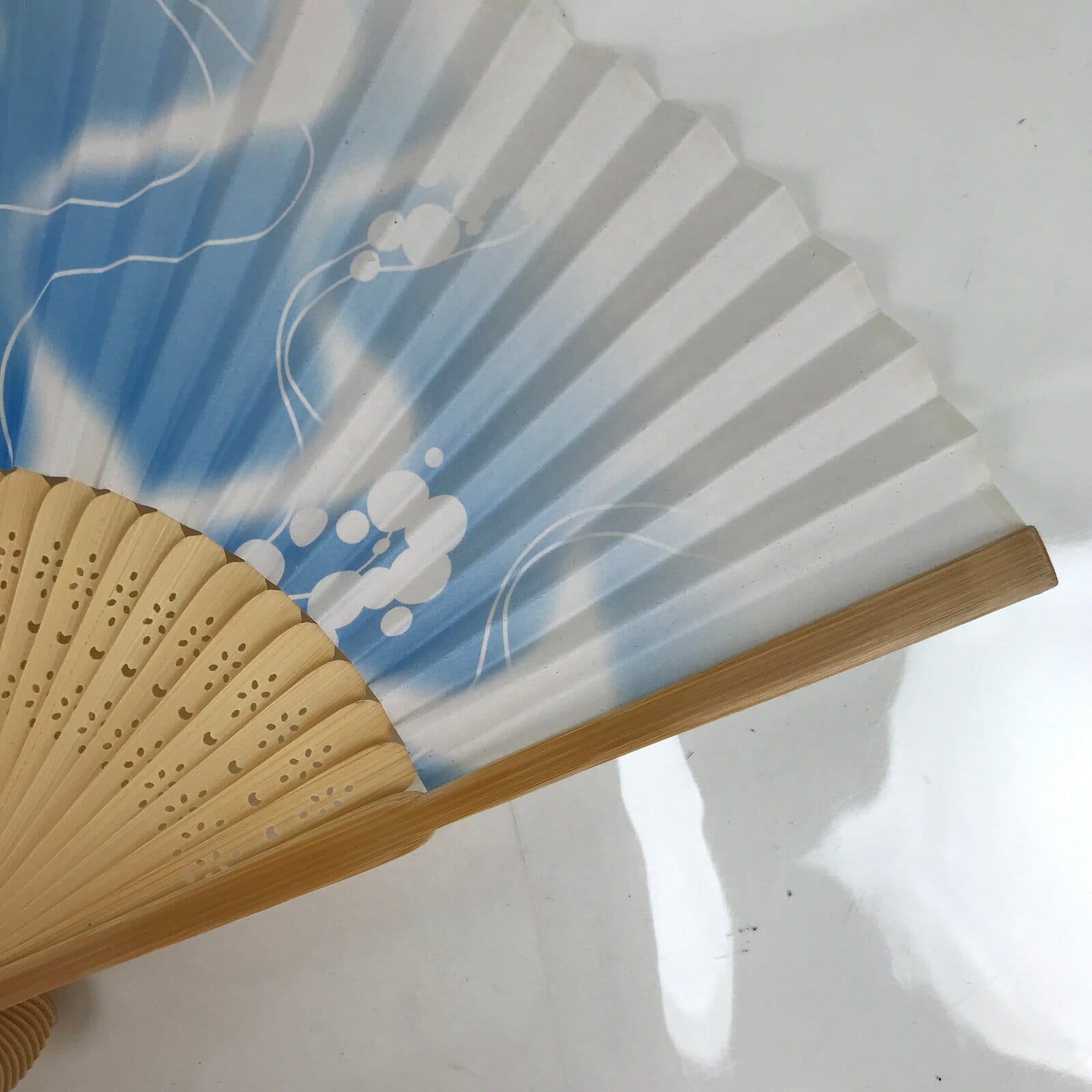 This is a traditional Japanese folding fan called sensu. You can use this when it’s hot or as decoration. This fan is a promotional item handed out by the Gifu Prefecture Gaming Association and made of a natural bamboo frame and is airy blue and white wind design with the Mild Seven logo and a banner of their 30th anniversary. This item was promotional goods. Mild Seven is a Japanese brand of cigarette (now called Meivus).