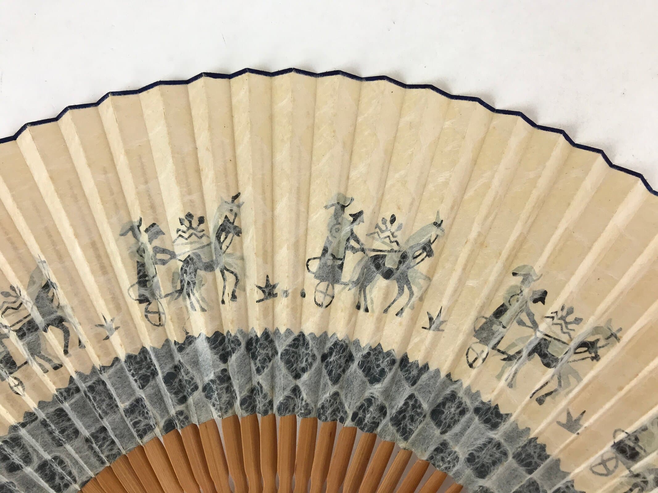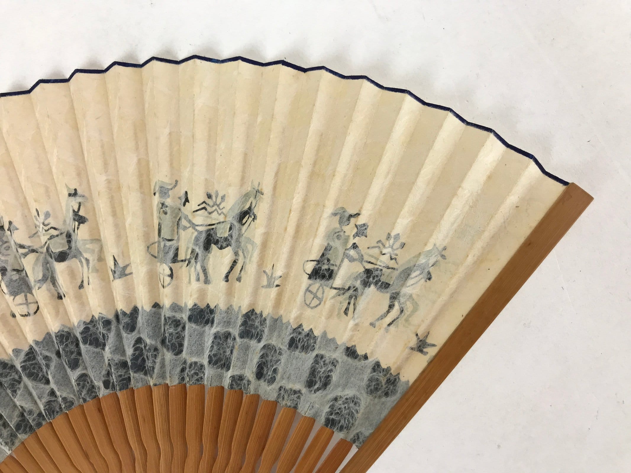 January 21, 2026Japanese Paper Folding Fan Sensu Bamboo Frame Horses Blue Animals 4D783