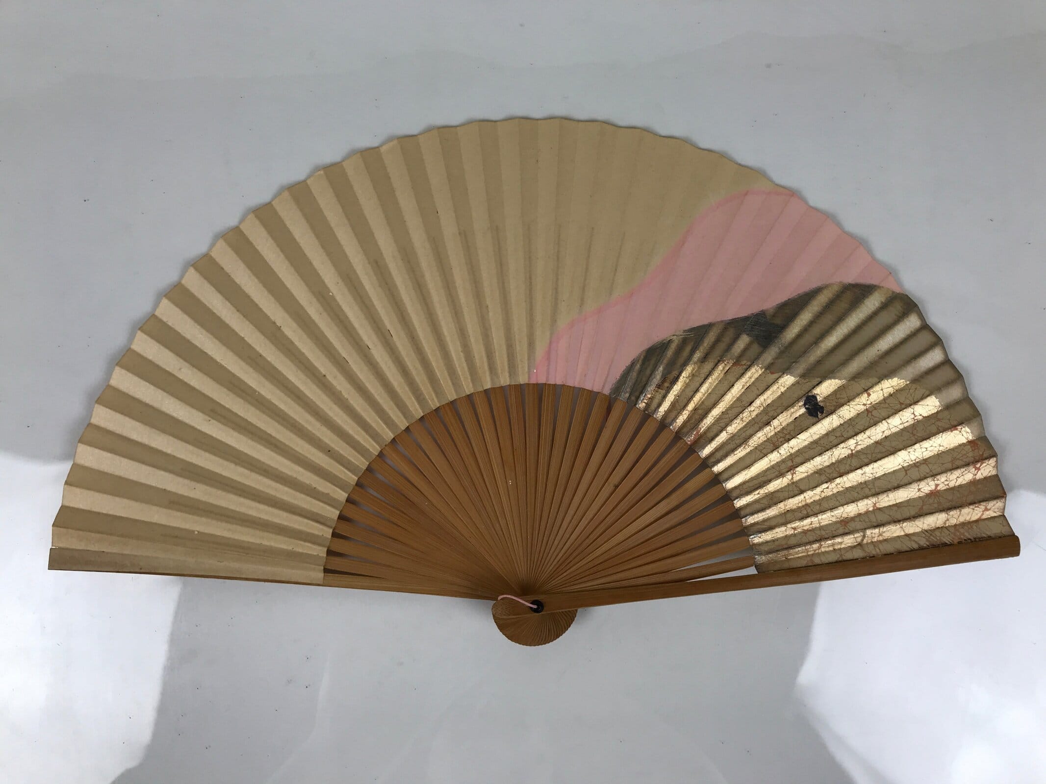 January 24, 2026Japanese Paper Folding Fan Sensu Vtg Bamboo Frame Beige Pink Gold Design 4D910