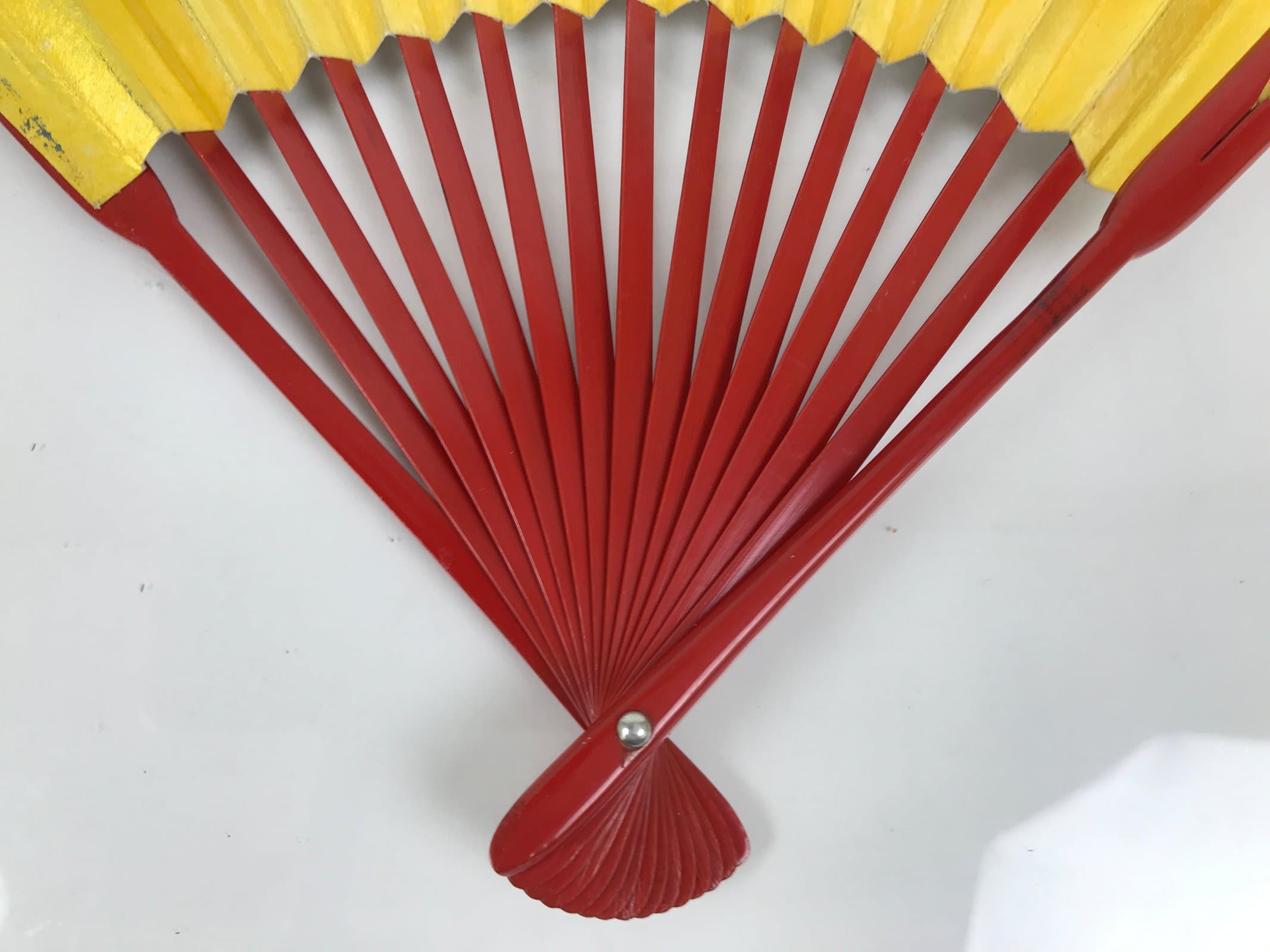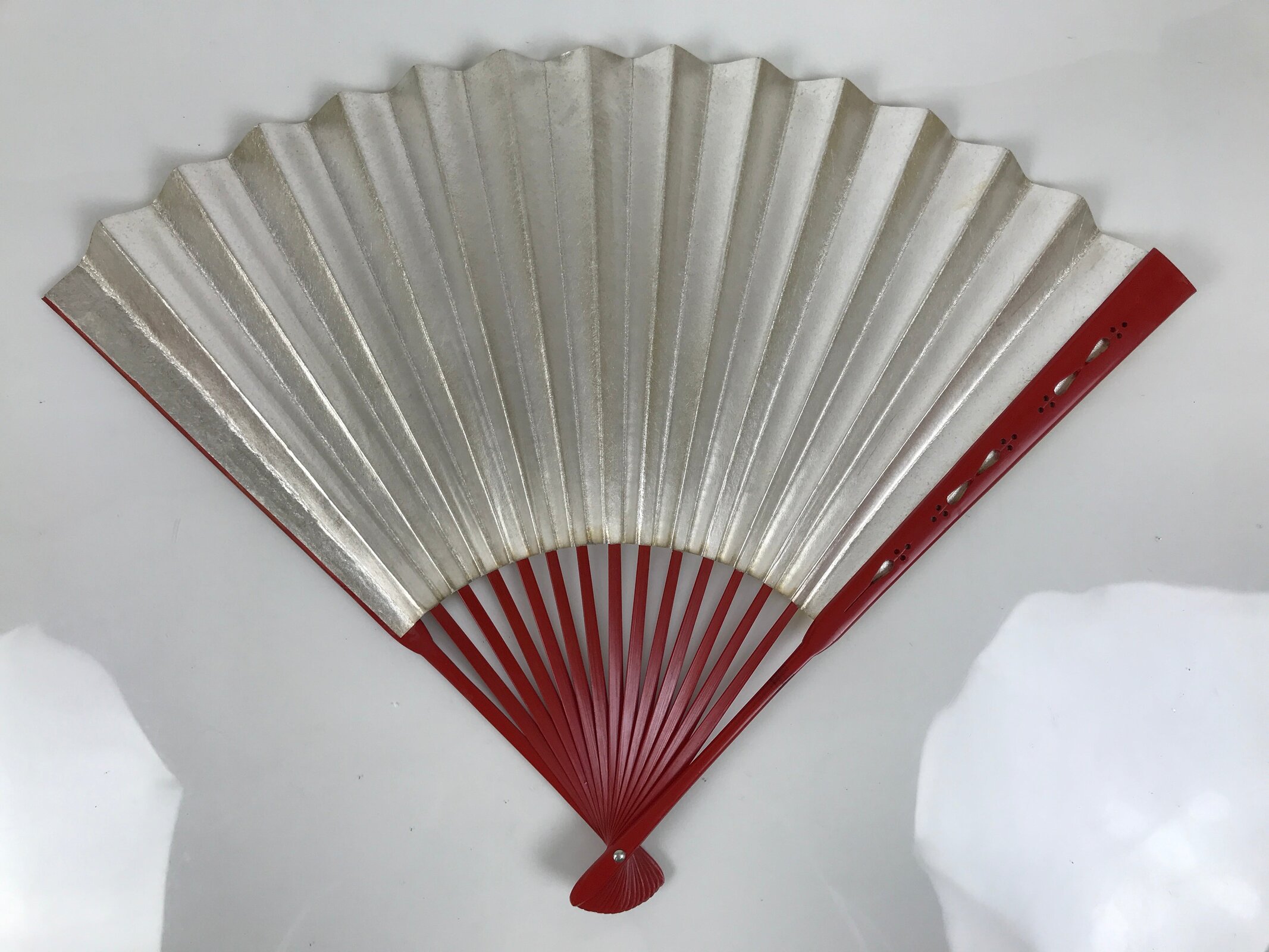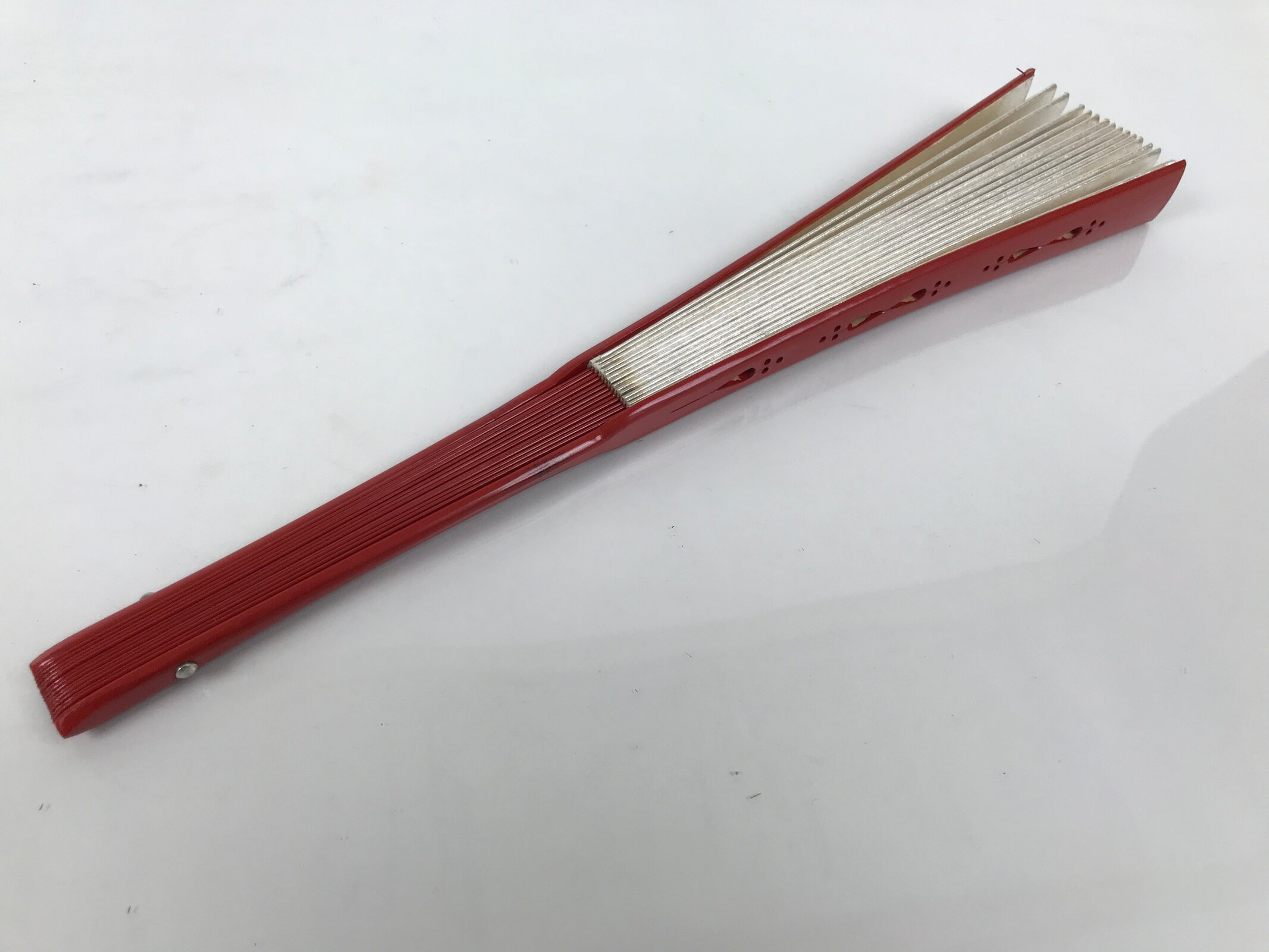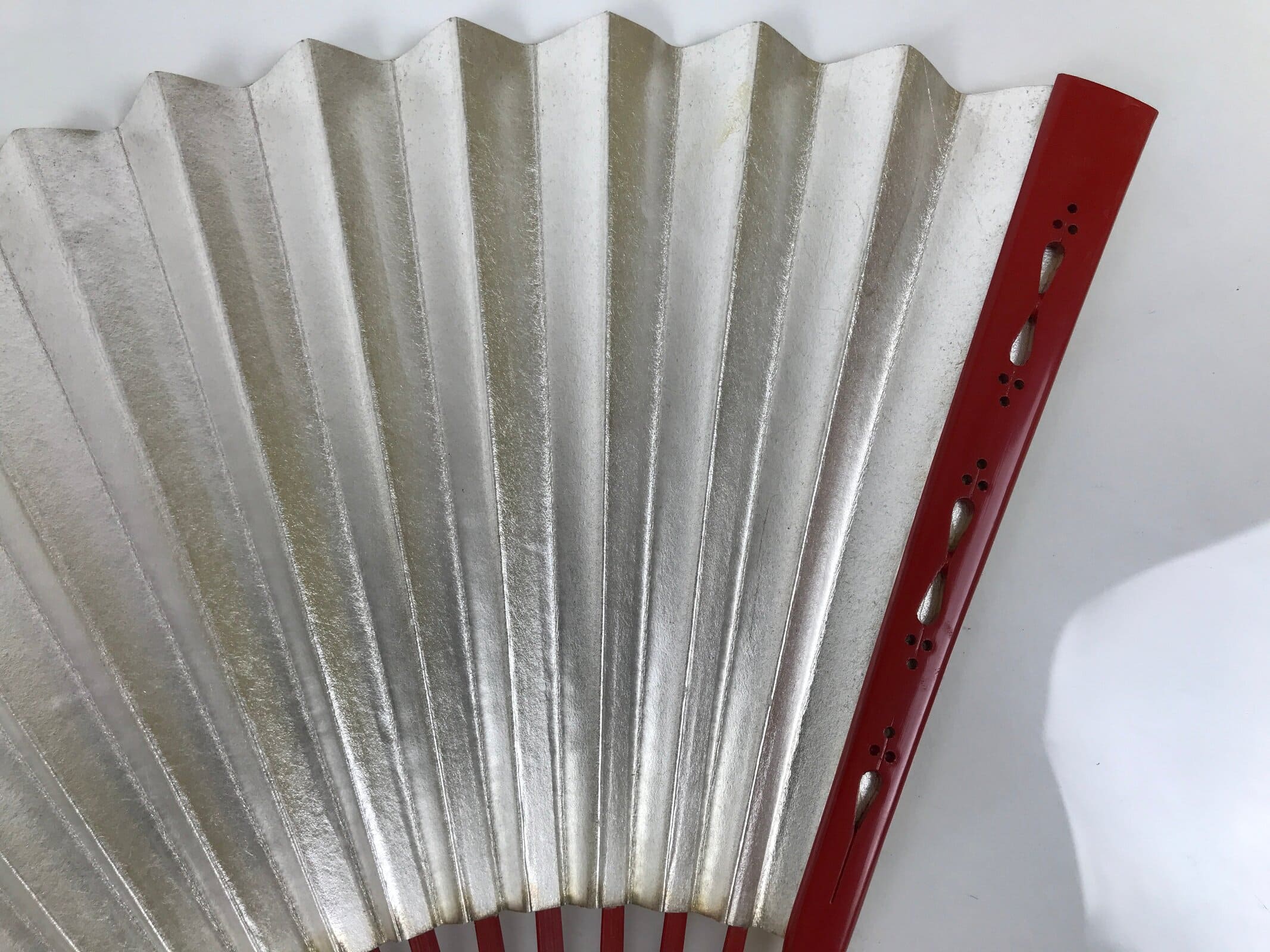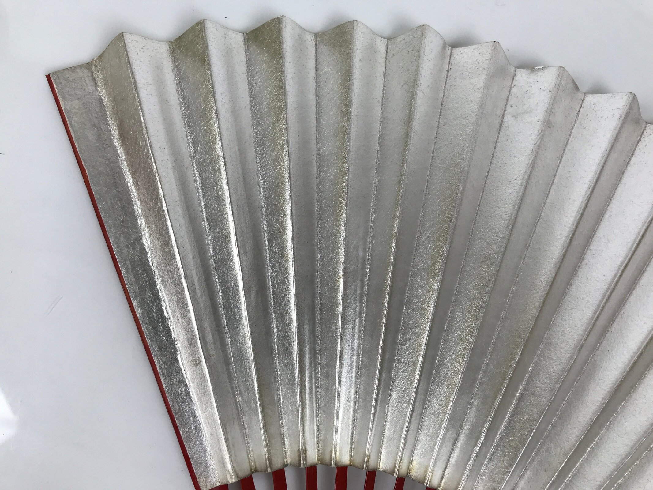 January 25, 2026Japanese Paper Folding Fan Sensu Vtg Red Bamboo Frame Silver Gold Blank 4D944