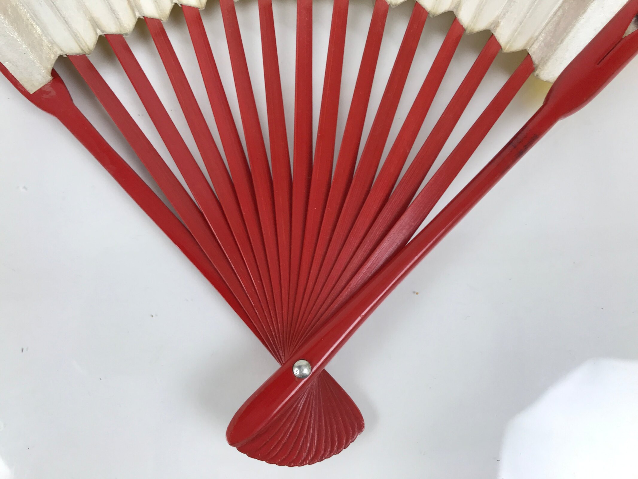 Japanese Paper Folding Fan Sensu Vtg Red Bamboo Frame Simple White Blank 4D945