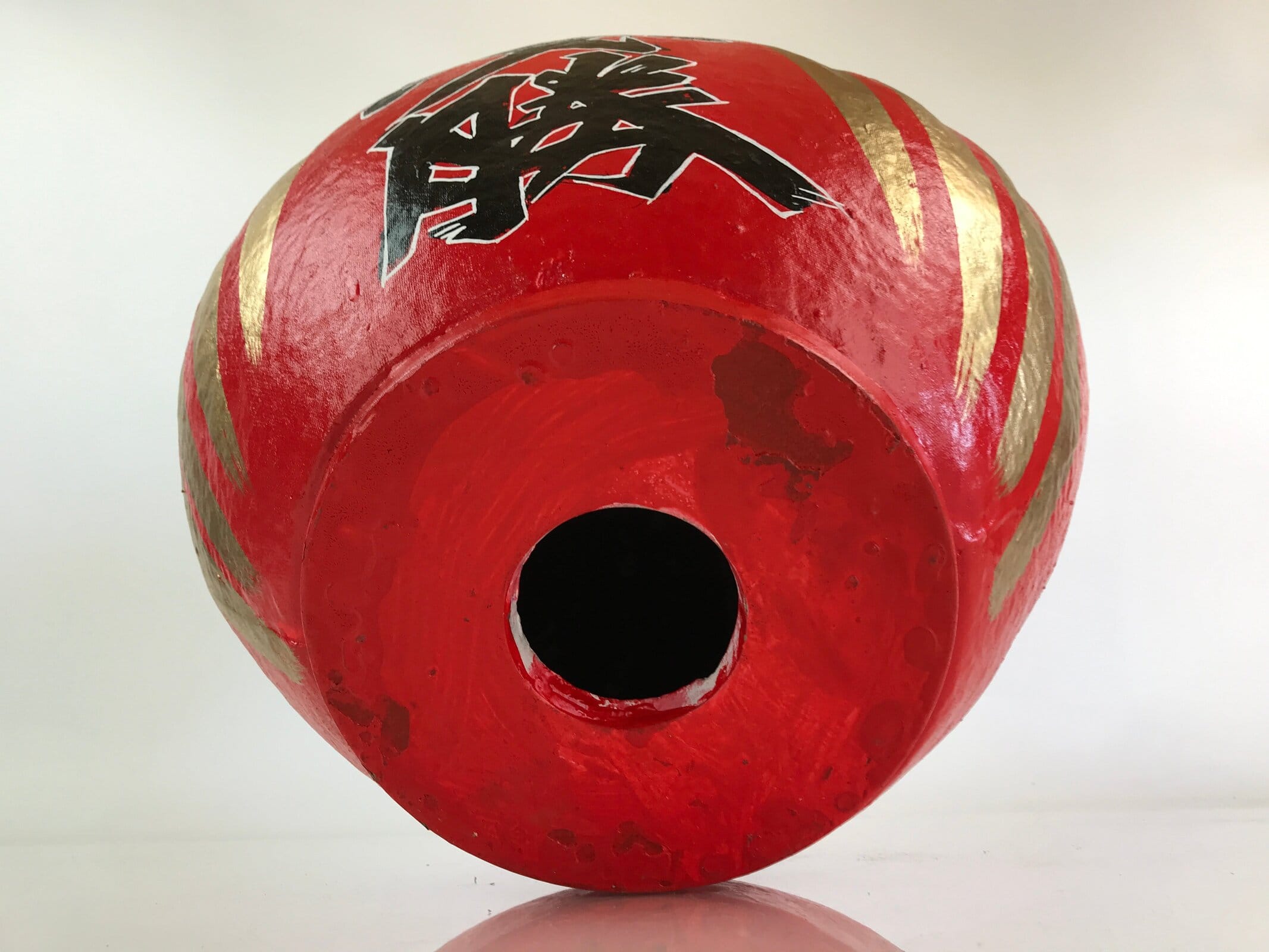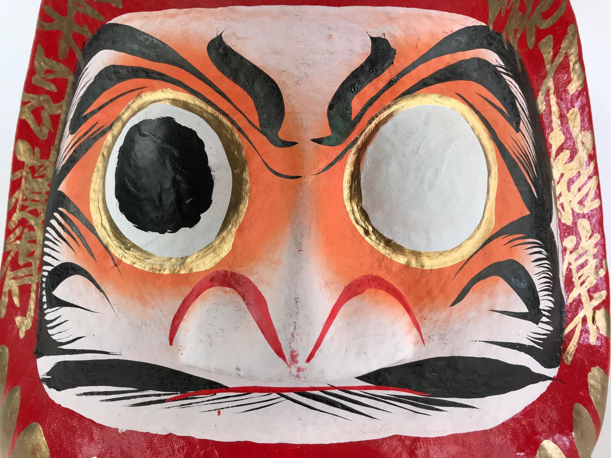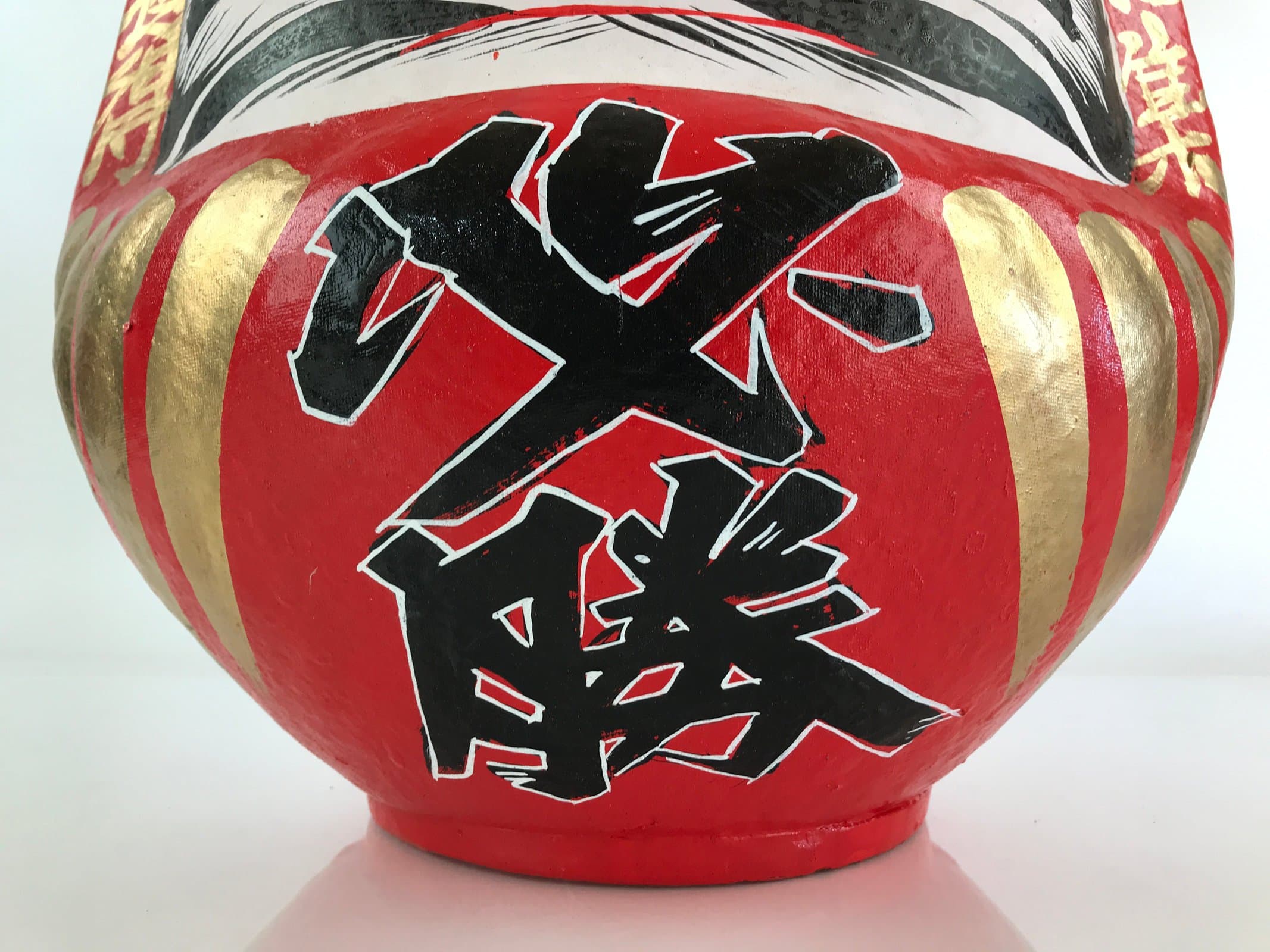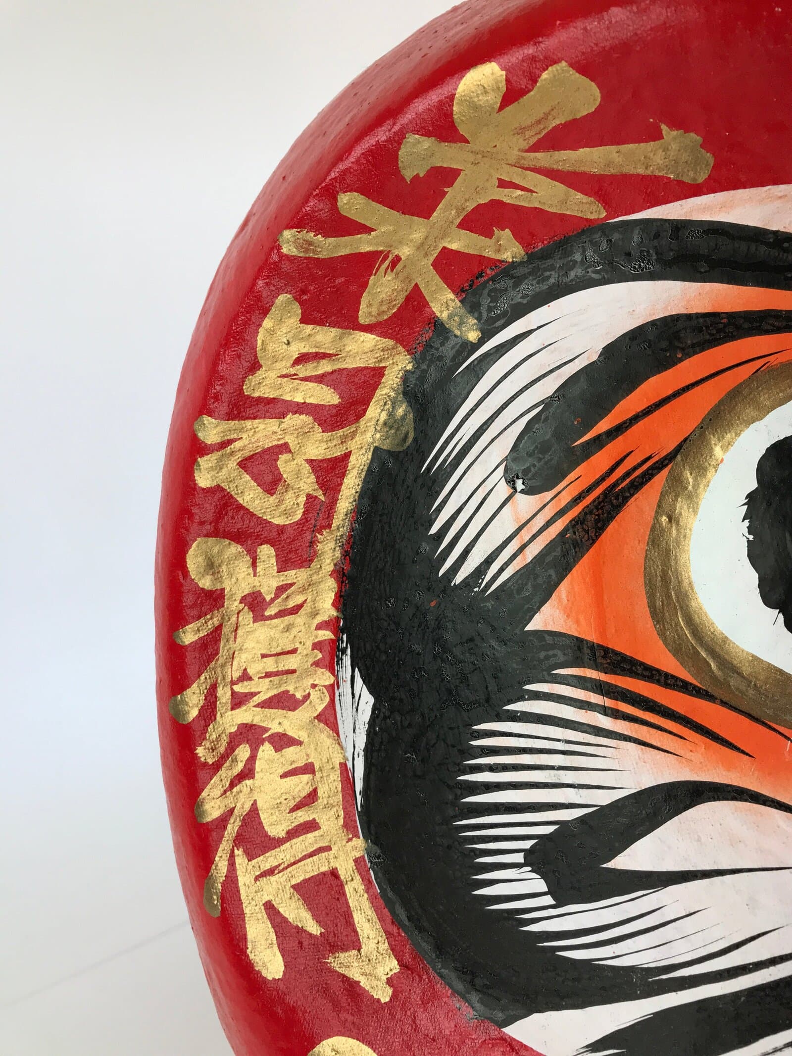 This is a Japanese Daruma figurine made of papier-mâché. It is a traditional Japanese lucky charm and toy that imitates the figure of Daruma Daishi sitting in meditation. Daruma doll is sold without eyes, and it is common for buyers to put their eyes on themselves. Fill in one eye with a wish, then fill in the other eye when your wish comes true.