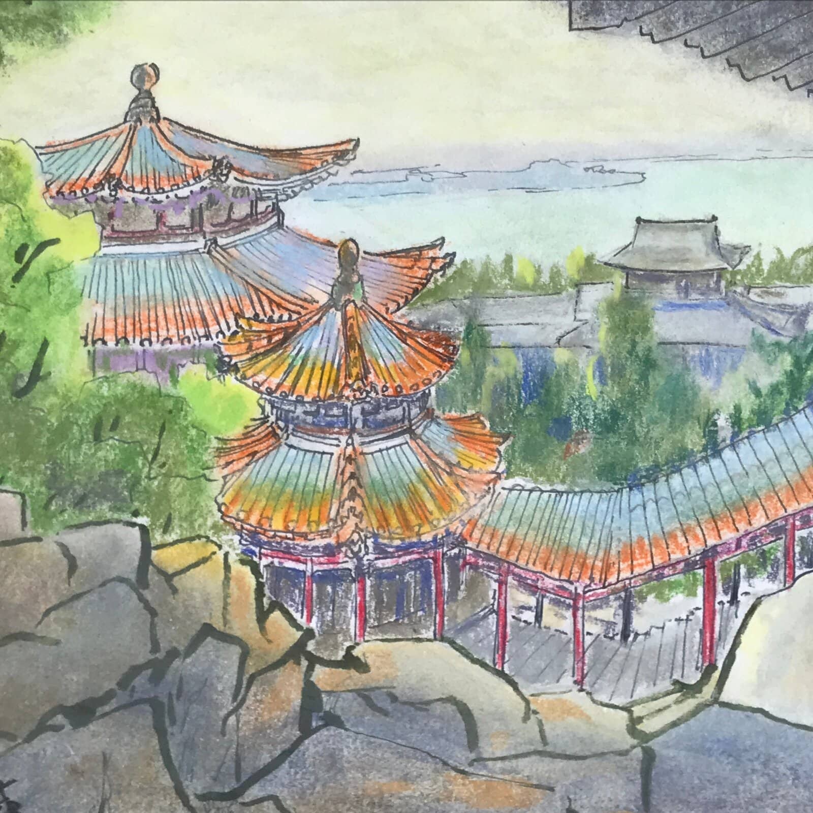 January 23, 2026Japanese Pastel Drawing Chinese Temple Stairs Art Signed Artist Unknown FL350
