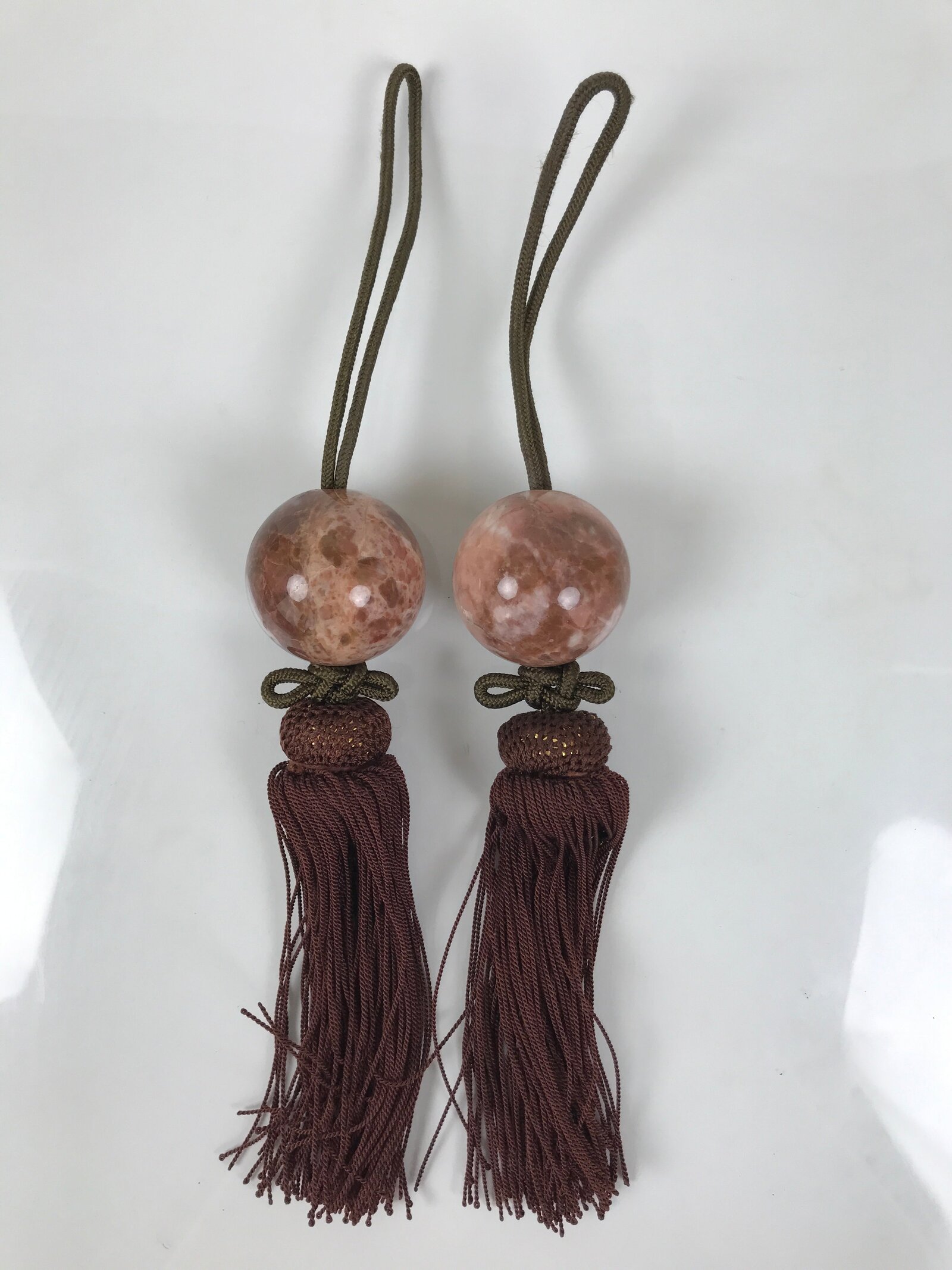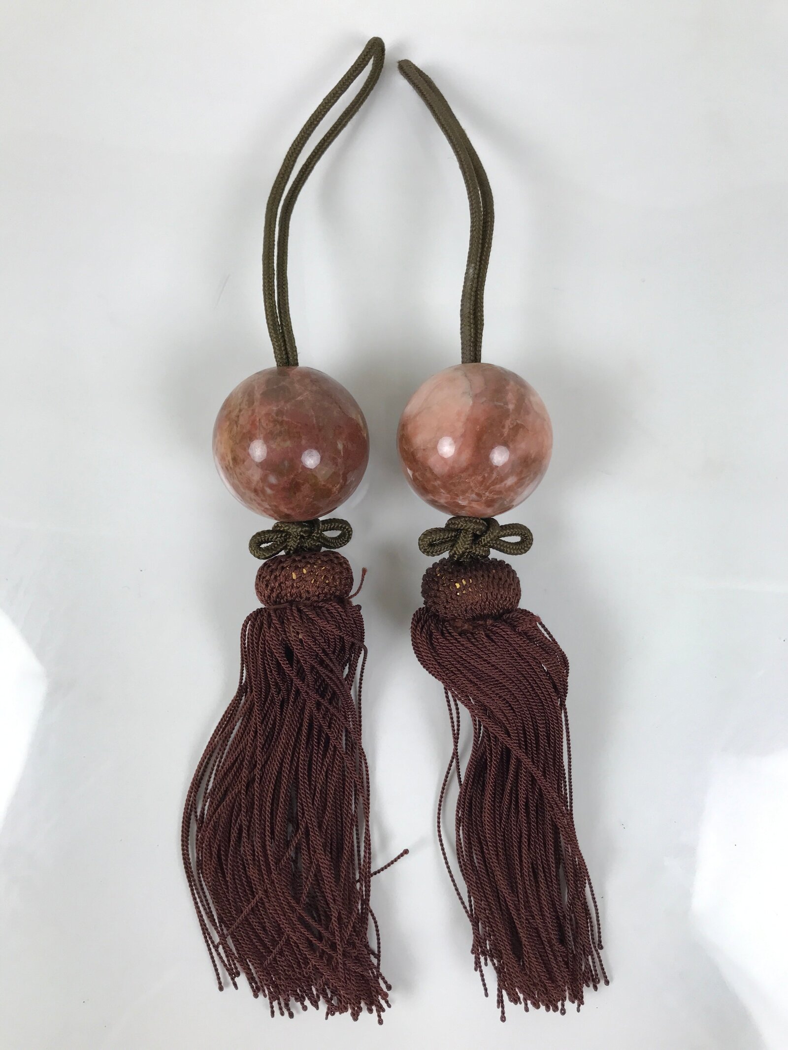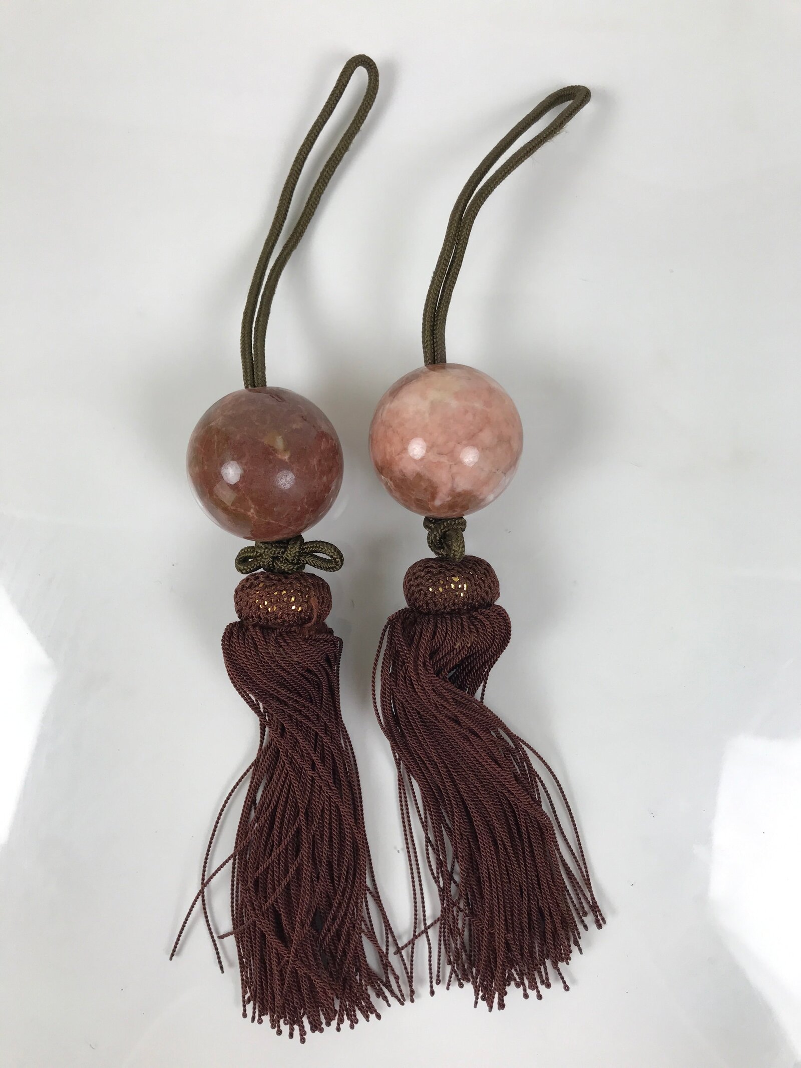 January 24, 2026Japanese Pink Stone Hanging Scroll Weights Fuchin Kakejiku Brown Tassel FC364