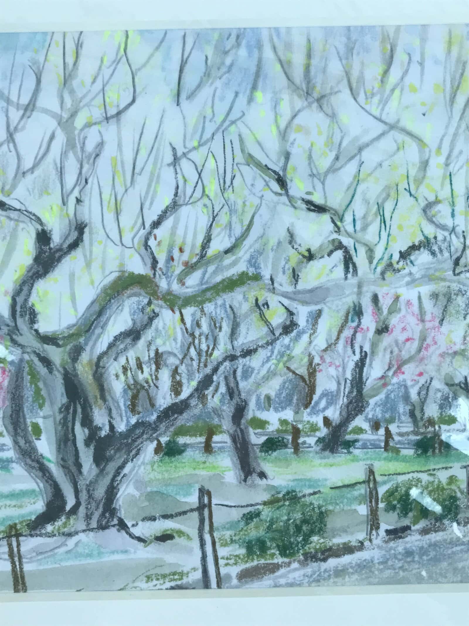 January 23, 2026Japanese Plum Blossoms In Park Scene Pastel Drawing Original Art Unsigned FL302