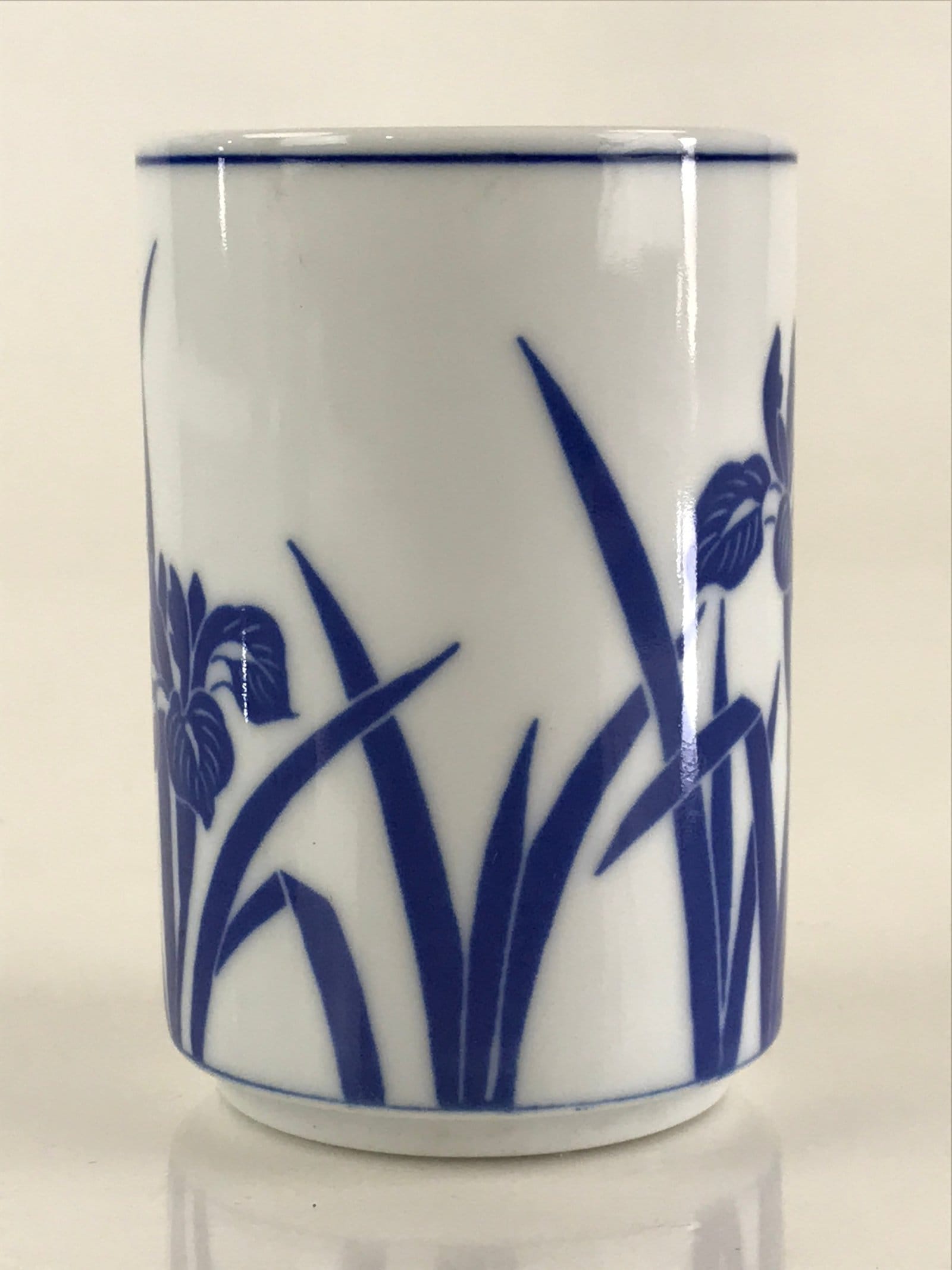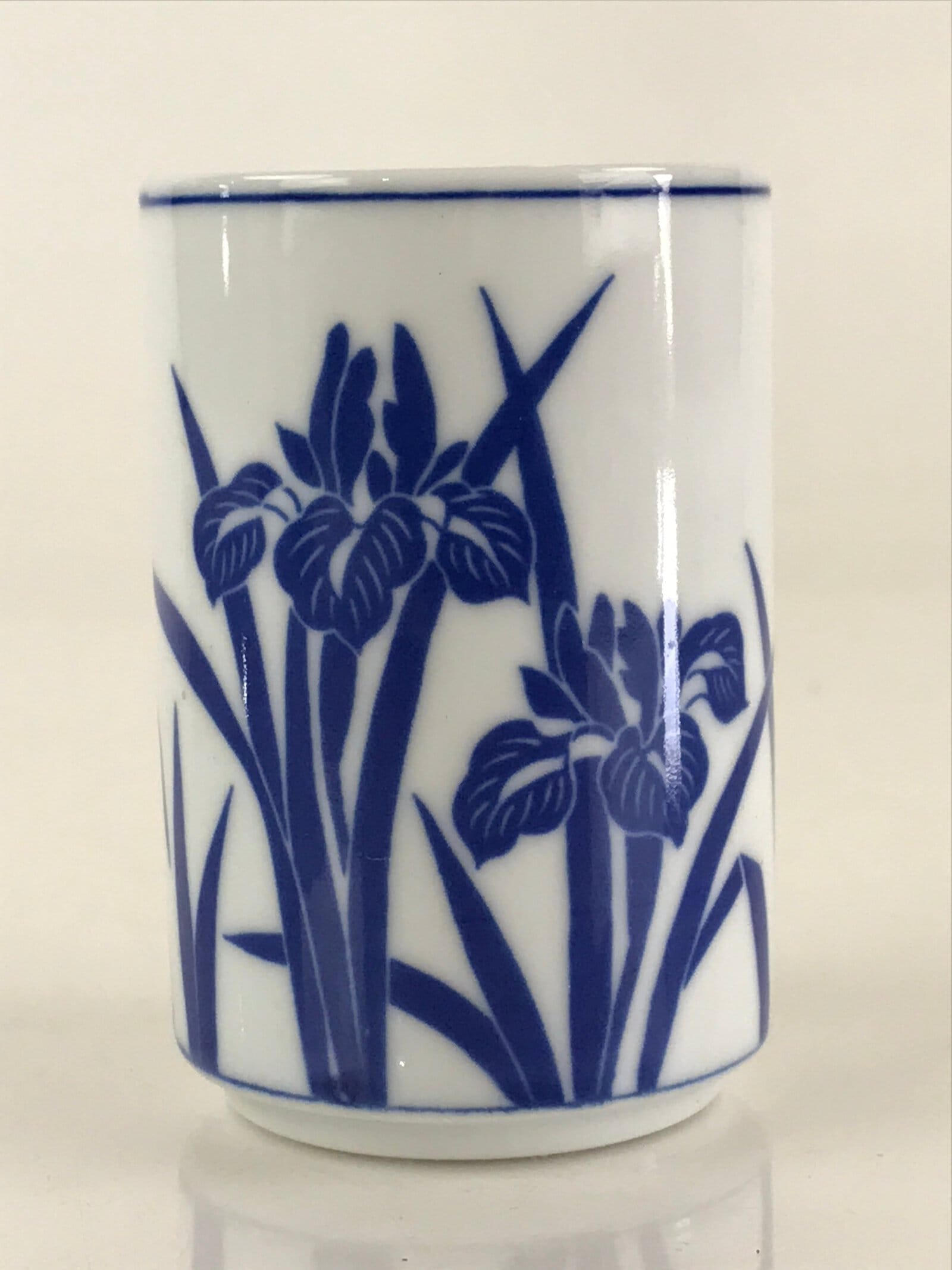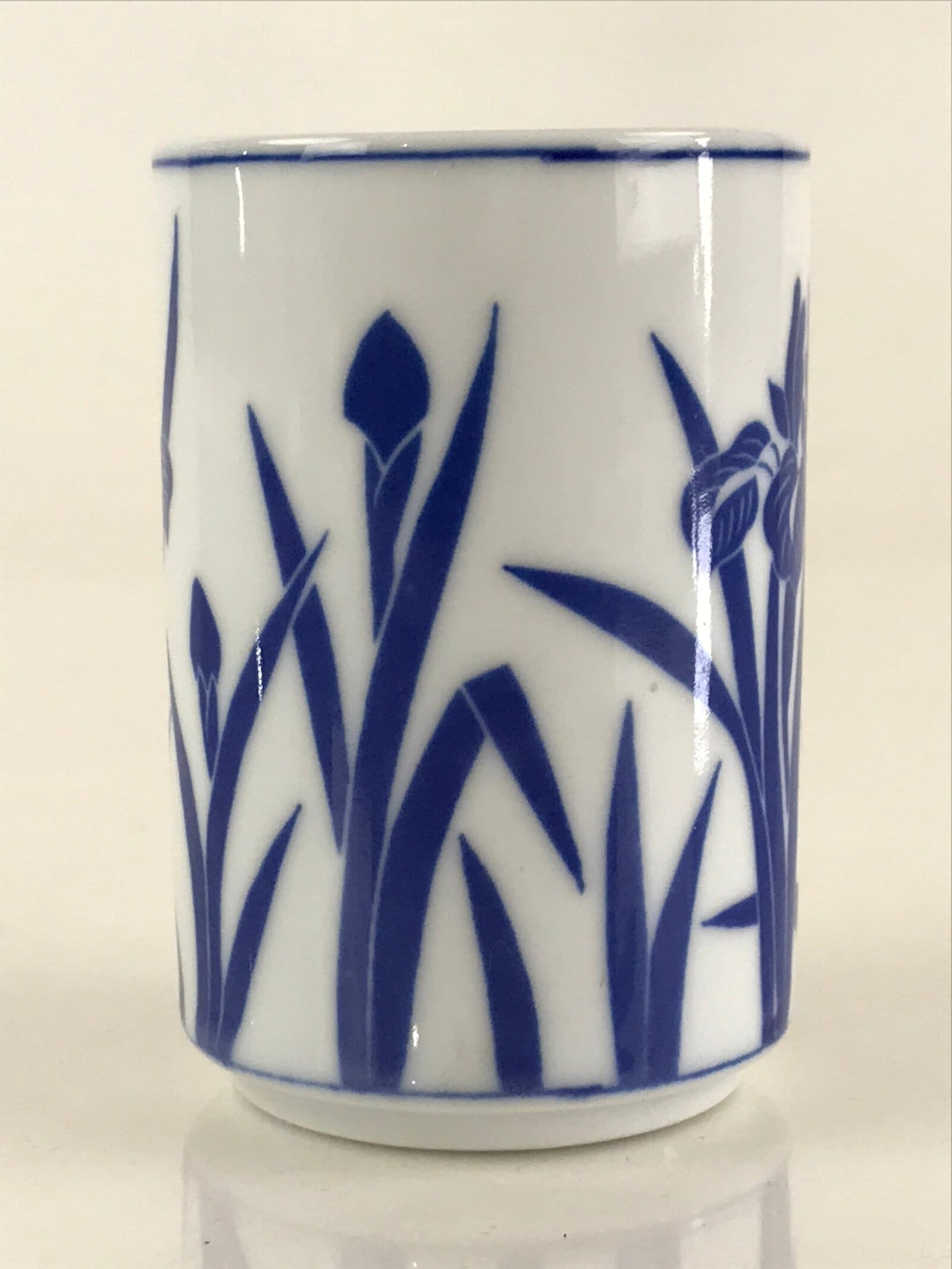 Japanese Porcelain Arita Ware Teacup Yunomi Vtg Blue Sometsuke Iris Sencha TC321