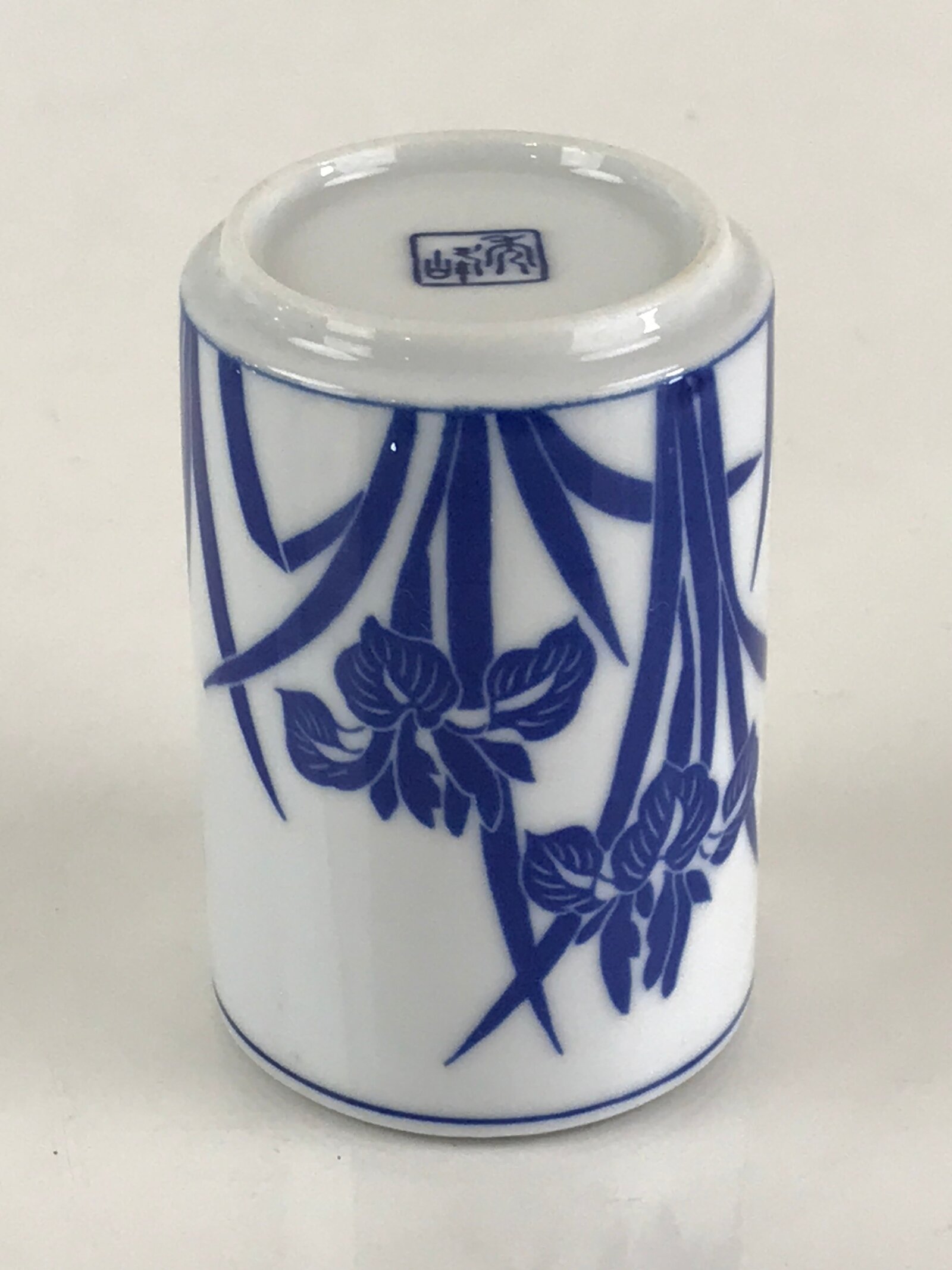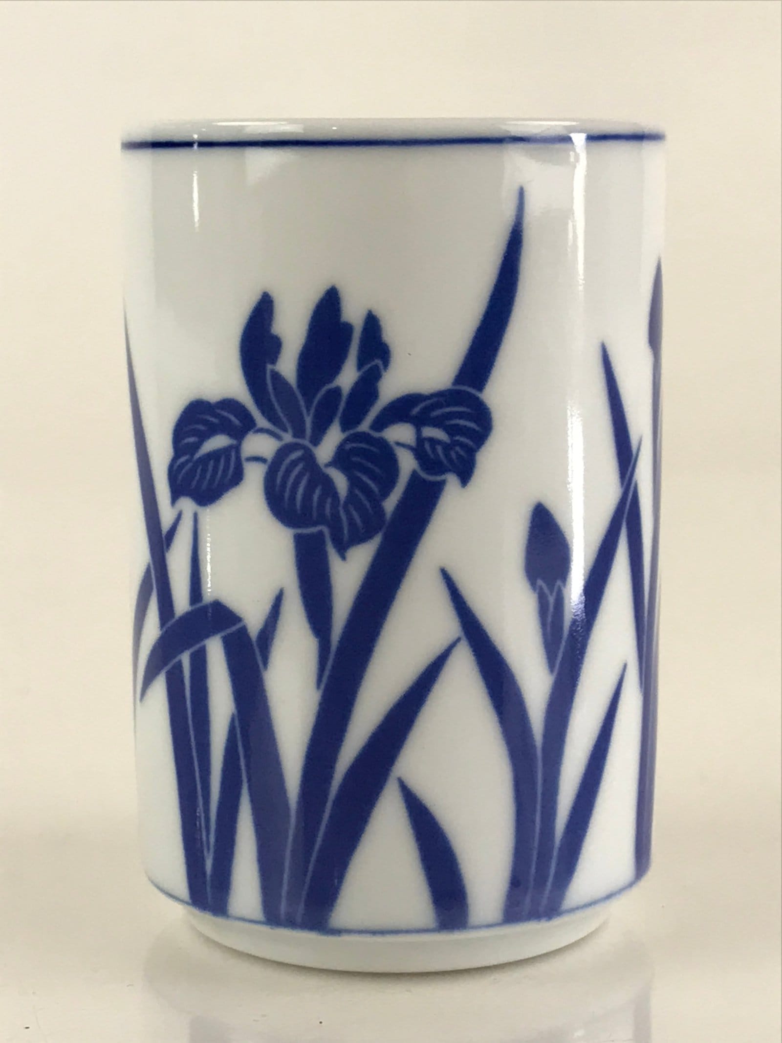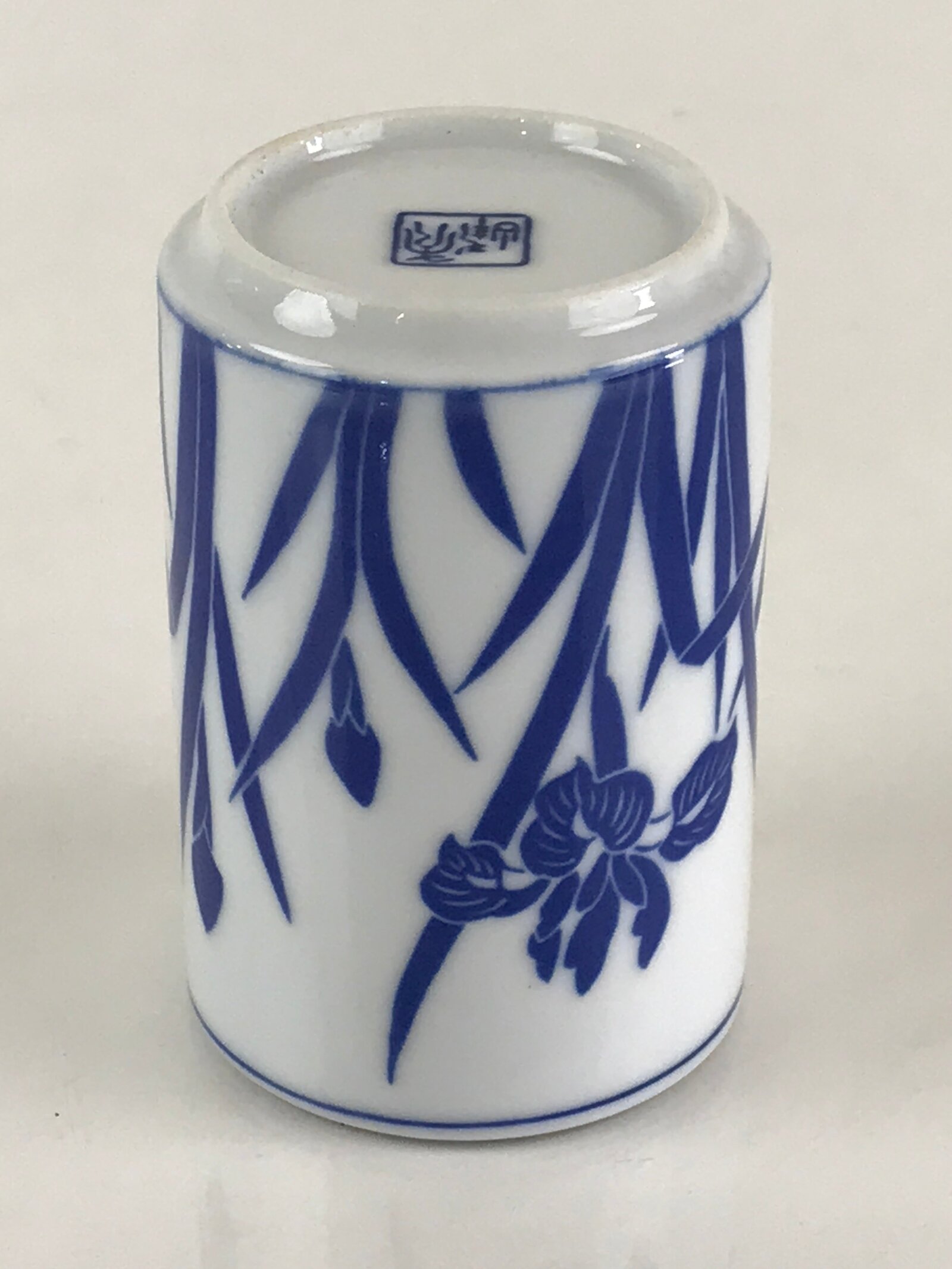 Japanese Porcelain Arita Ware Teacup Yunomi Vtg Blue Sometsuke Iris Sencha TC321