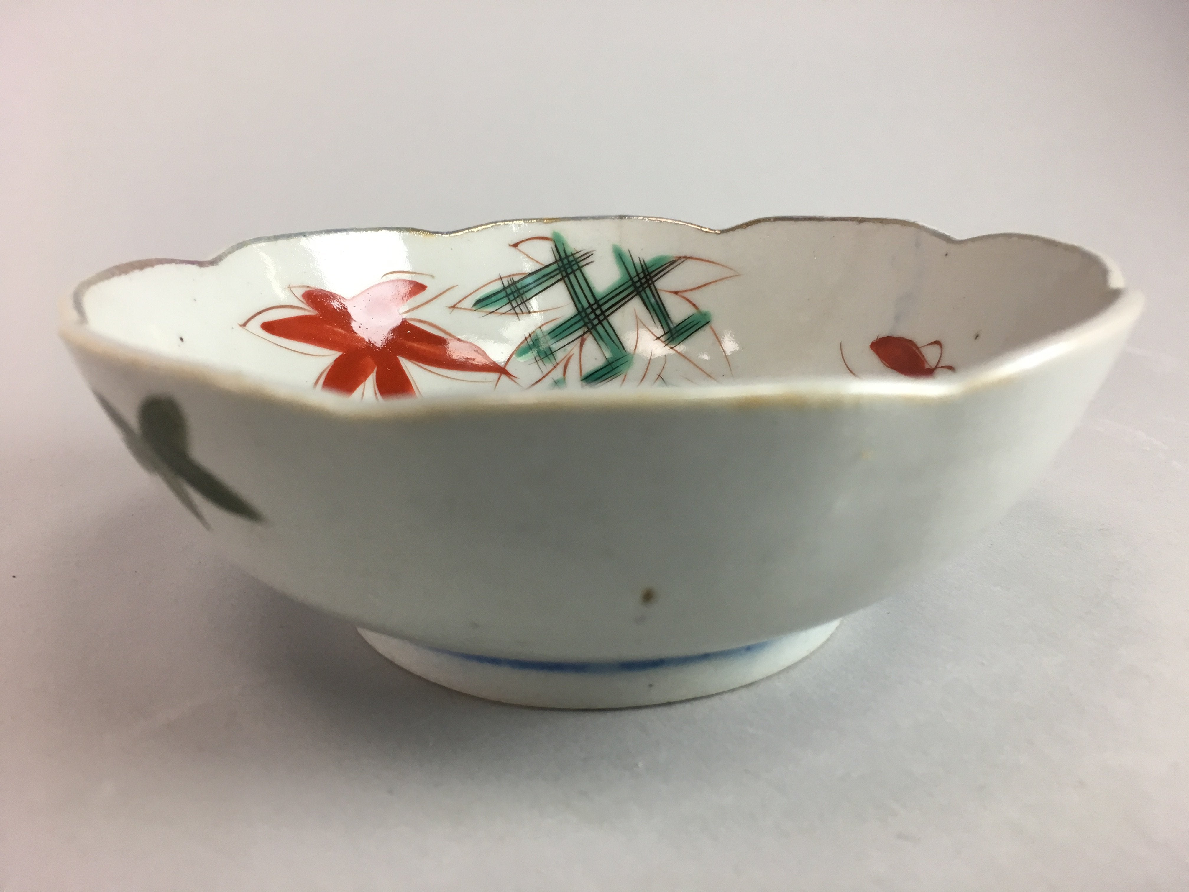 Japanese Porcelain Bowl Vtg Kobachi C1930 Floral Butterfly Design PT414