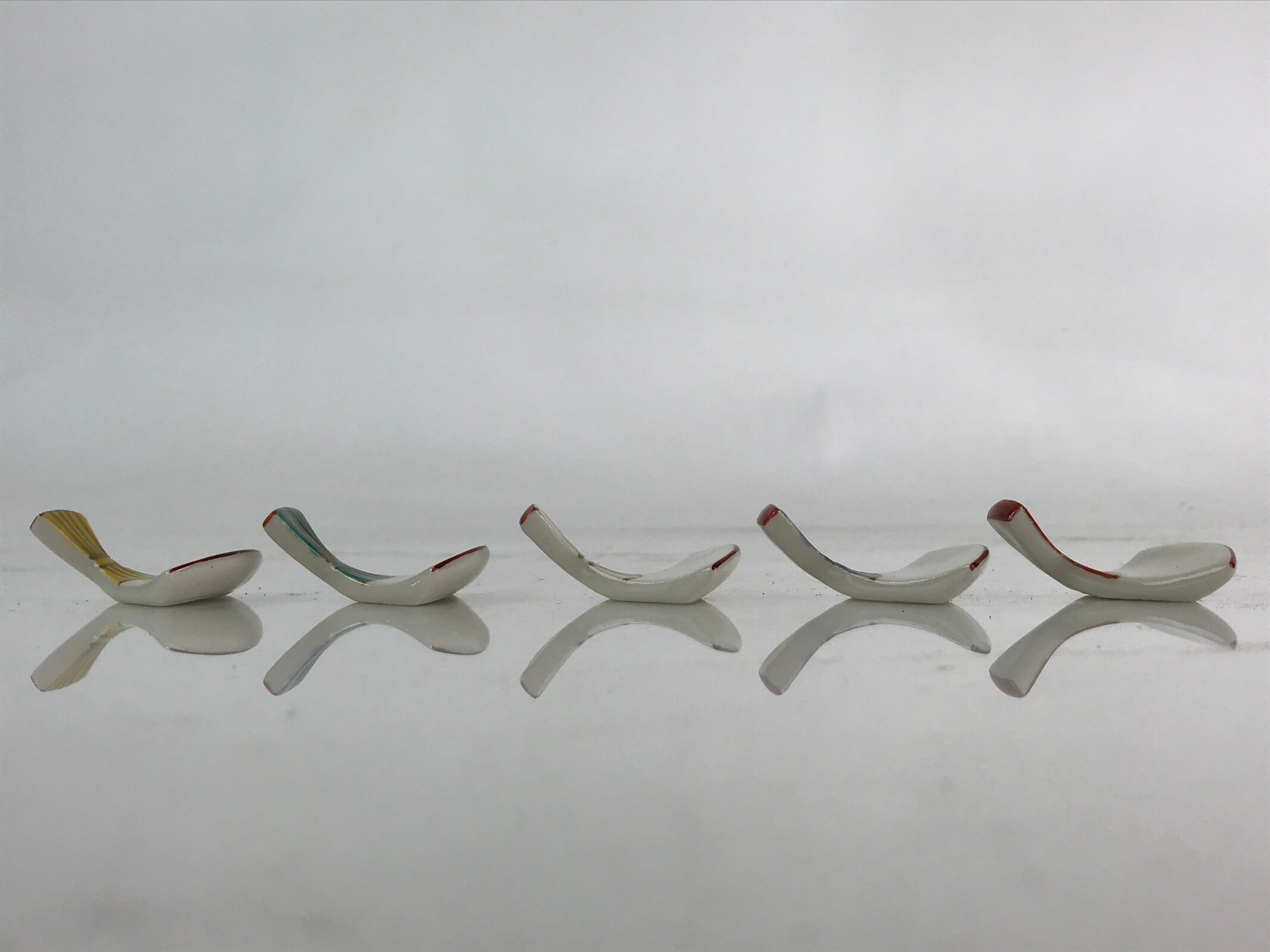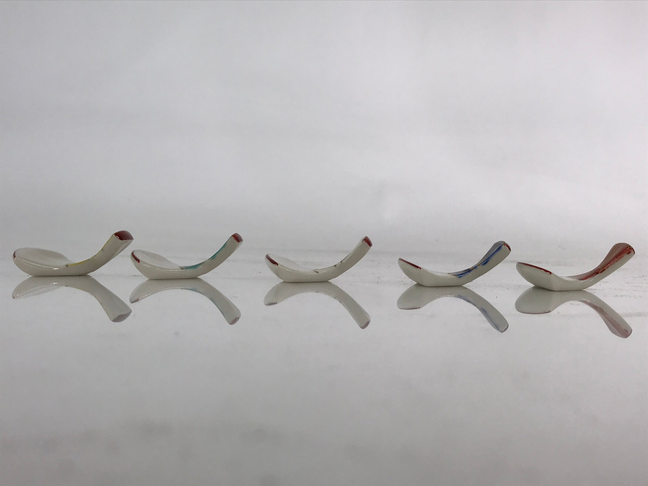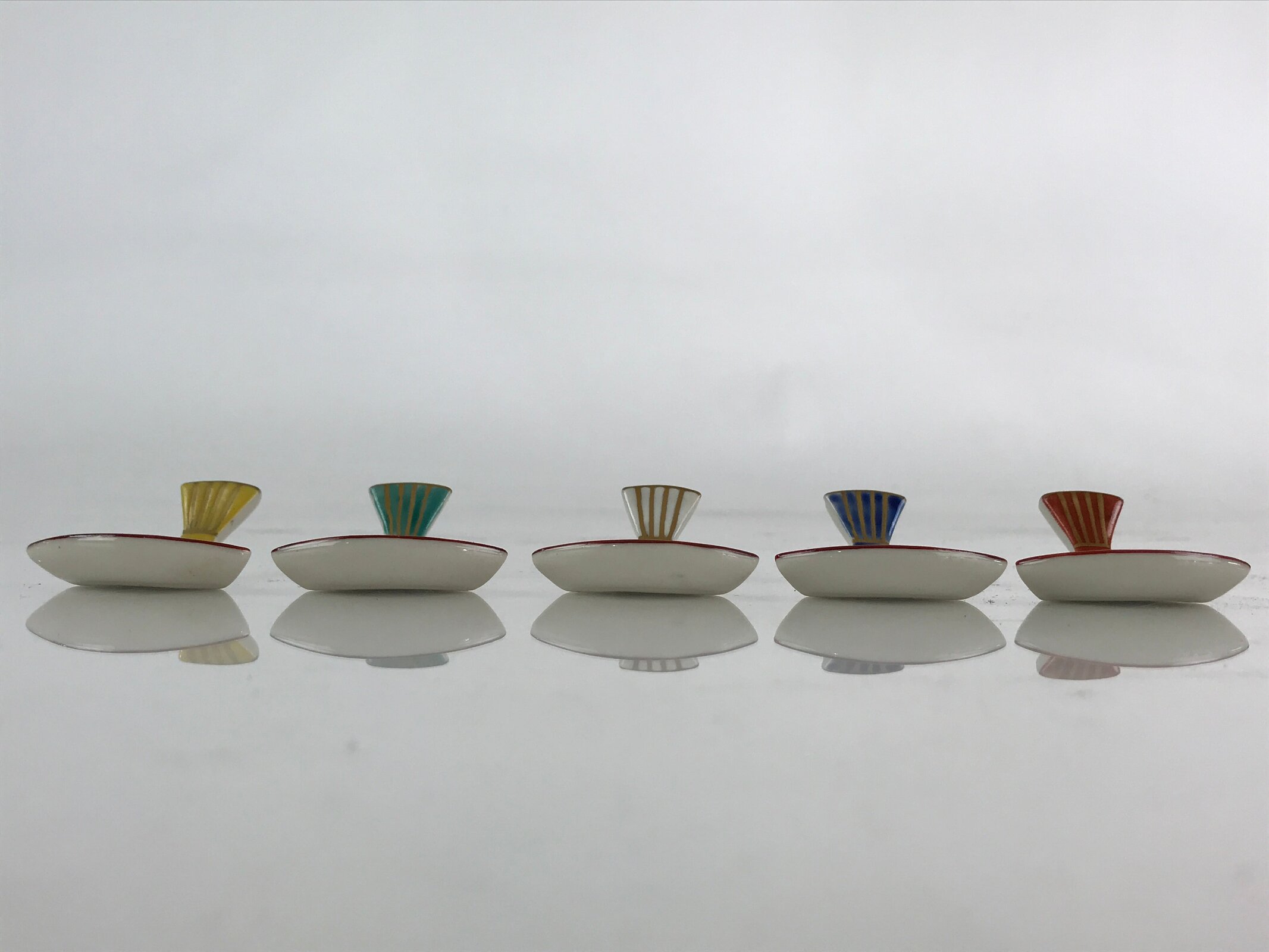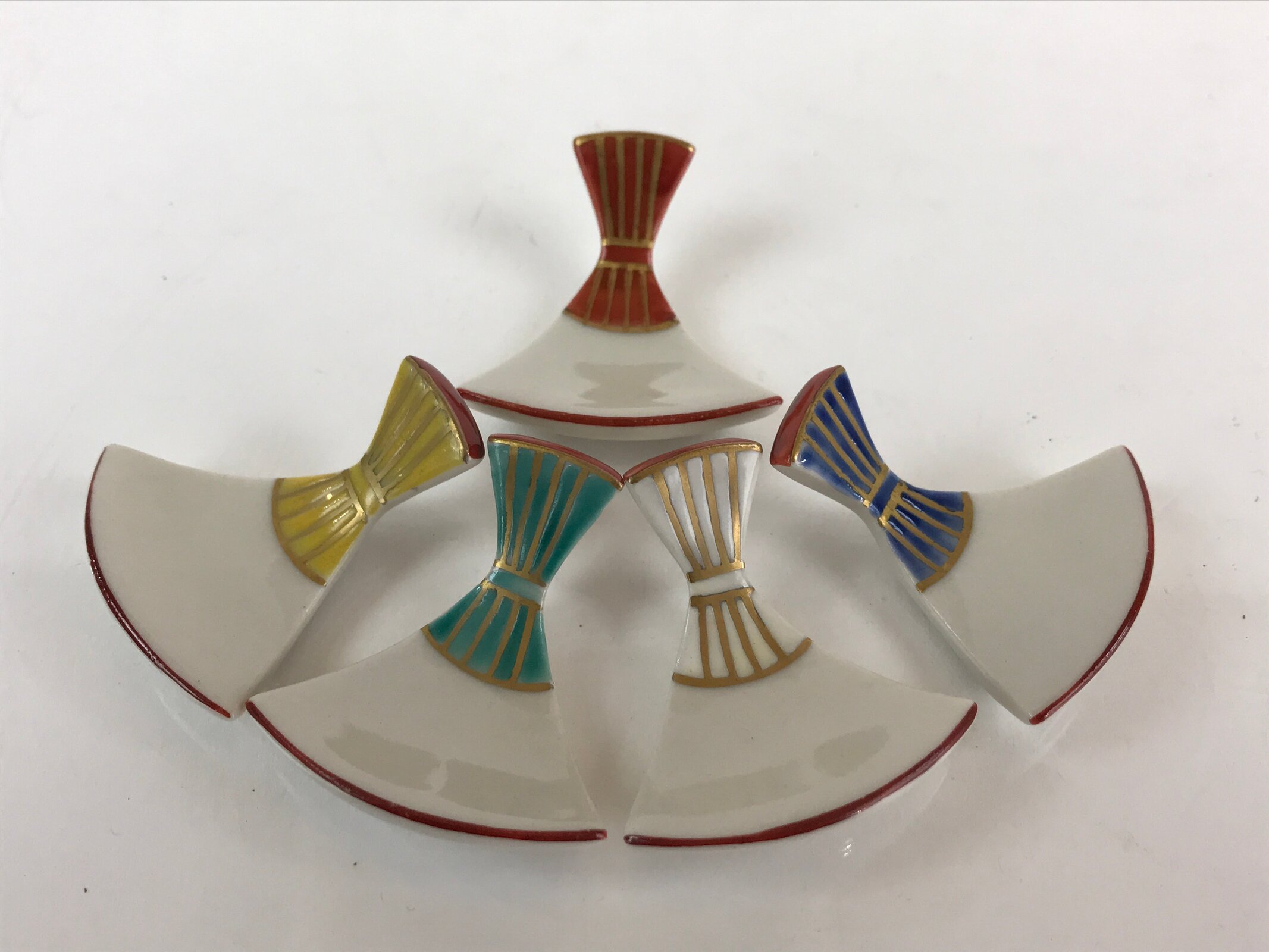 Japanese Porcelain Chopstick Rest Holder 5pc Set Vtg Bellflower Hashioki CR268