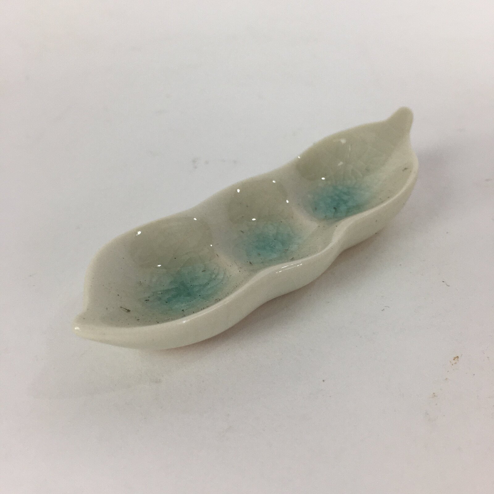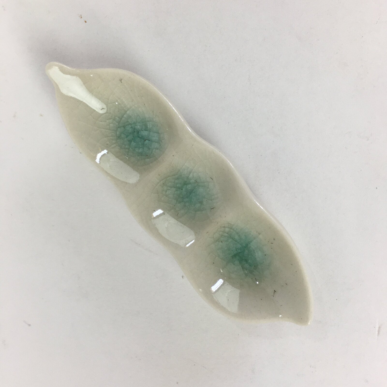 - Design: Light blue glass glaze, white edamame shape