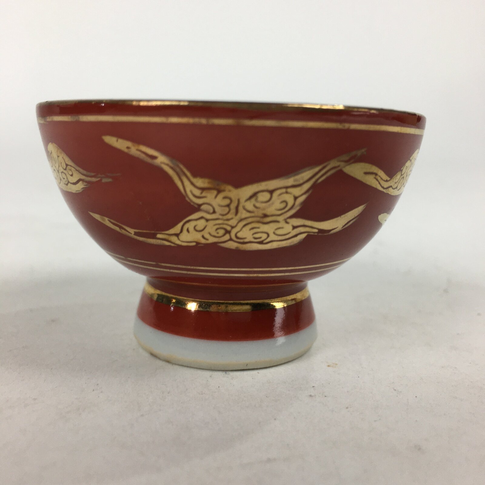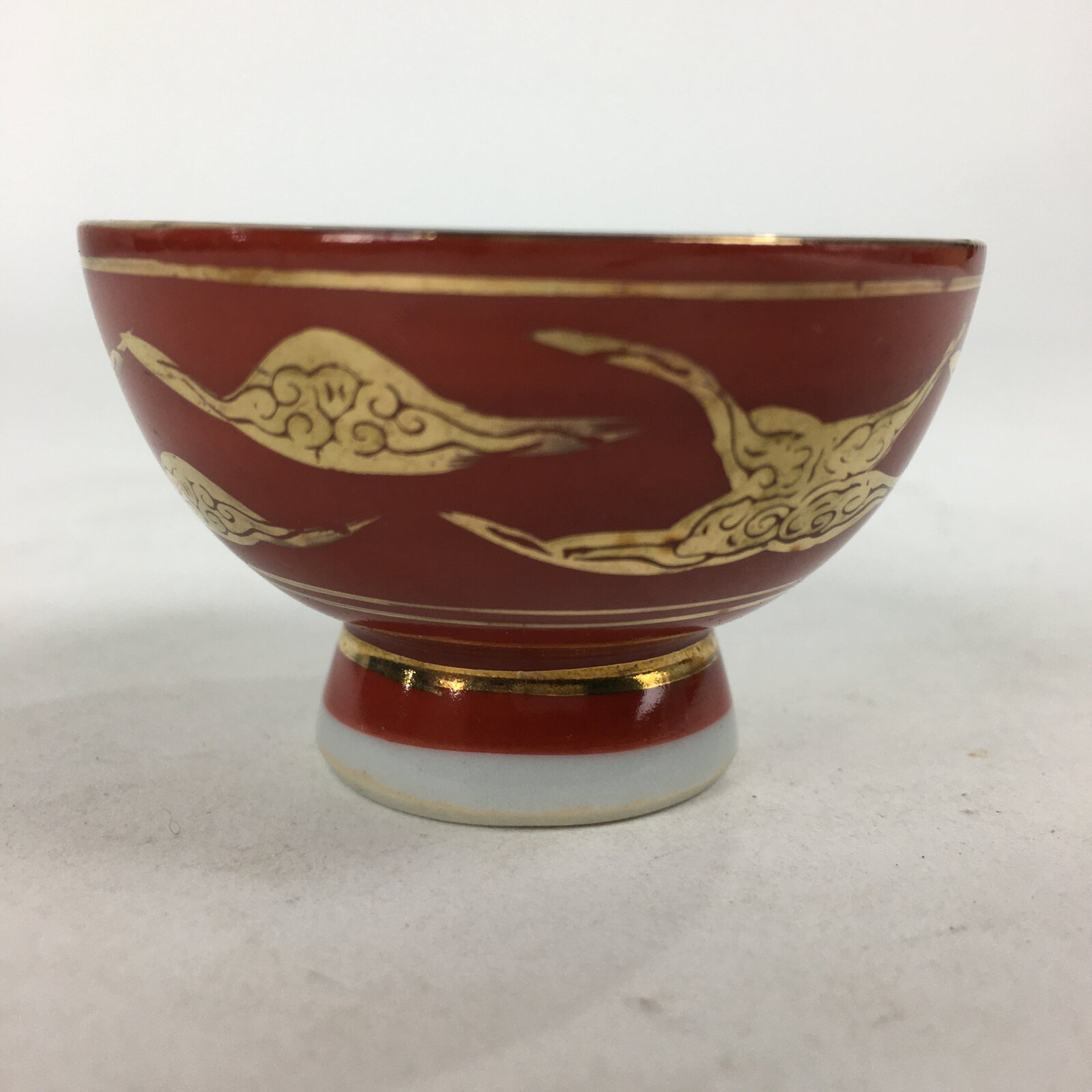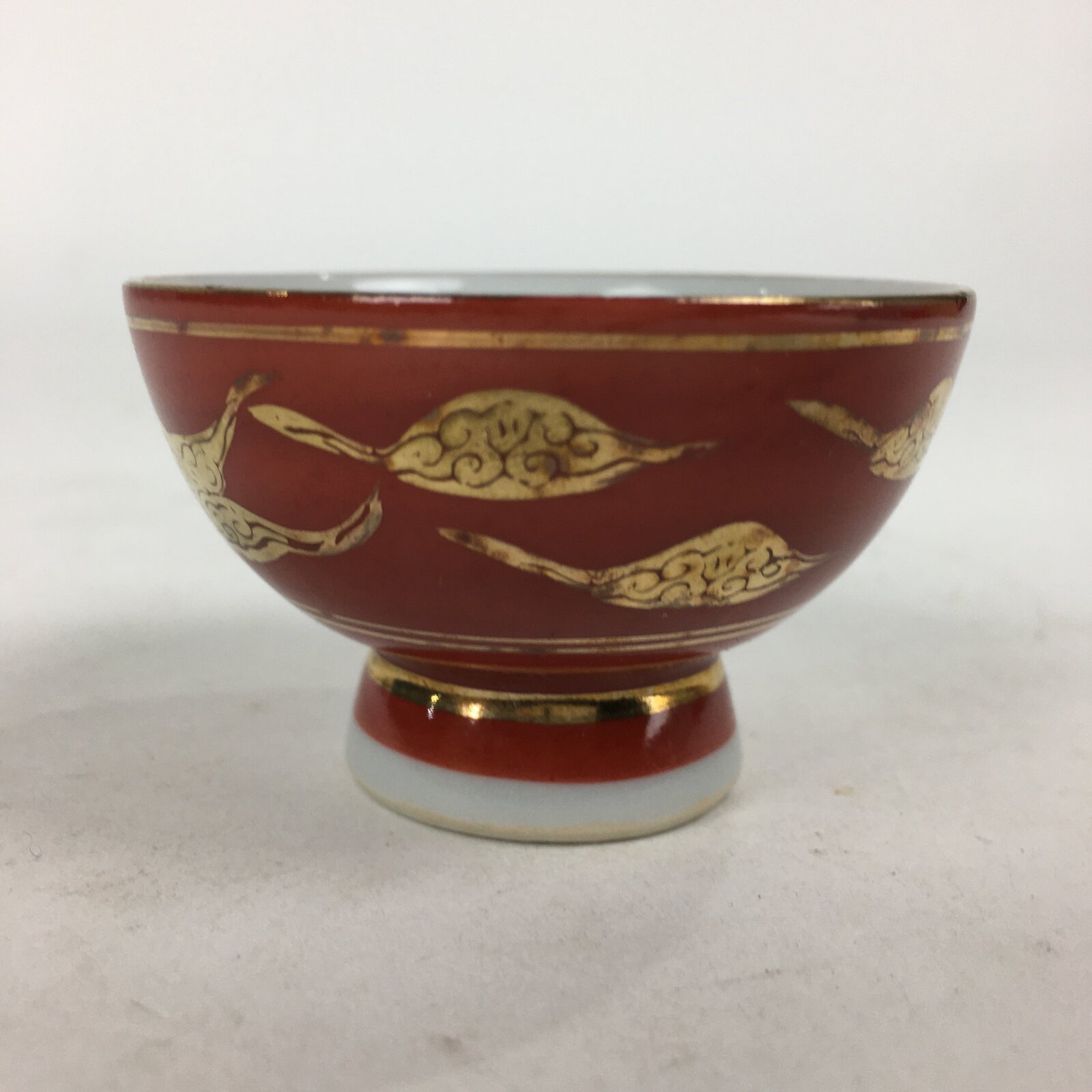 Japanese Porcelain Kutani Ware Sake Cup Vtg Guinomi Ochoko Red Gold Crane GU998