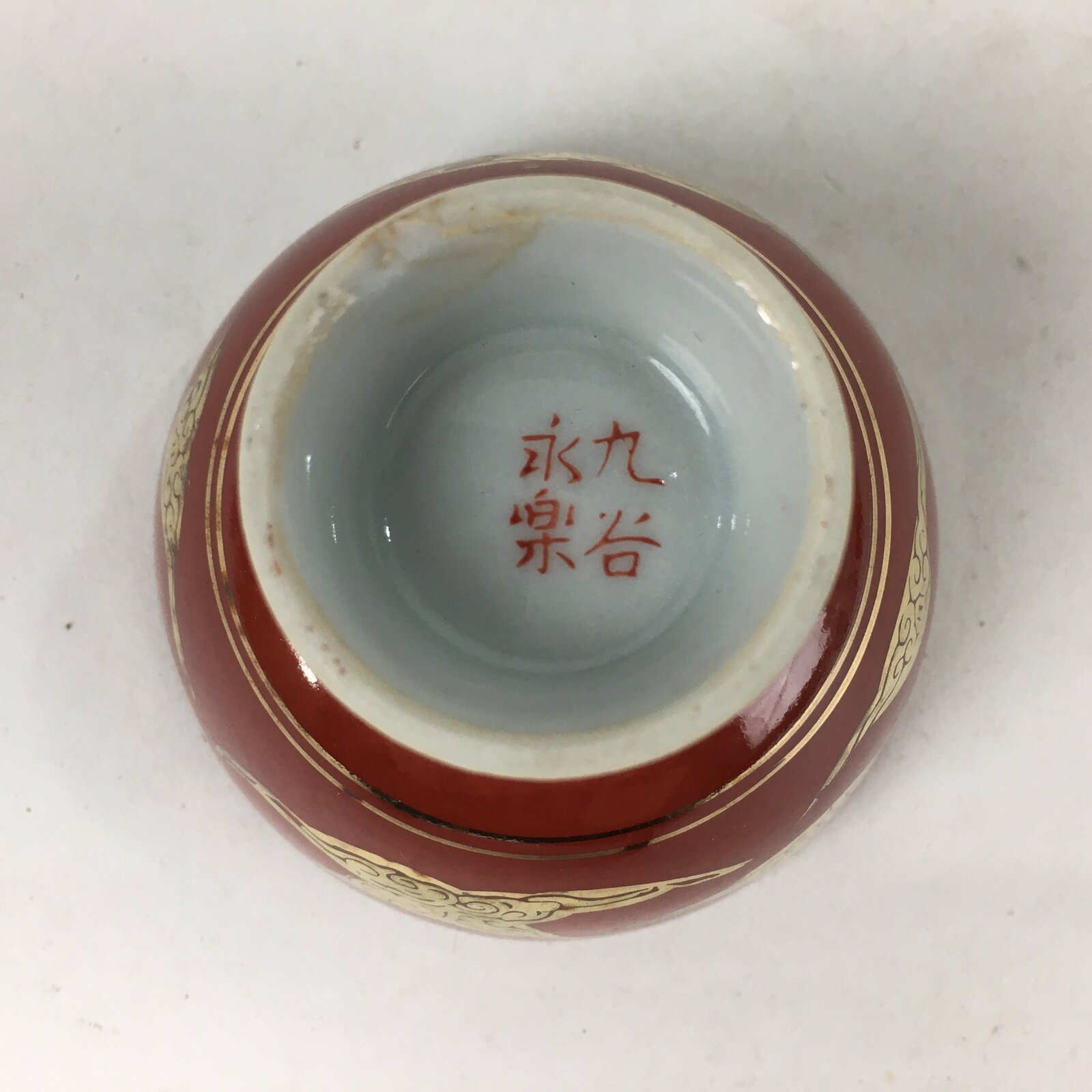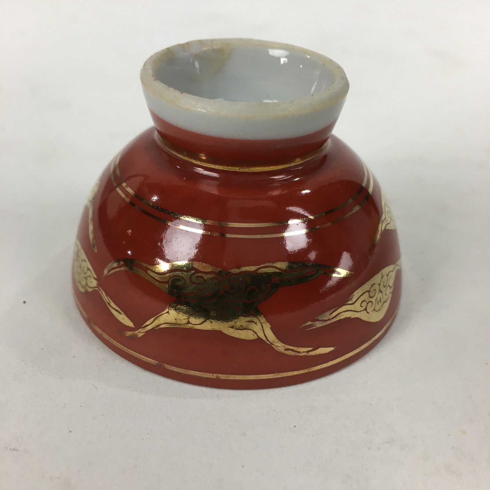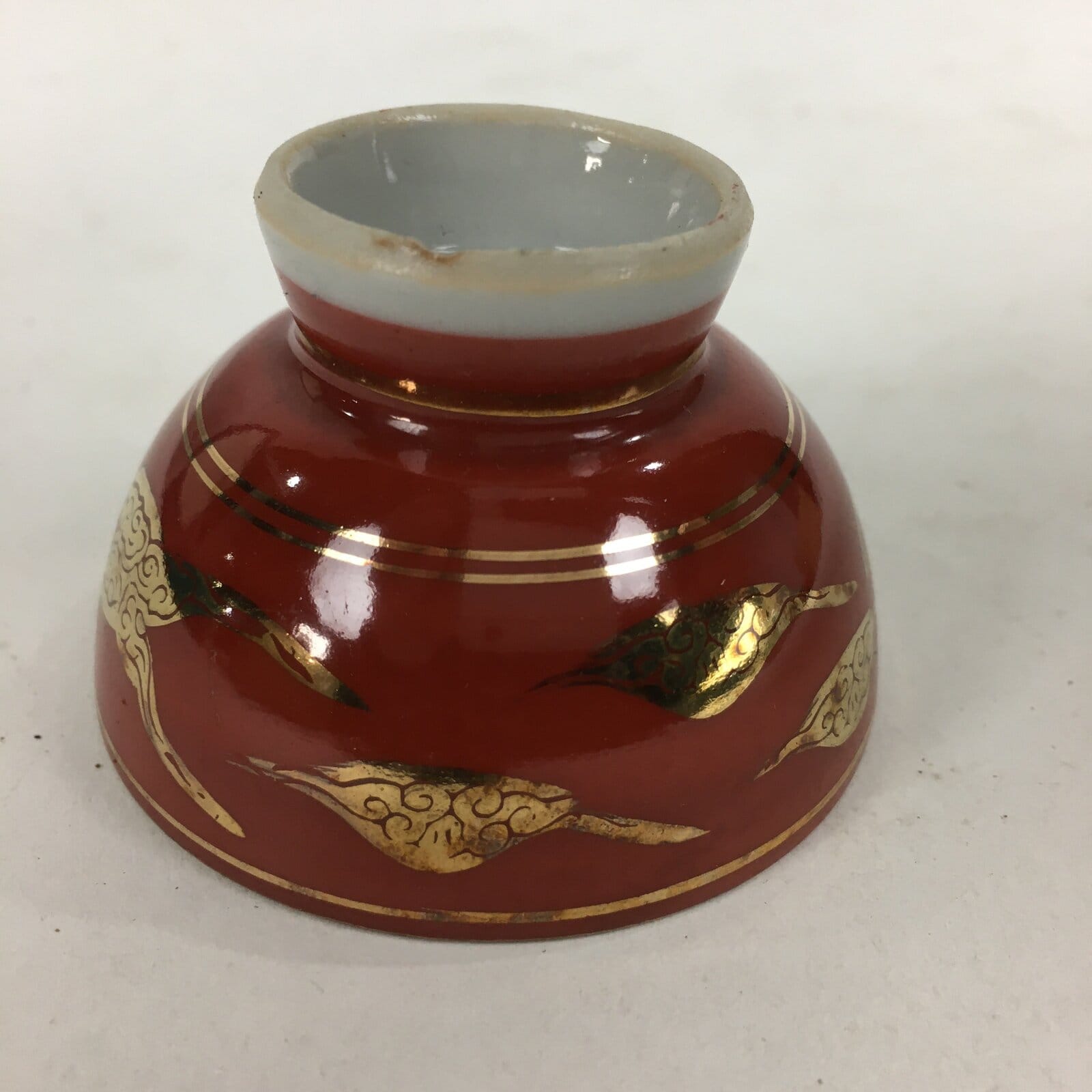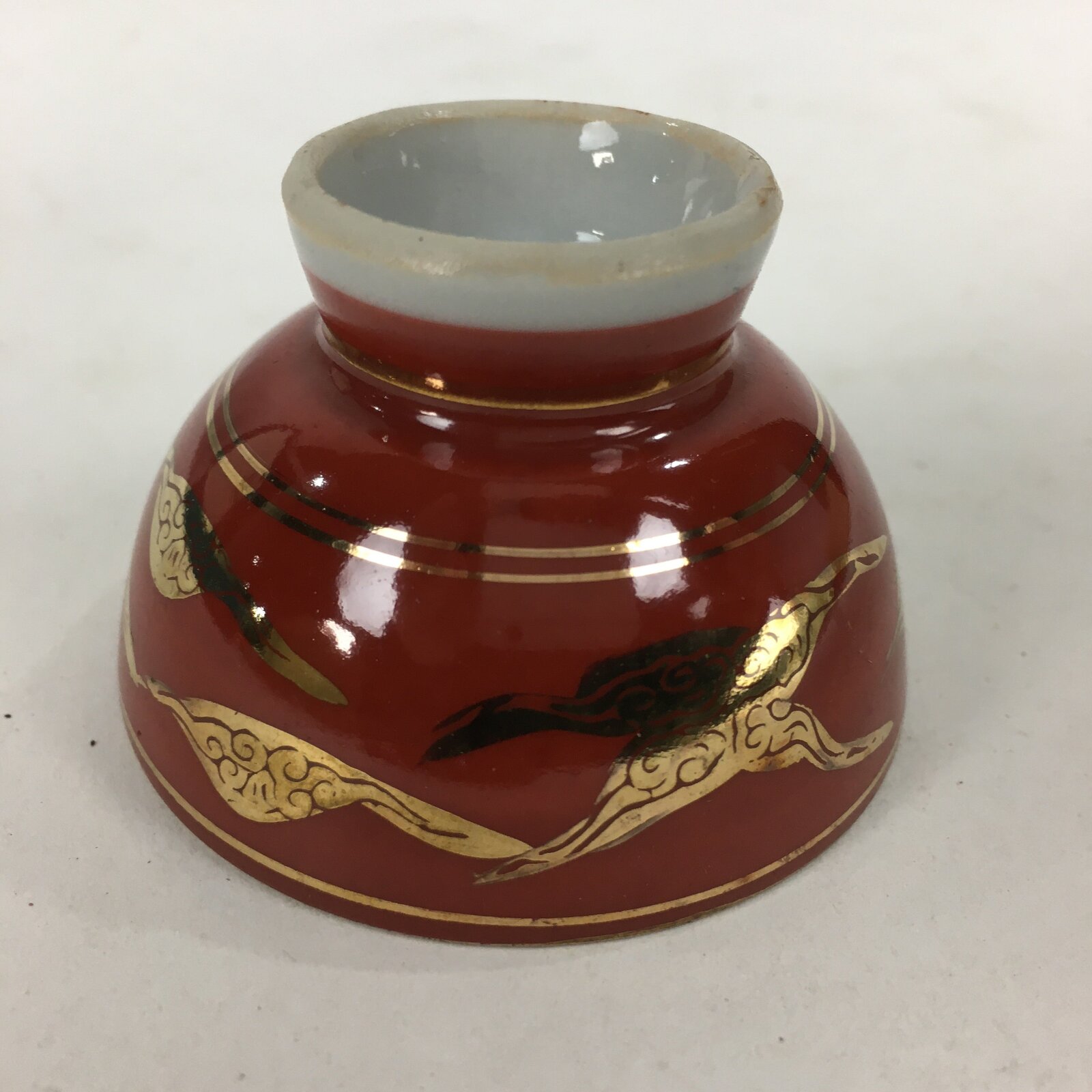 January 19, 2026Japanese Porcelain Kutani Ware Sake Cup Vtg Guinomi Ochoko Red Gold Crane GU999