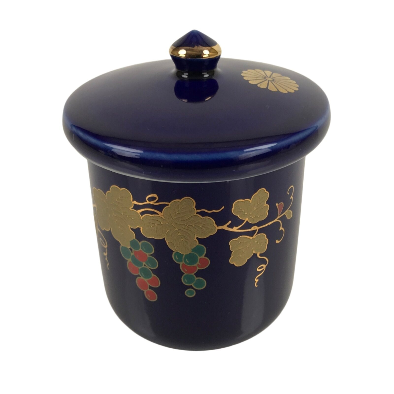 January 24, 2026Japanese Porcelain Lidded Teacup Vtg Grapes Leaves Blue White Gold Sencha TC514