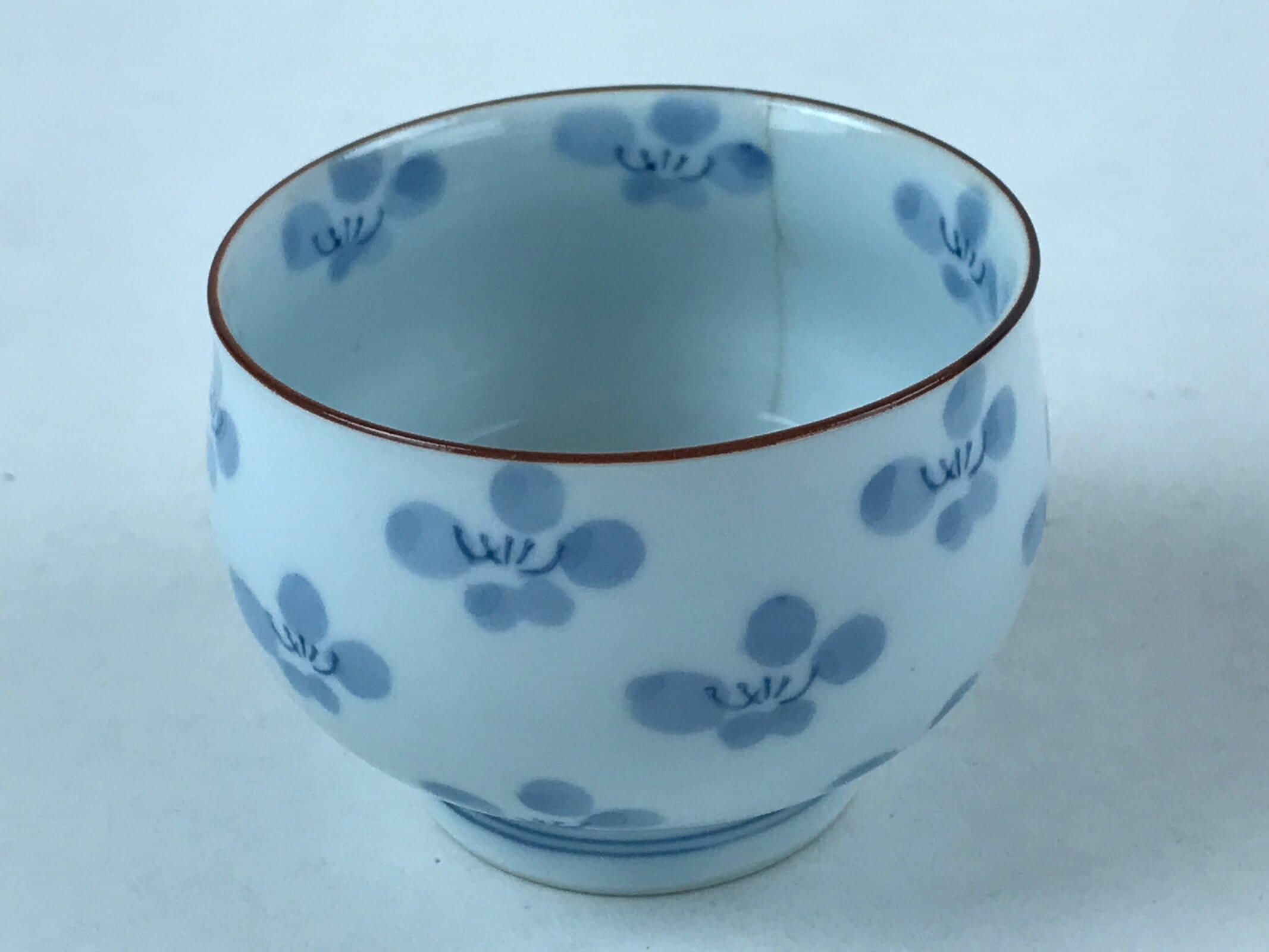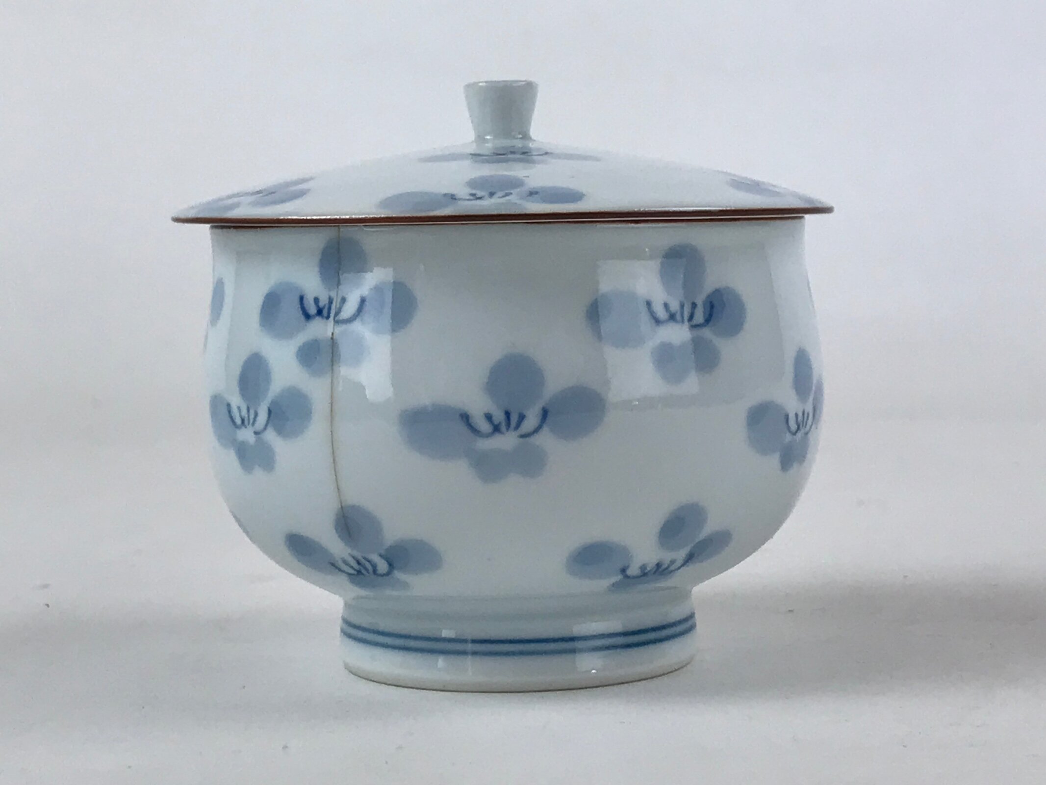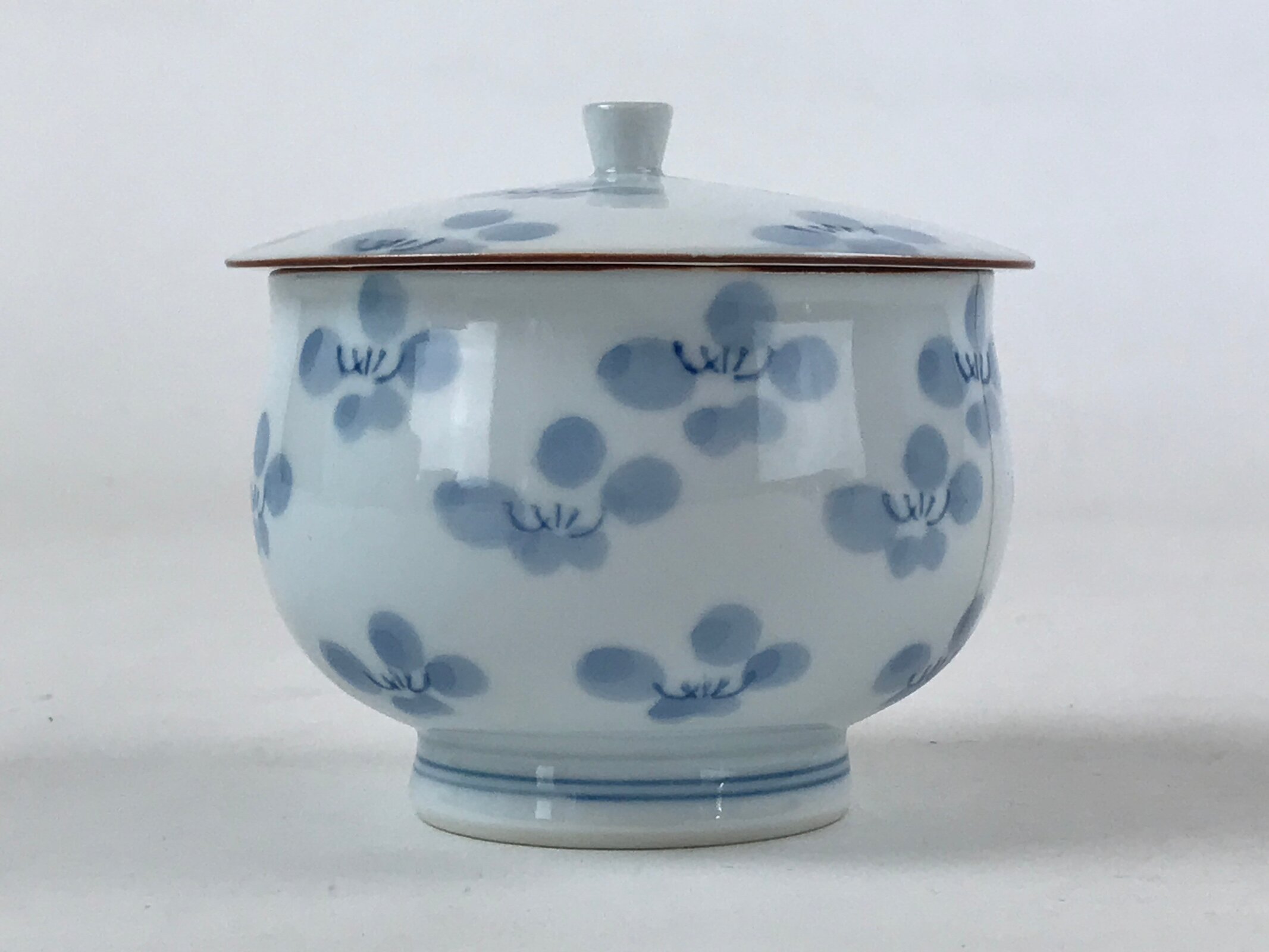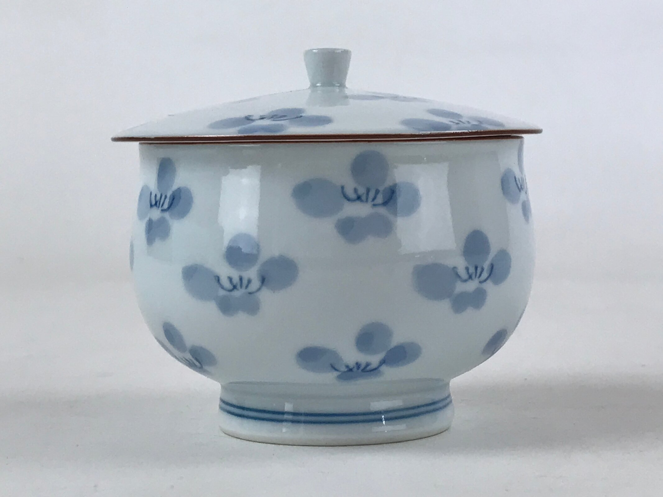 Japanese Porcelain Teacup Chawan Vtg Lidded Flowers Blue Pottery Yunomi TC387