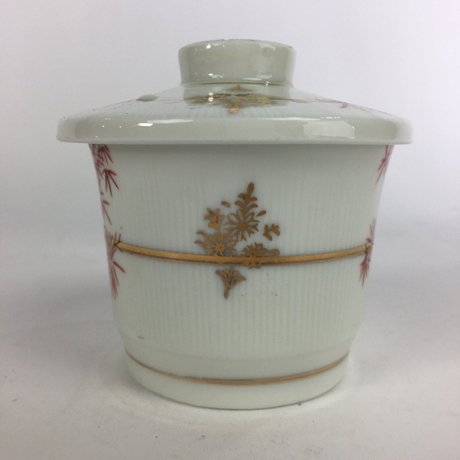 Japanese Porcelain Lidded Soup Bowl Cup Vtg Chawanmushi Red Bamboo PP528