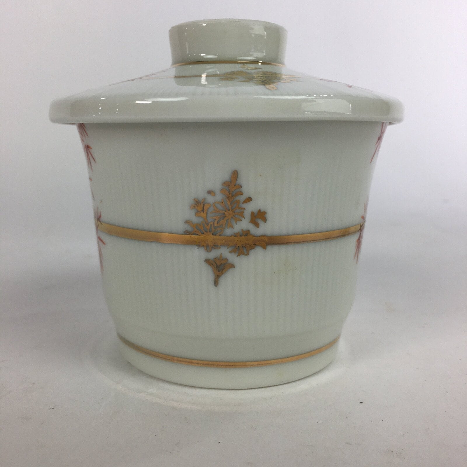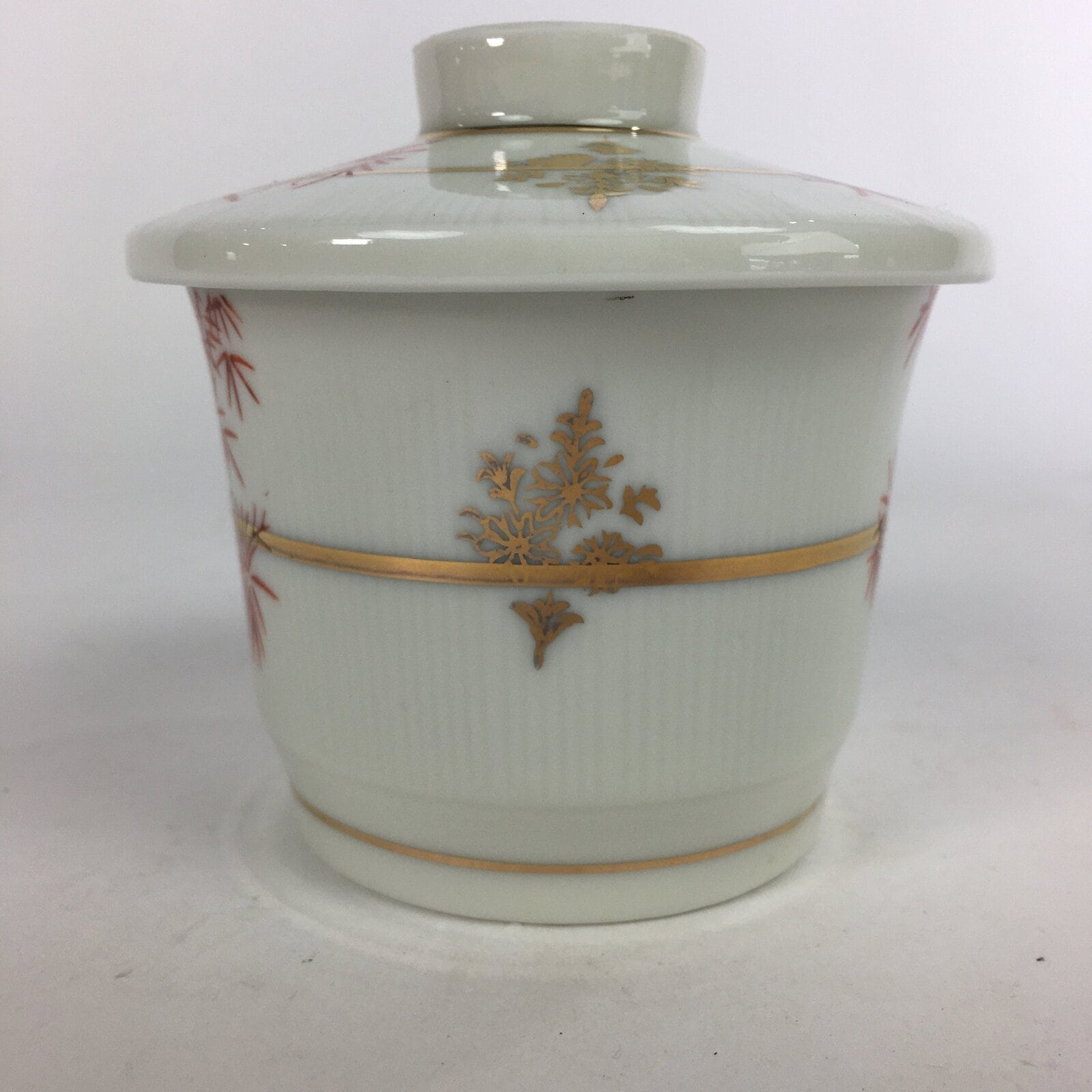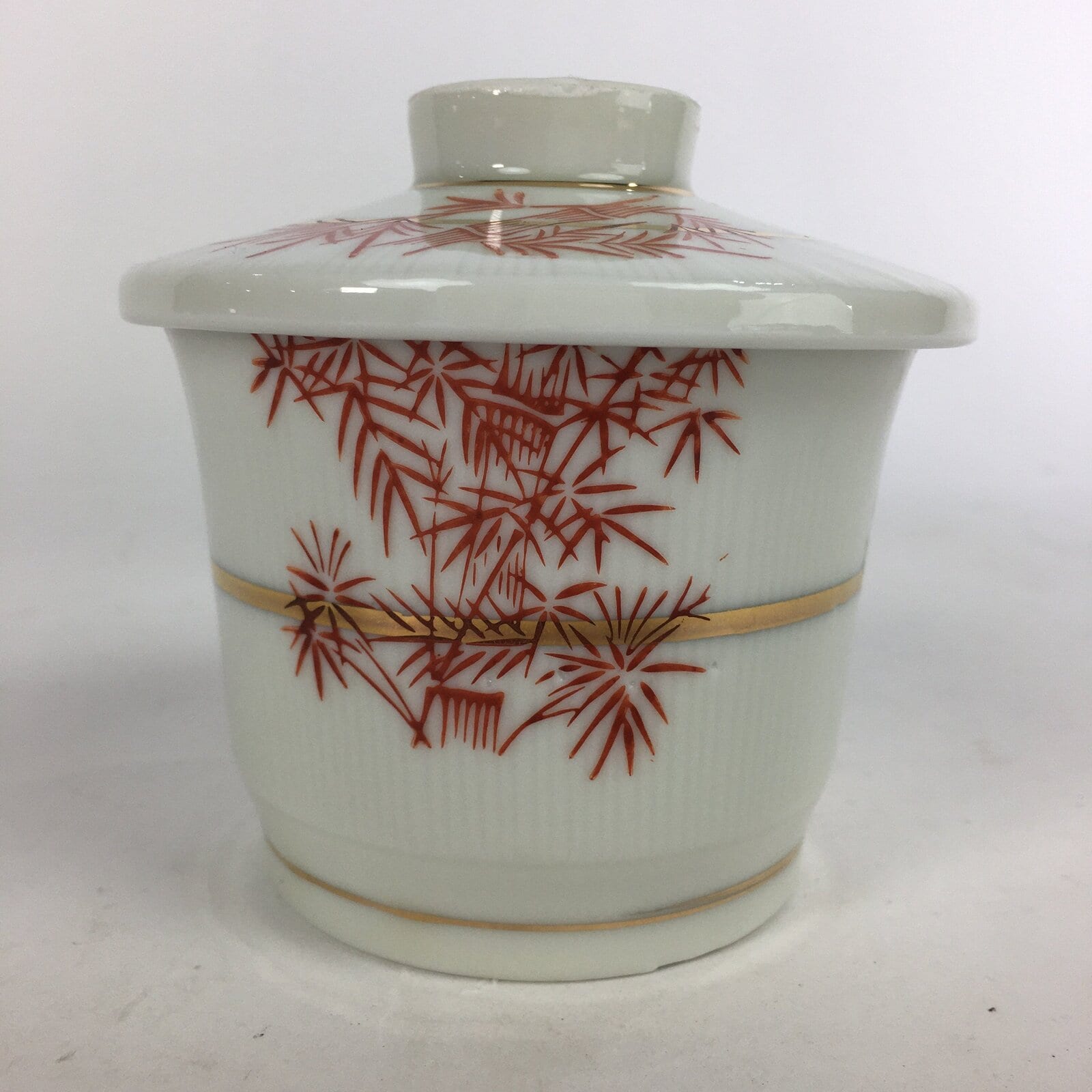 Japanese Porcelain Lidded Soup Bowl Cup Vtg Chawanmushi Red Bamboo PP532