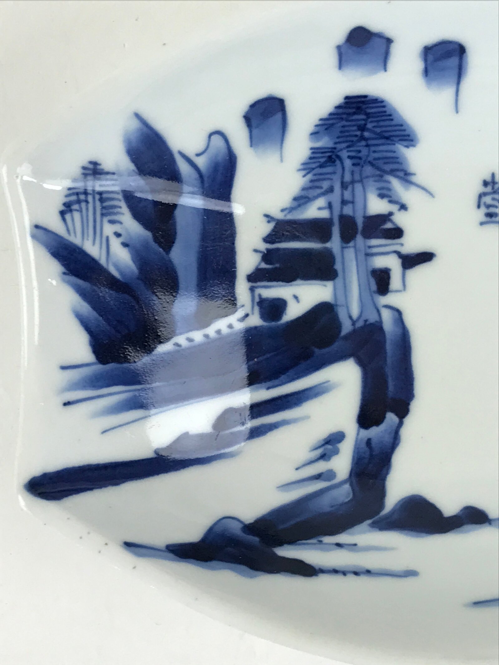 Japanese Porcelain Plate Boat Shape White Sometsuke Blue Sansui Kozara PY202