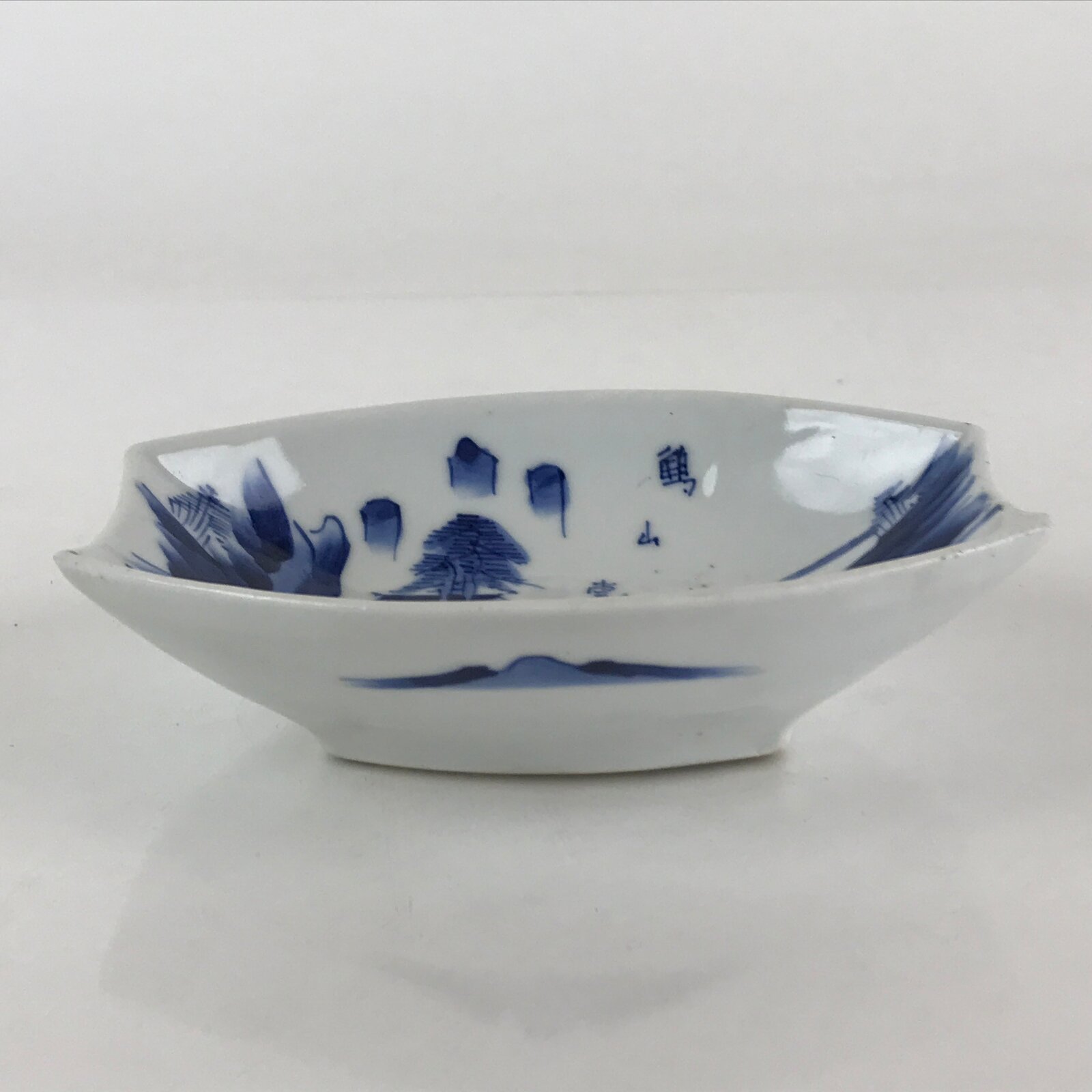 Japanese Porcelain Plate Boat Shape White Sometsuke Blue Sansui Kozara PY200