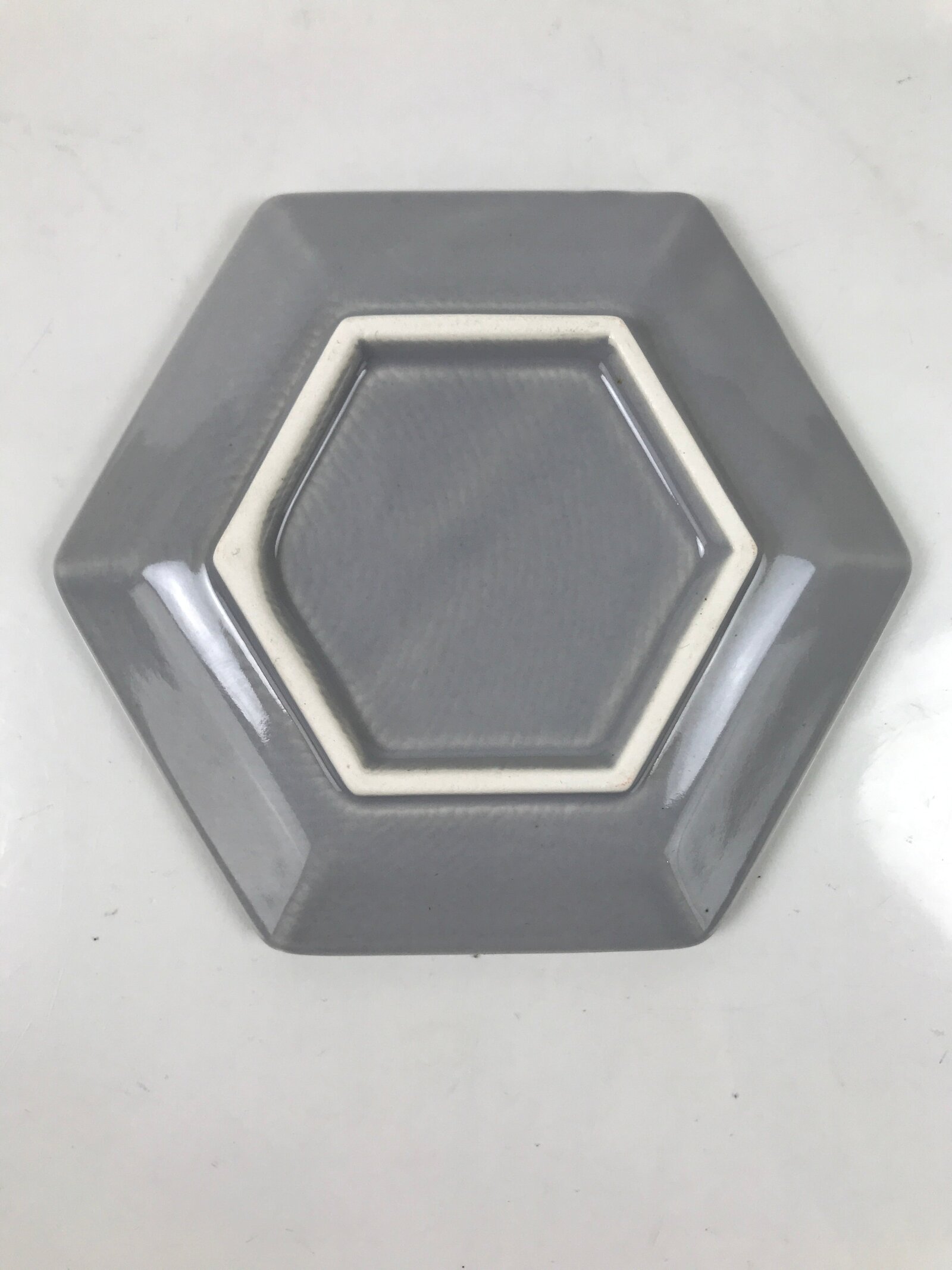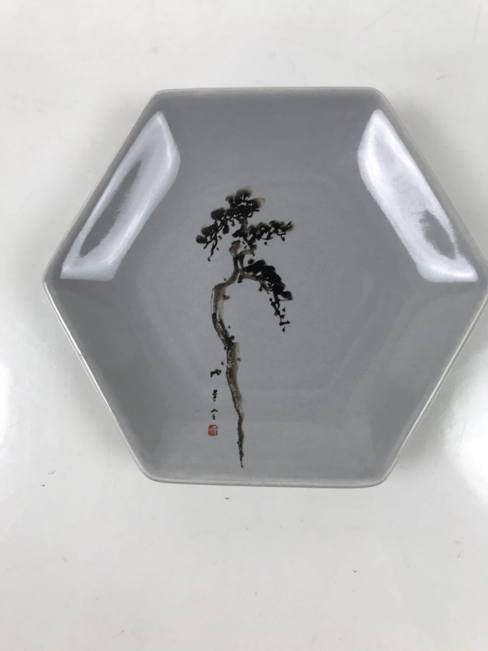 Japanese Porcelain Small Serving Plate Meimeizara Hexagon Pine Tree Gray Y219