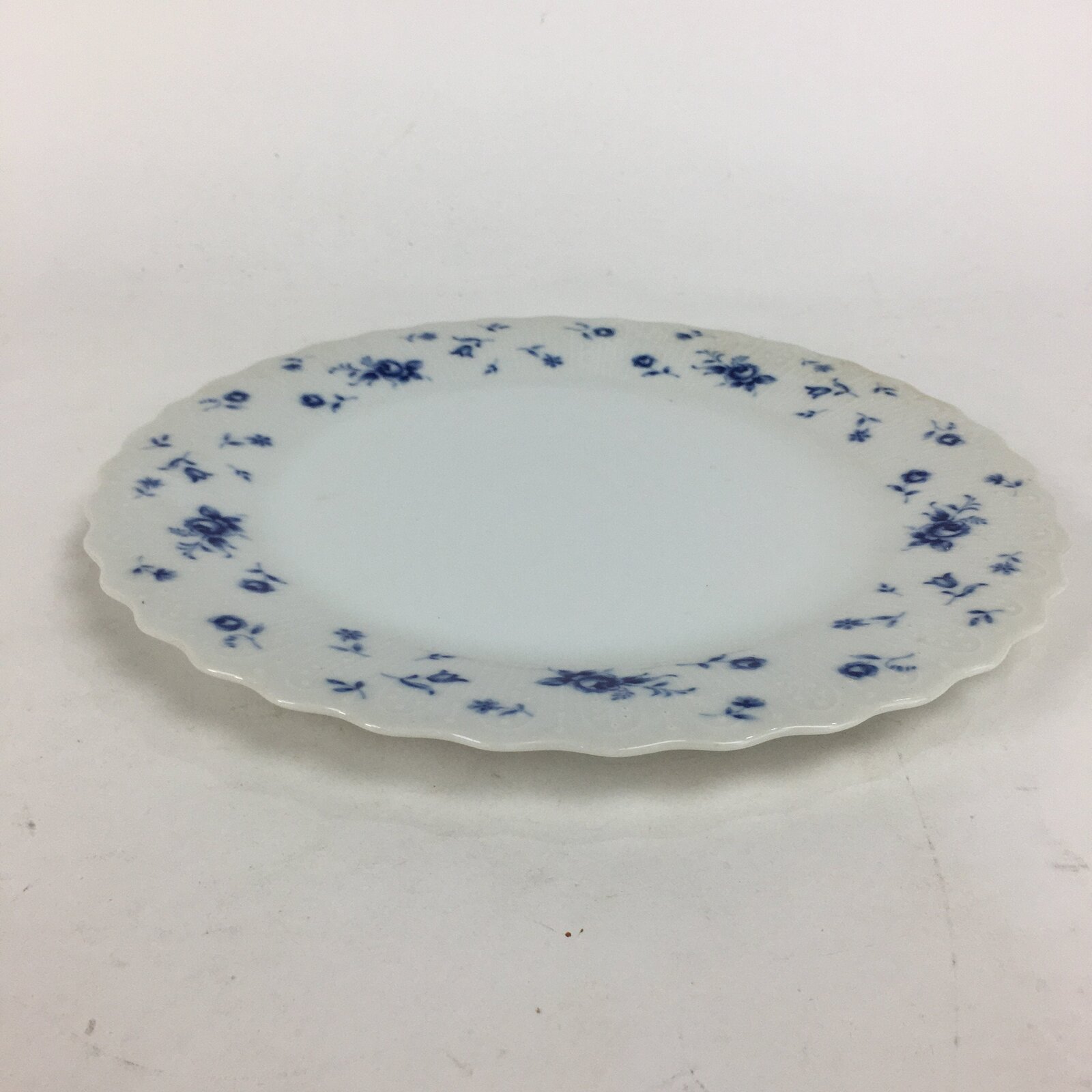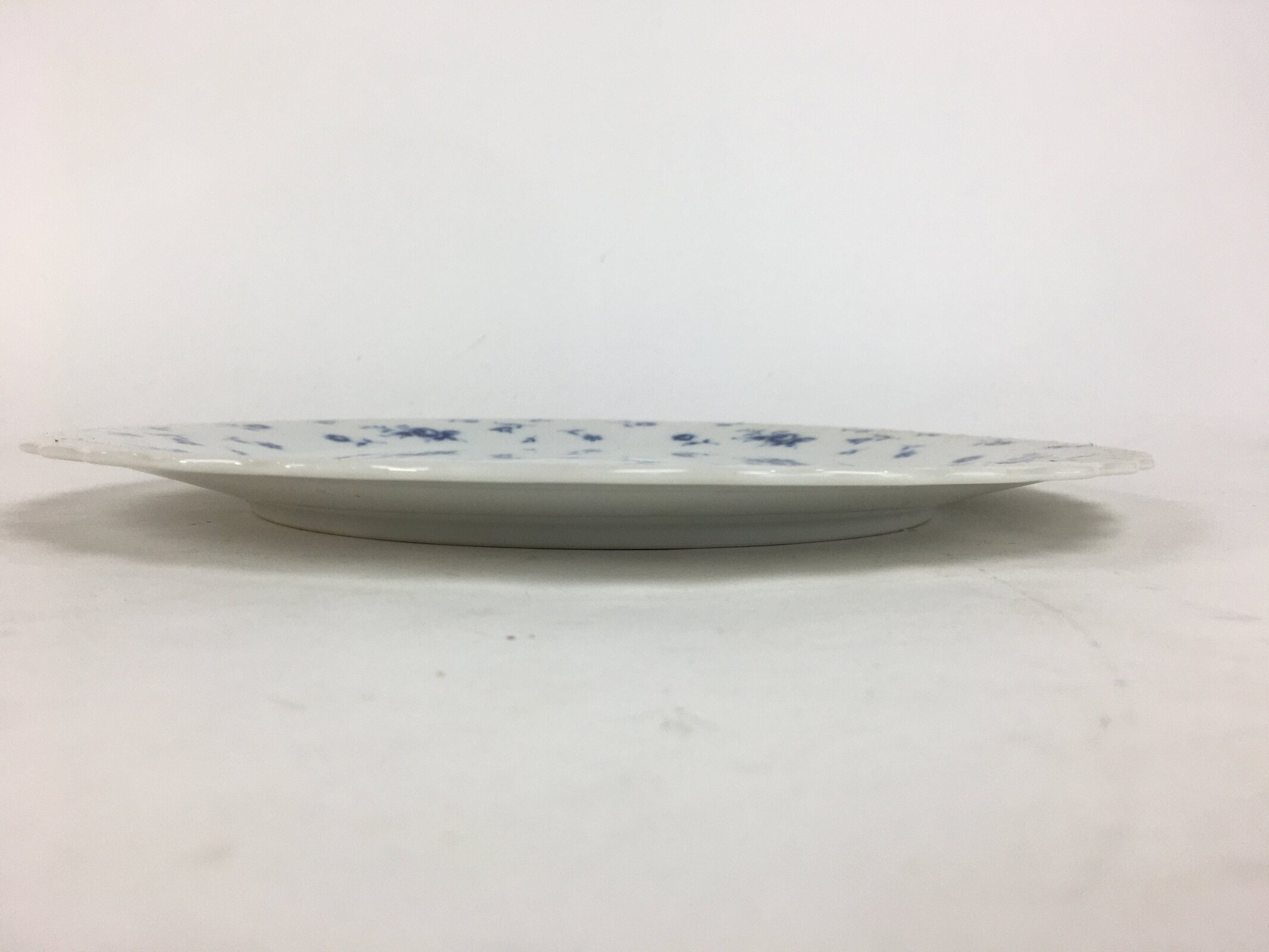 - Design: Blue charm flower pattern, beveled rim