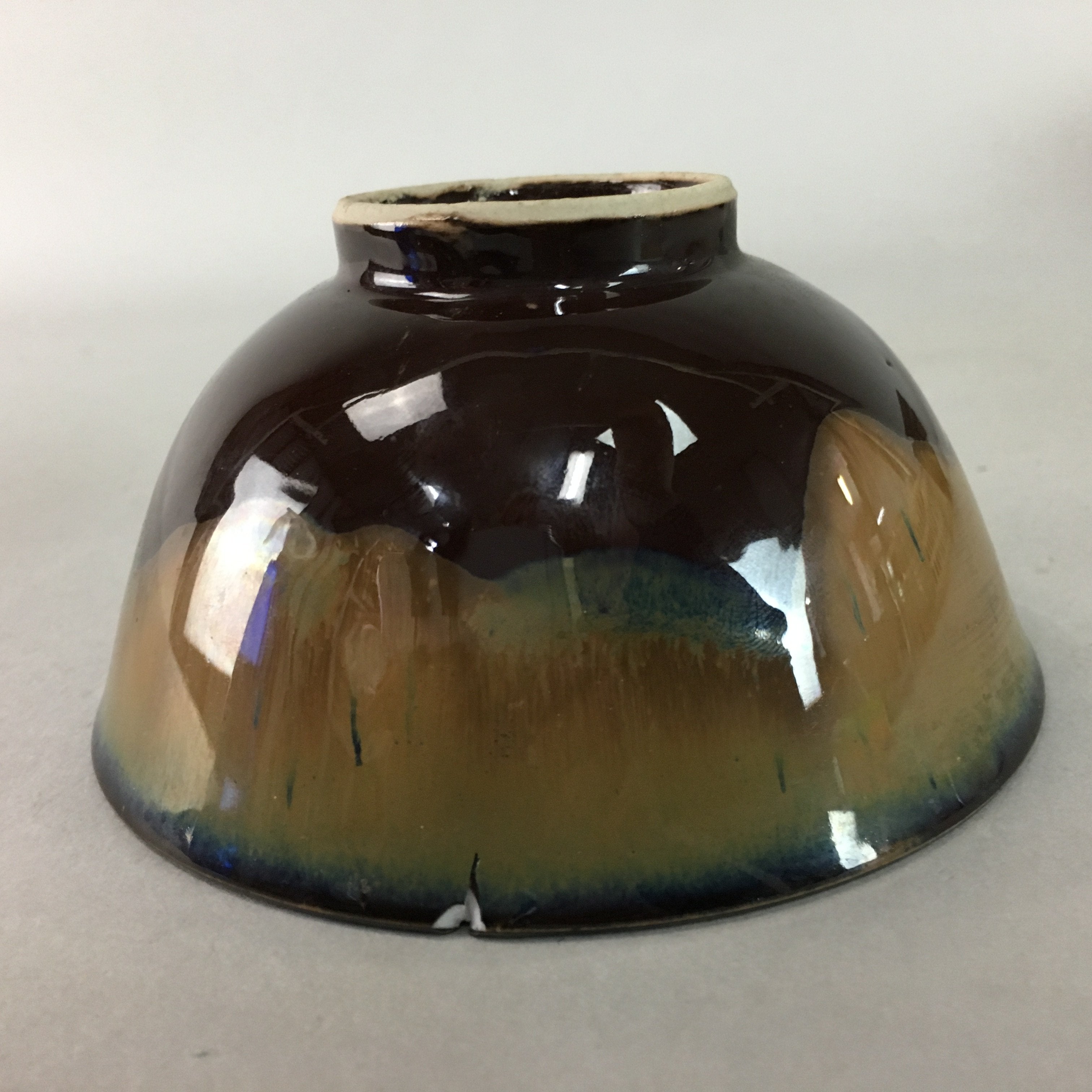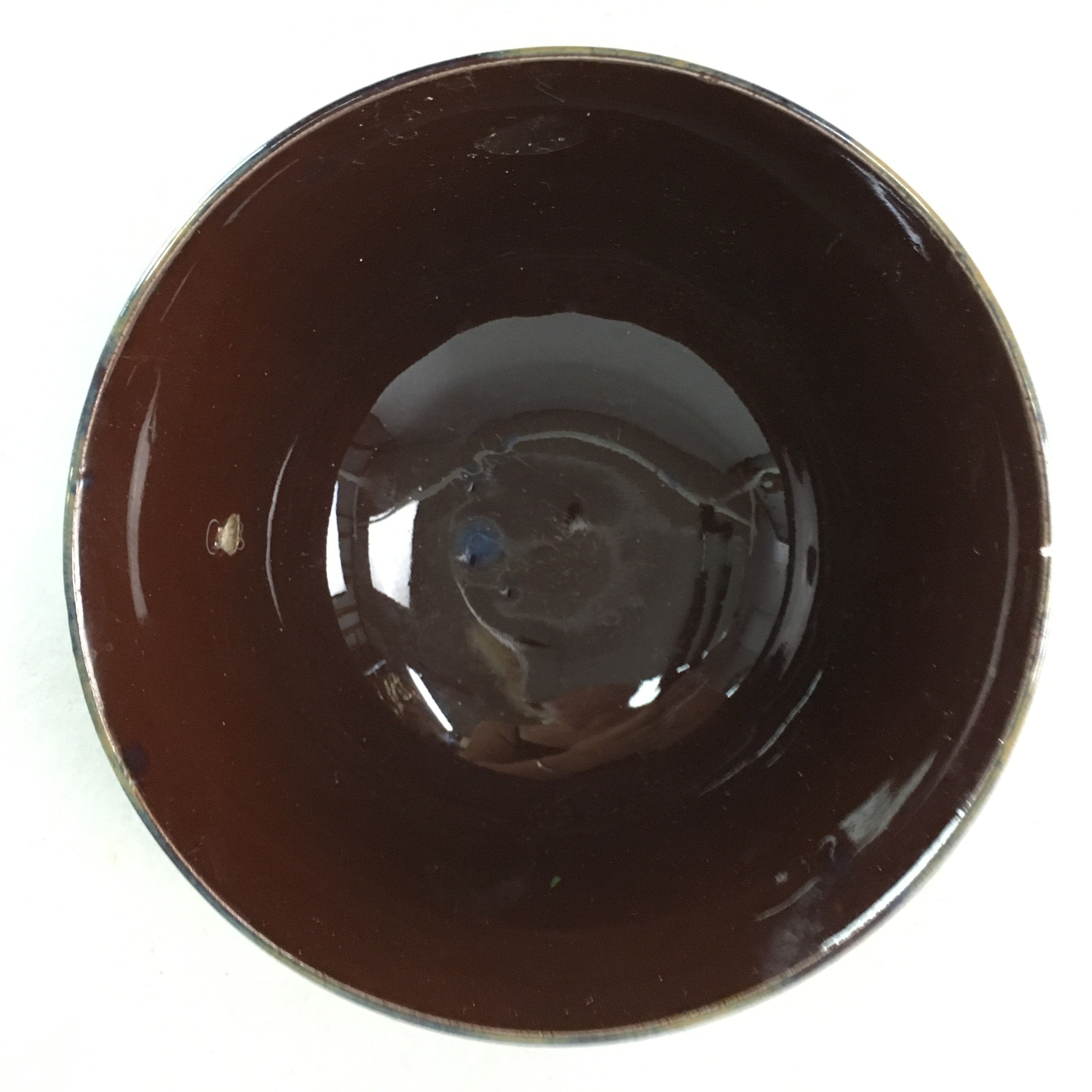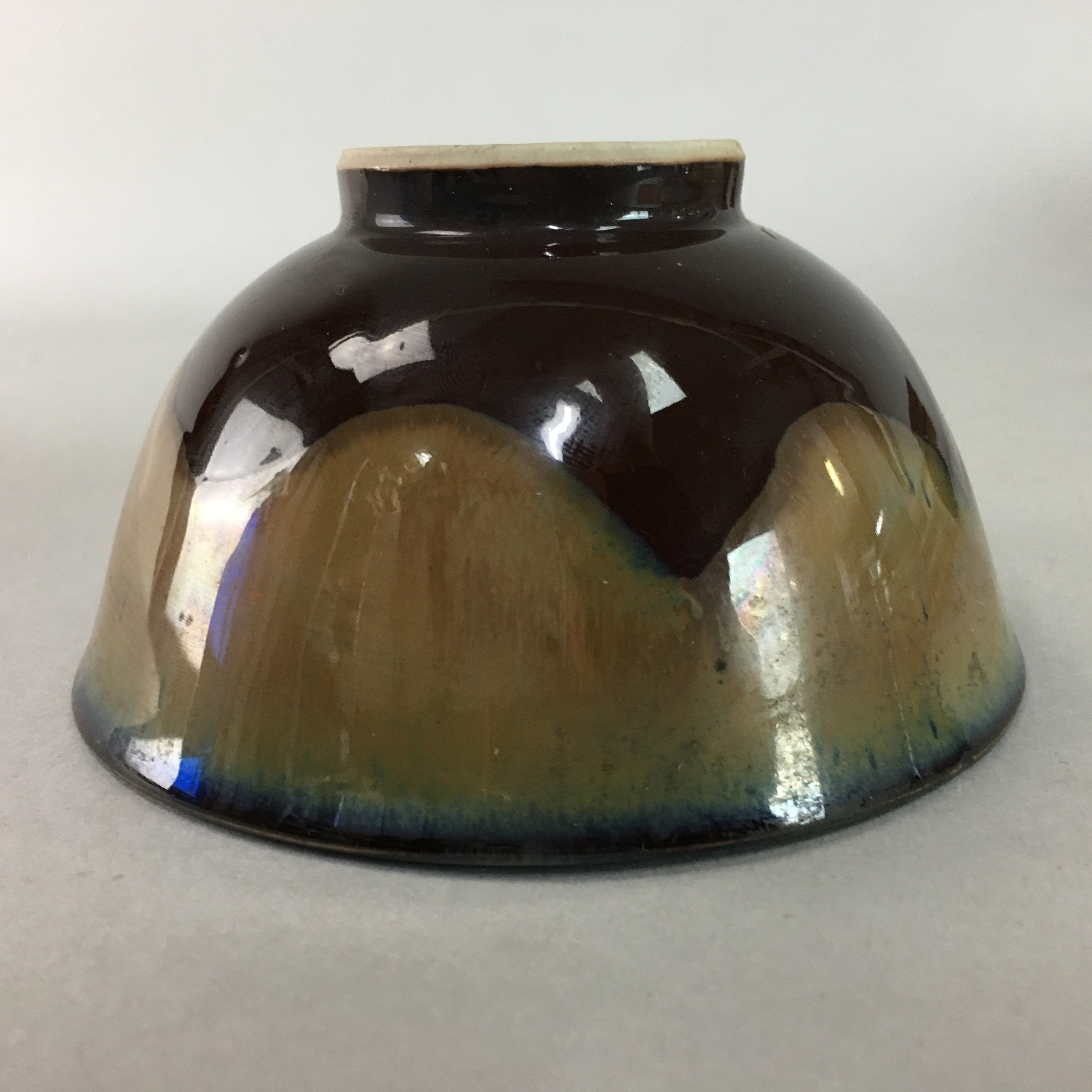 Japanese Porcelain Rice Bowl Vtg Brown Chawan Shiny Smooth Flowing PT773