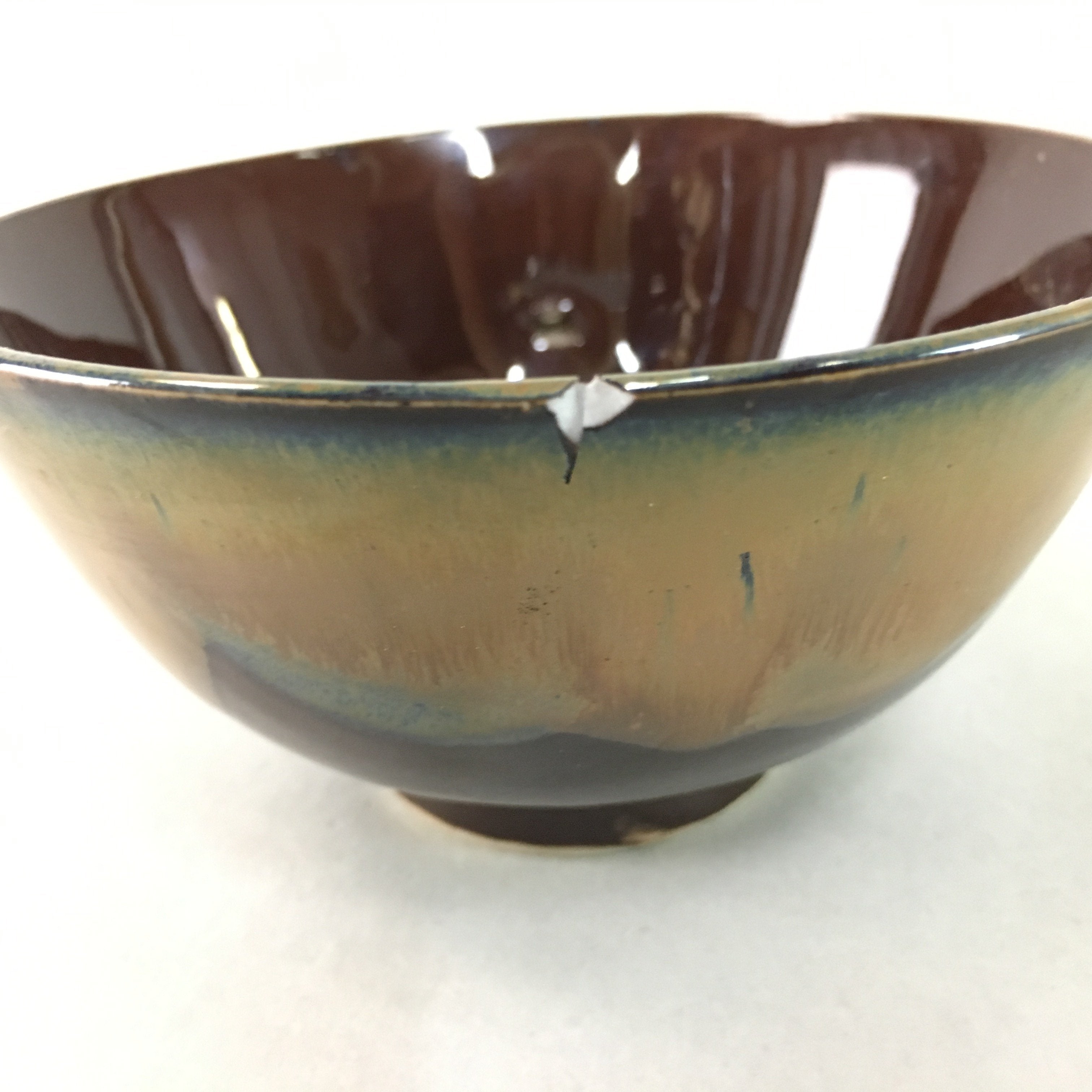 - Fair condition considering its age. Slight scratches inside. Chip on the rim. Imperfection on the inisde glaze. Wear and tear due to age. Please see the photos carefully.