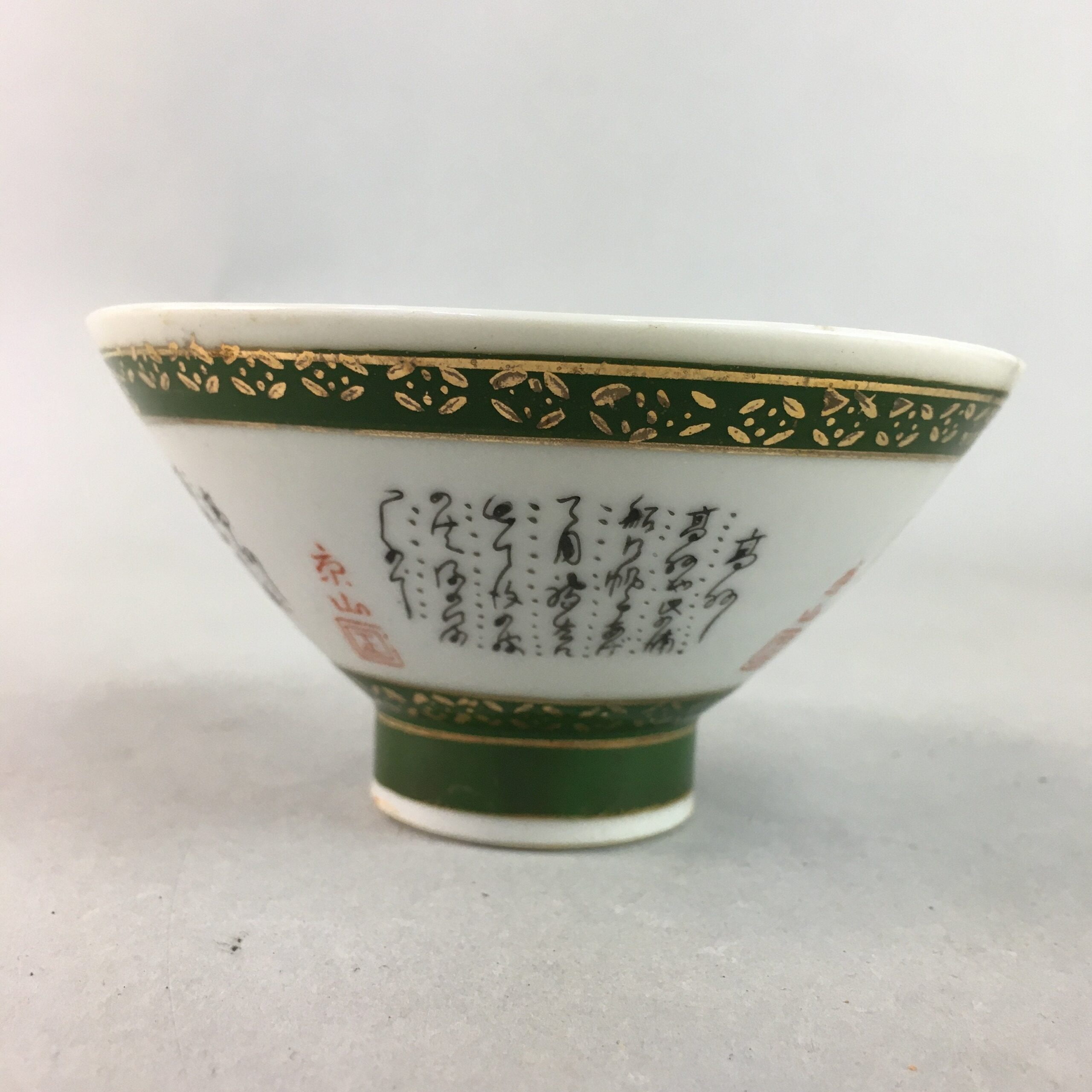 January 17, 2026Japanese Porcelain Rice Bowl Vtg Kanji Green Gold Chawan PP175