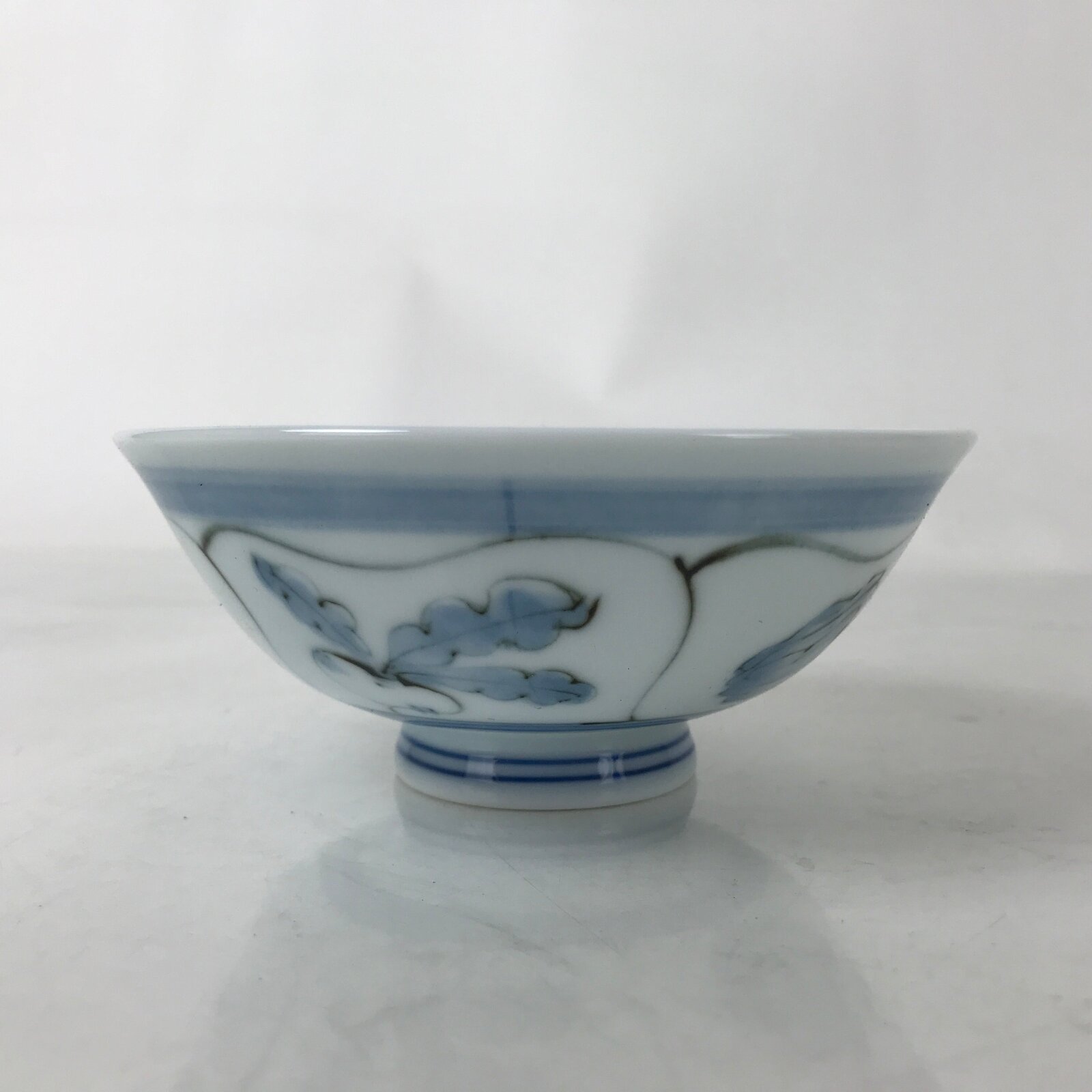 Japanese Porcelain Rice Bowl Owan Vtg Kobachi White Blue Leaf Peony Flower Y268