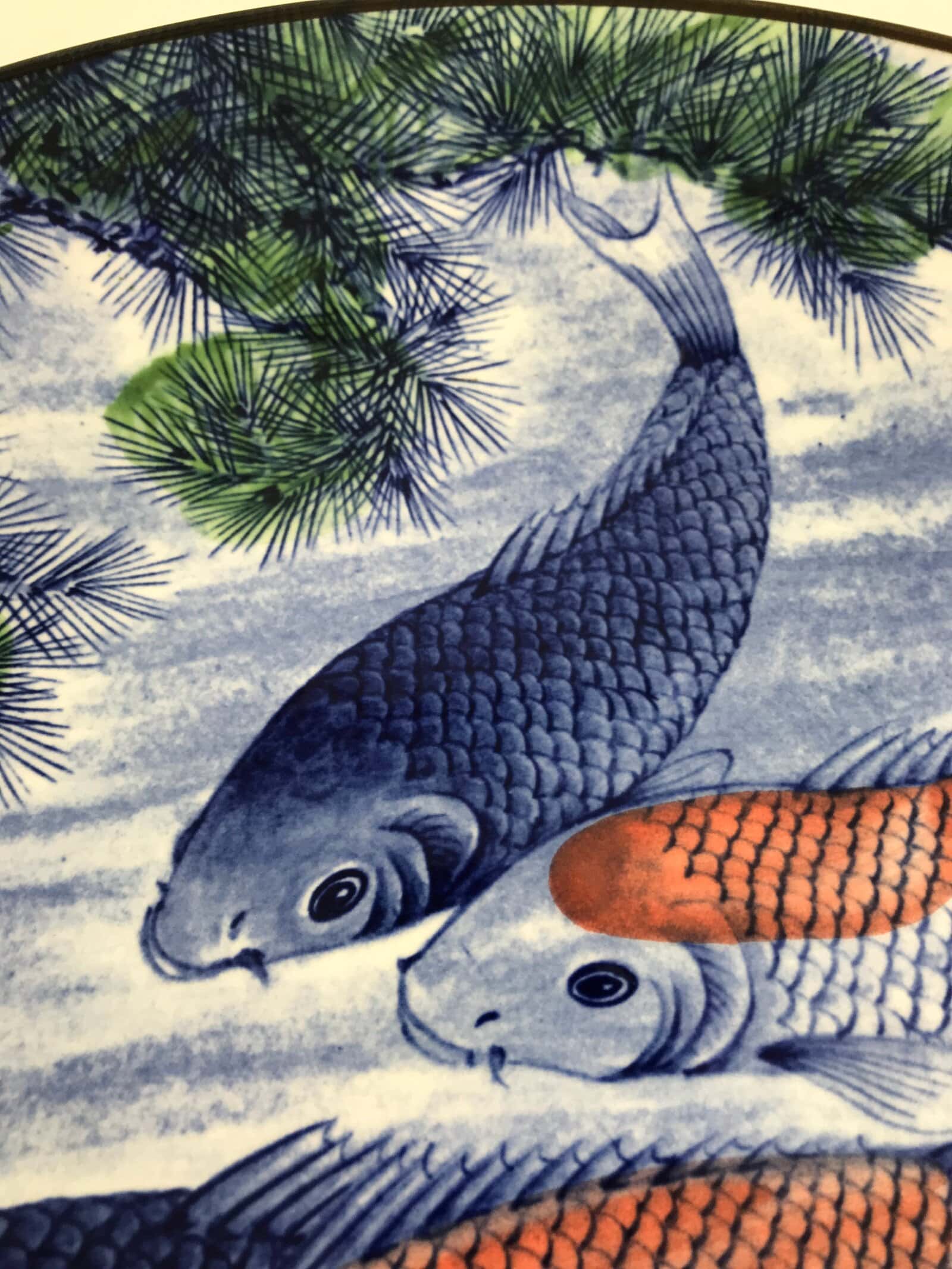 January 24, 2026Japanese Porcelain Round Large Plate Vtg Chrysanthemum Carp Koi Fish Blue PX775