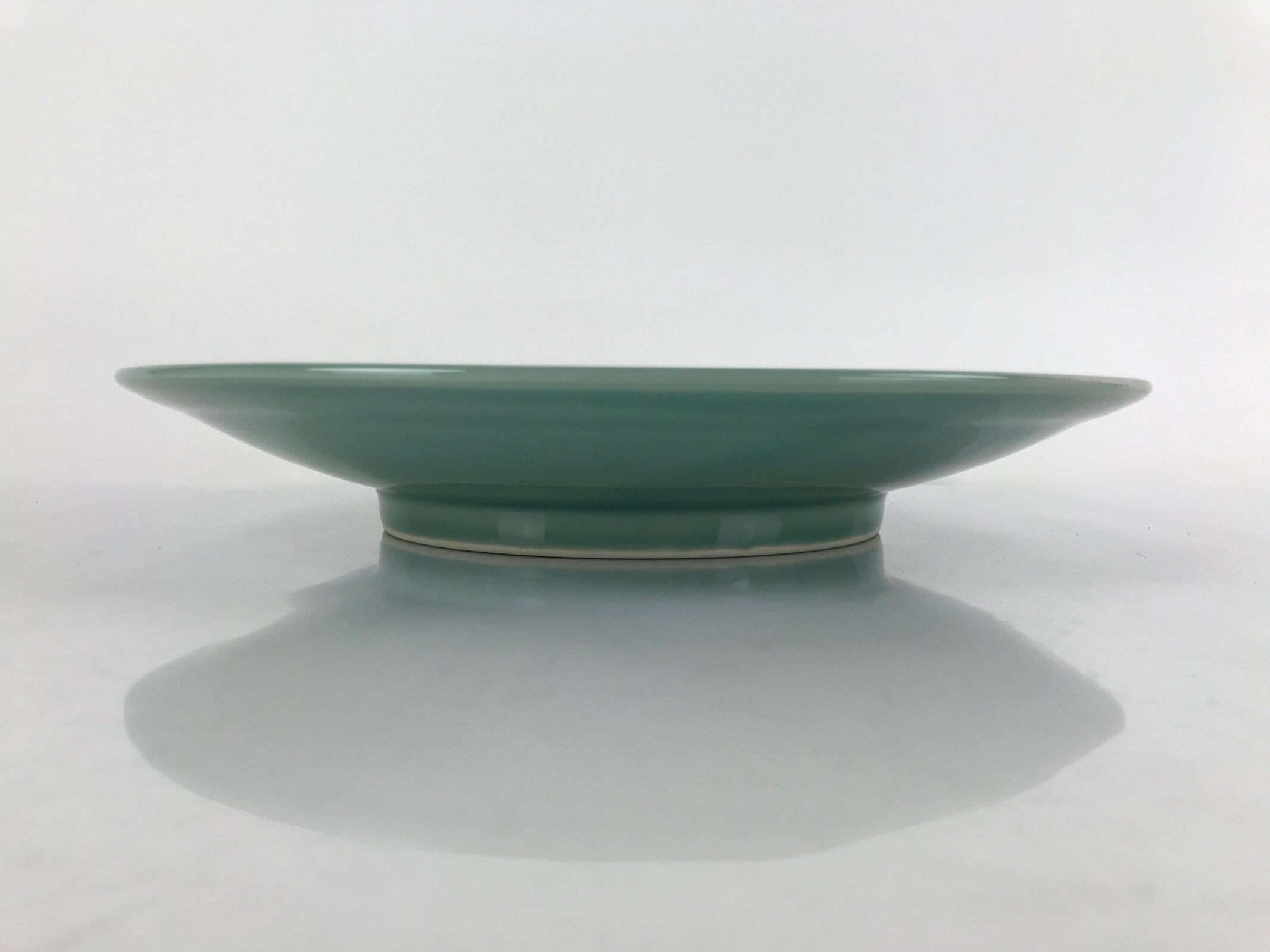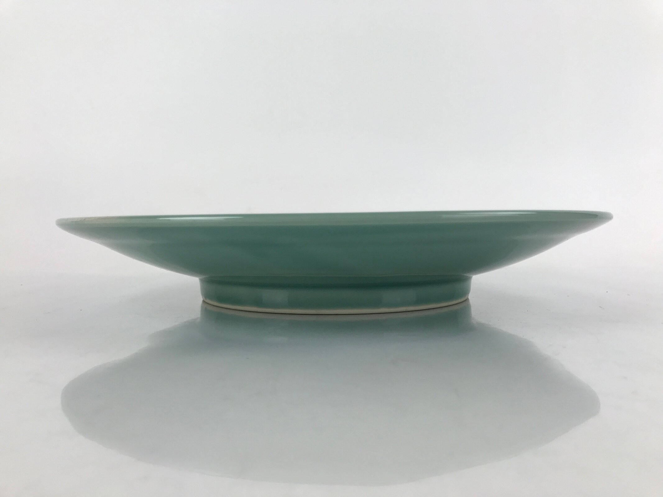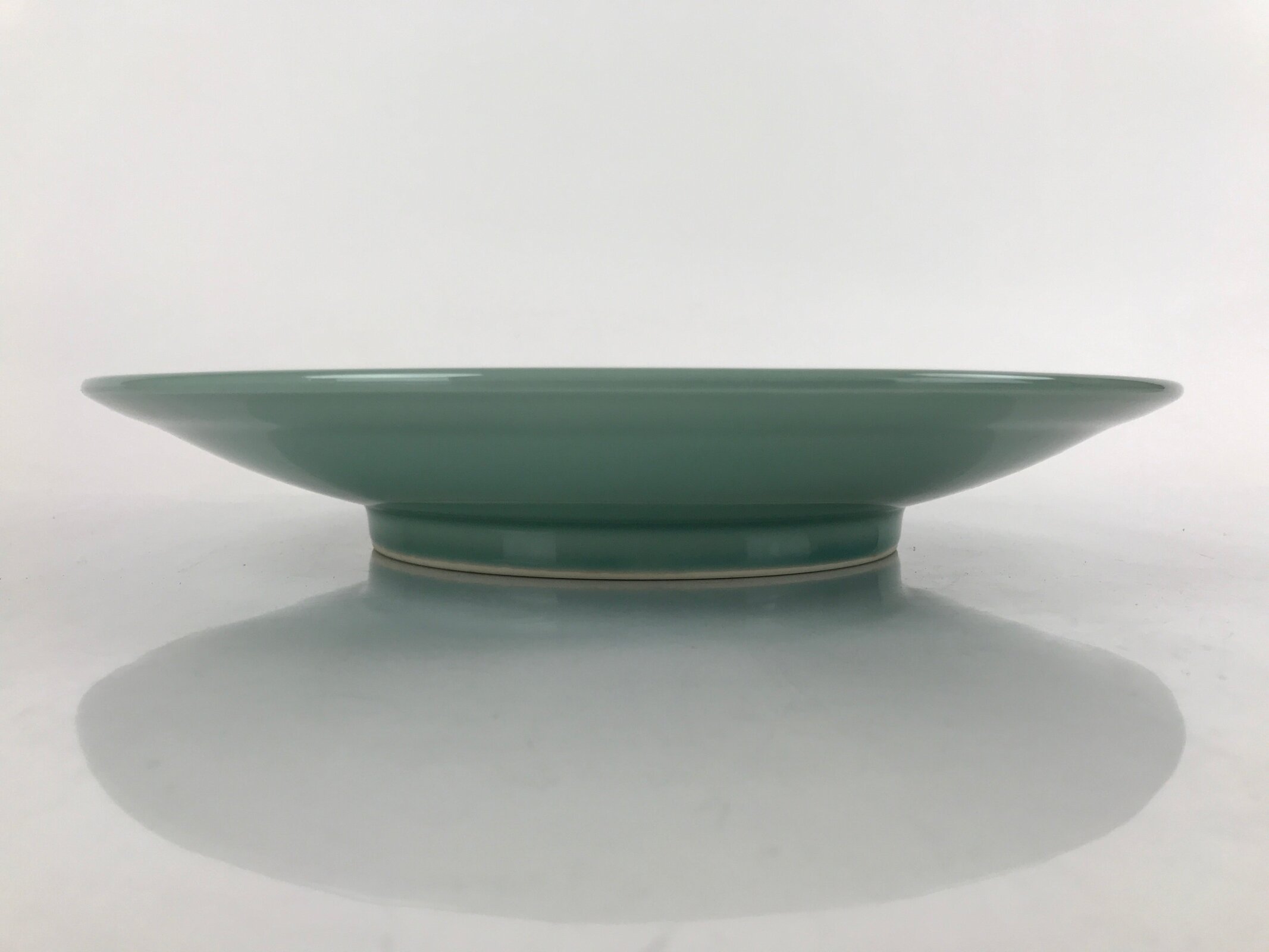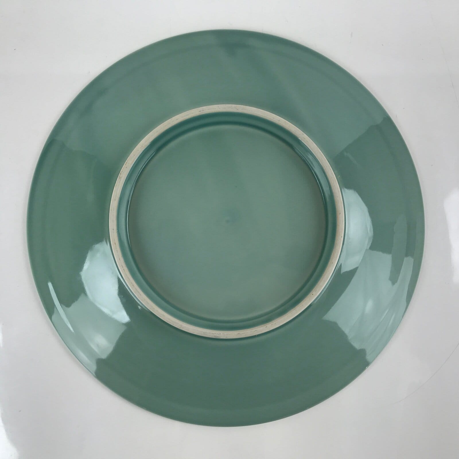 Japanese Porcelain Round Large Plate Vtg Ozara Simple Celadon Green PY754