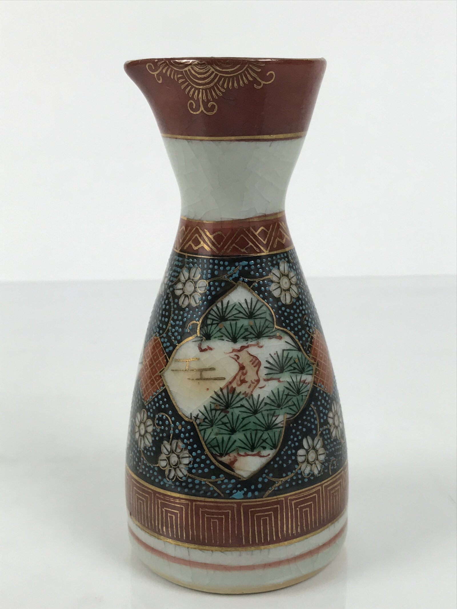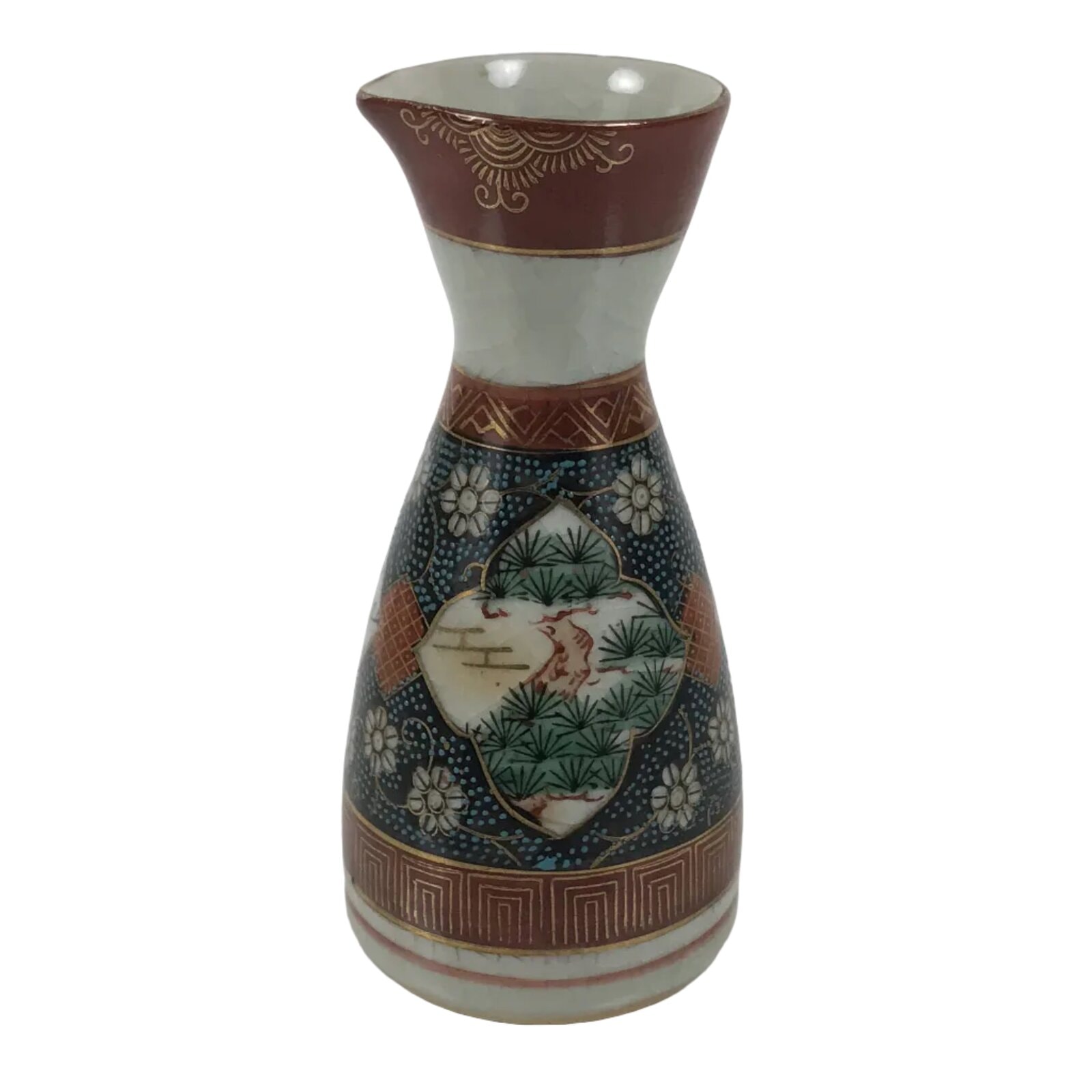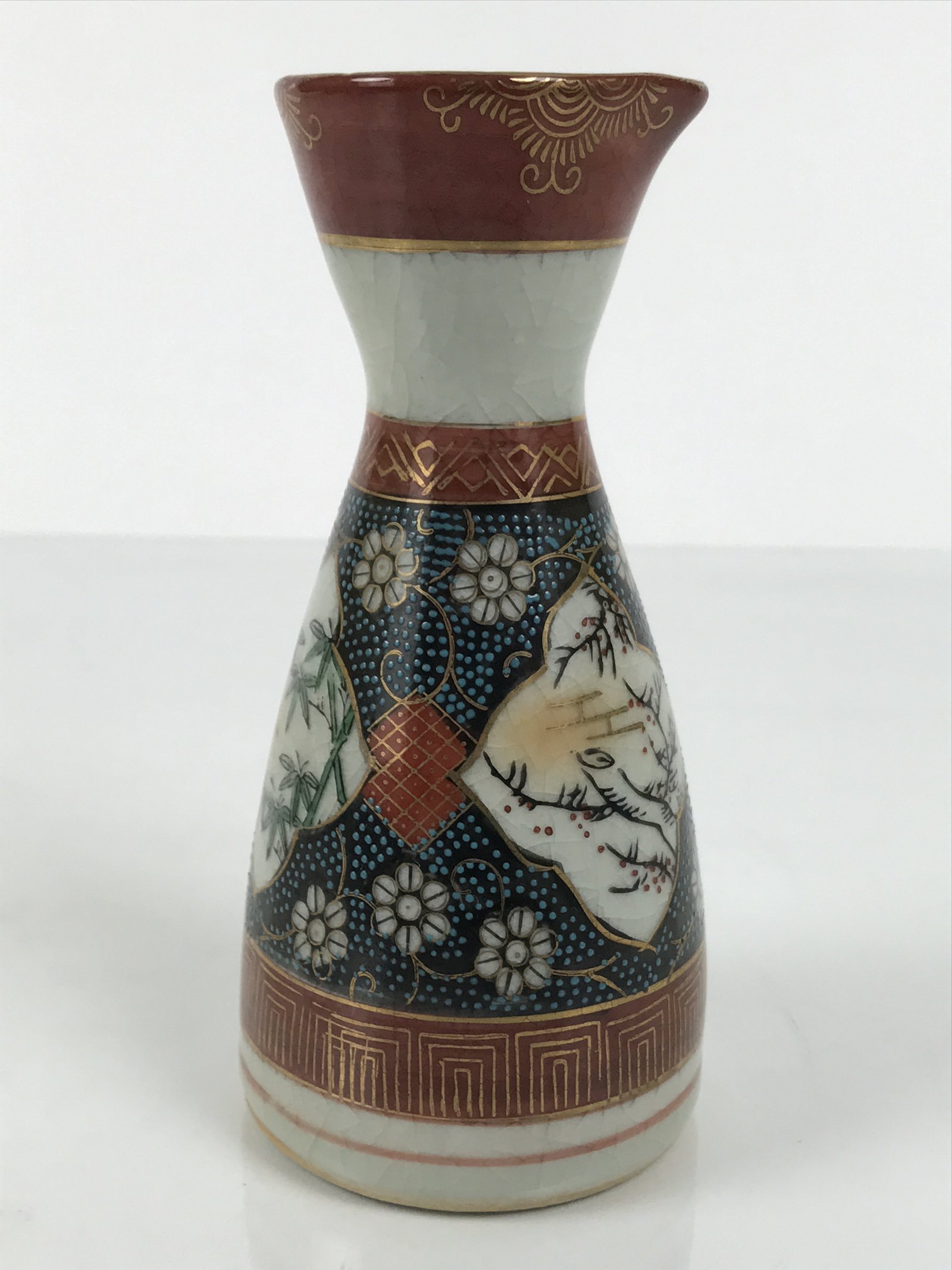 January 25, 2026Japanese Kutani Porcelain Sake Bottle Tokkuri Shochikubai Pine Plum Bamboo TS917