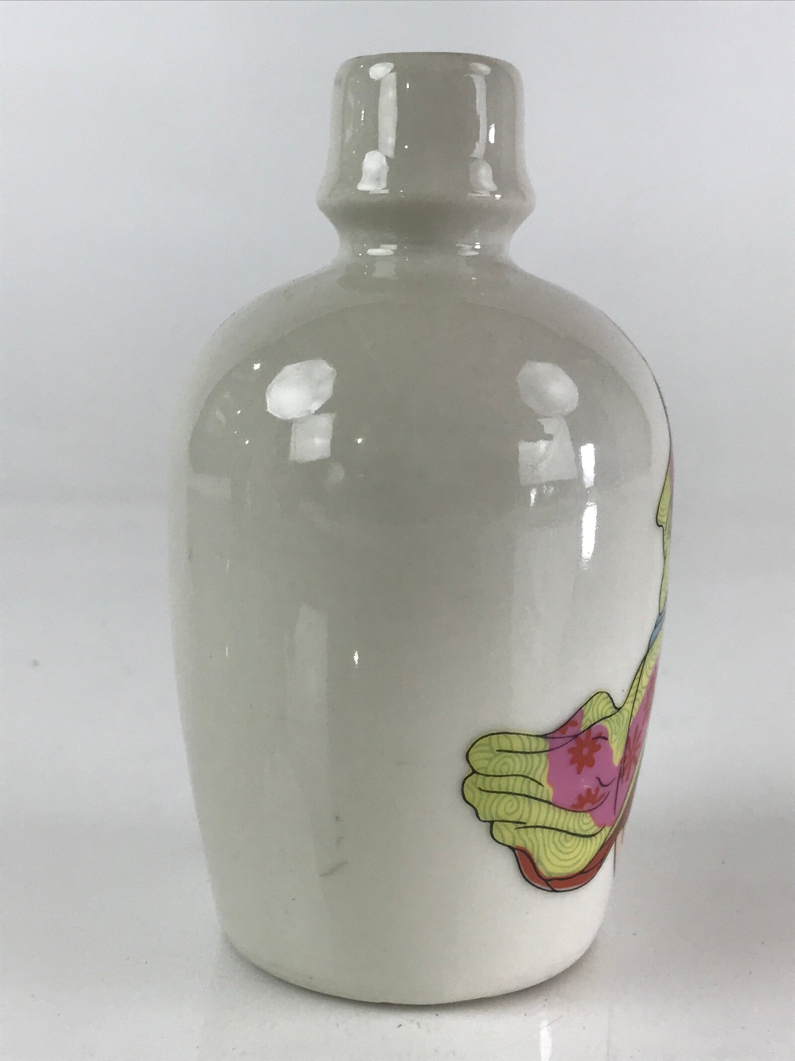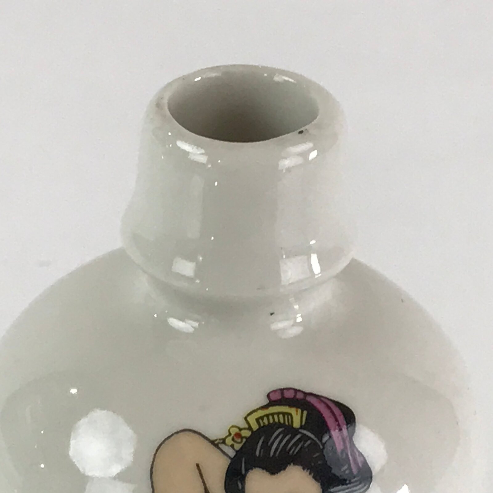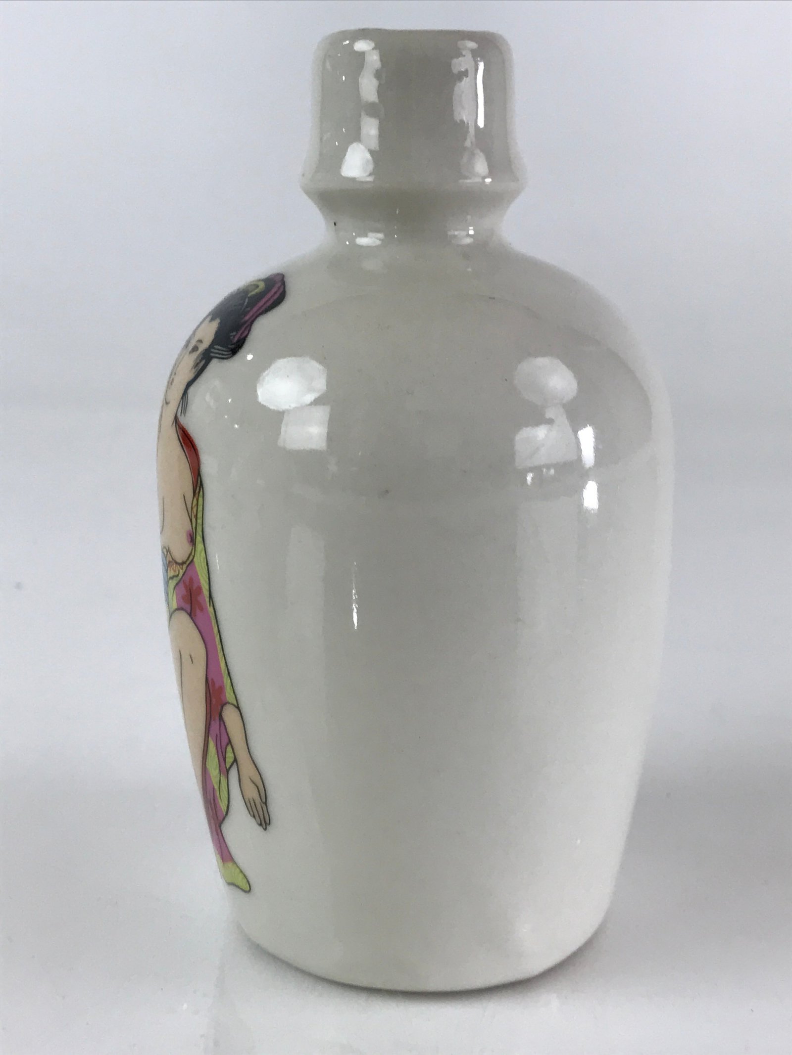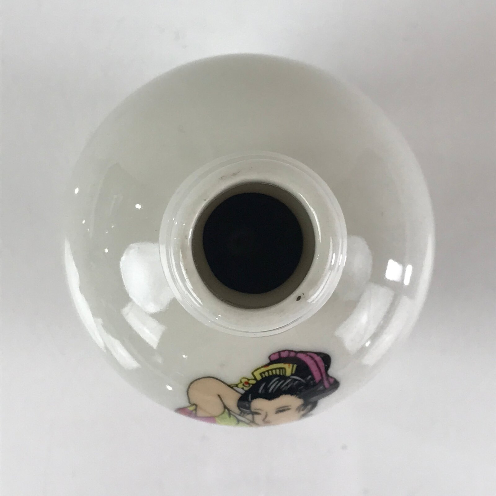 Japanese Porcelain Geisha Sake Bottle Vtg Pottery Ukiyo-e Tokkuri White TS467